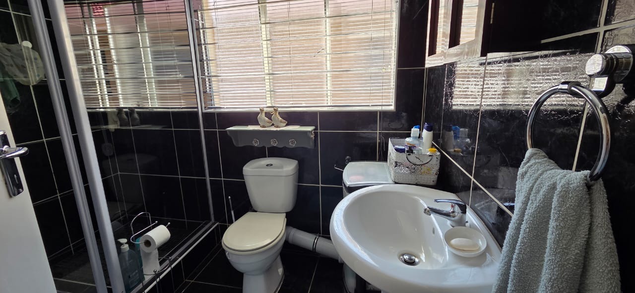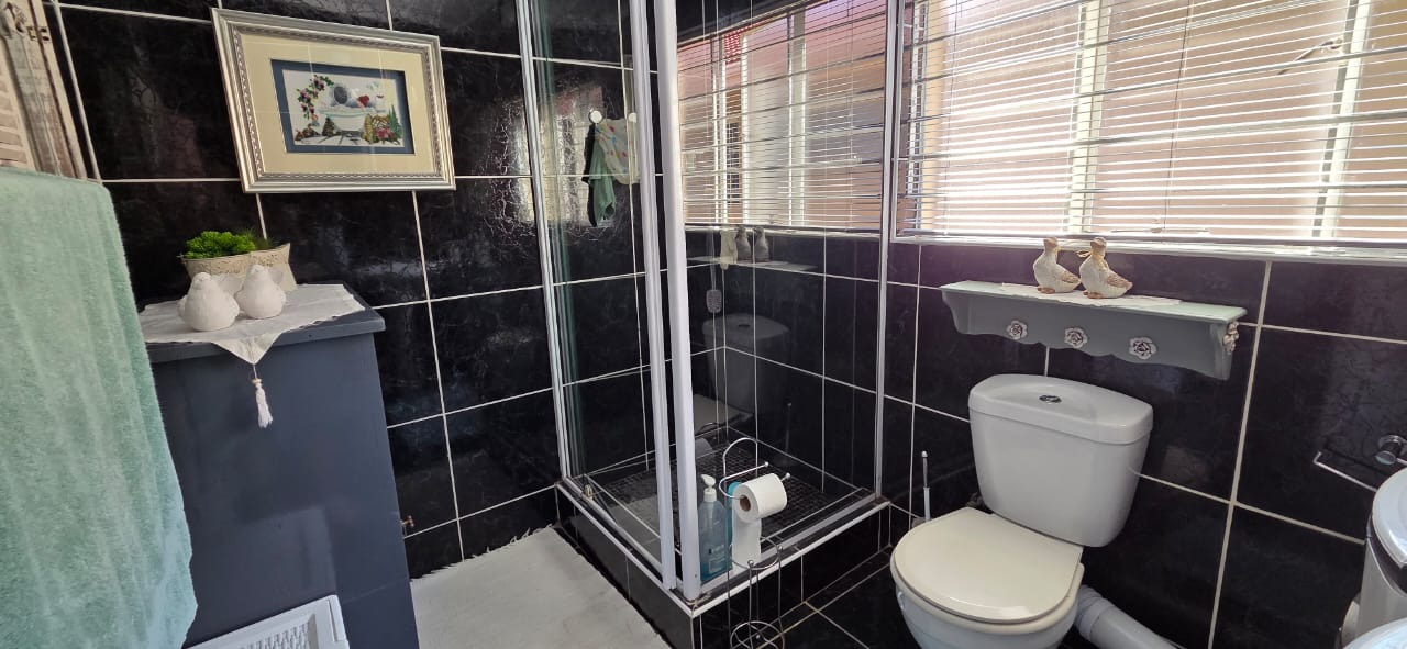 The home offers three bright, well-sized bedrooms with built-in cupboards, serviced by two neat bathrooms — one fitted with a bath and the other with a shower.