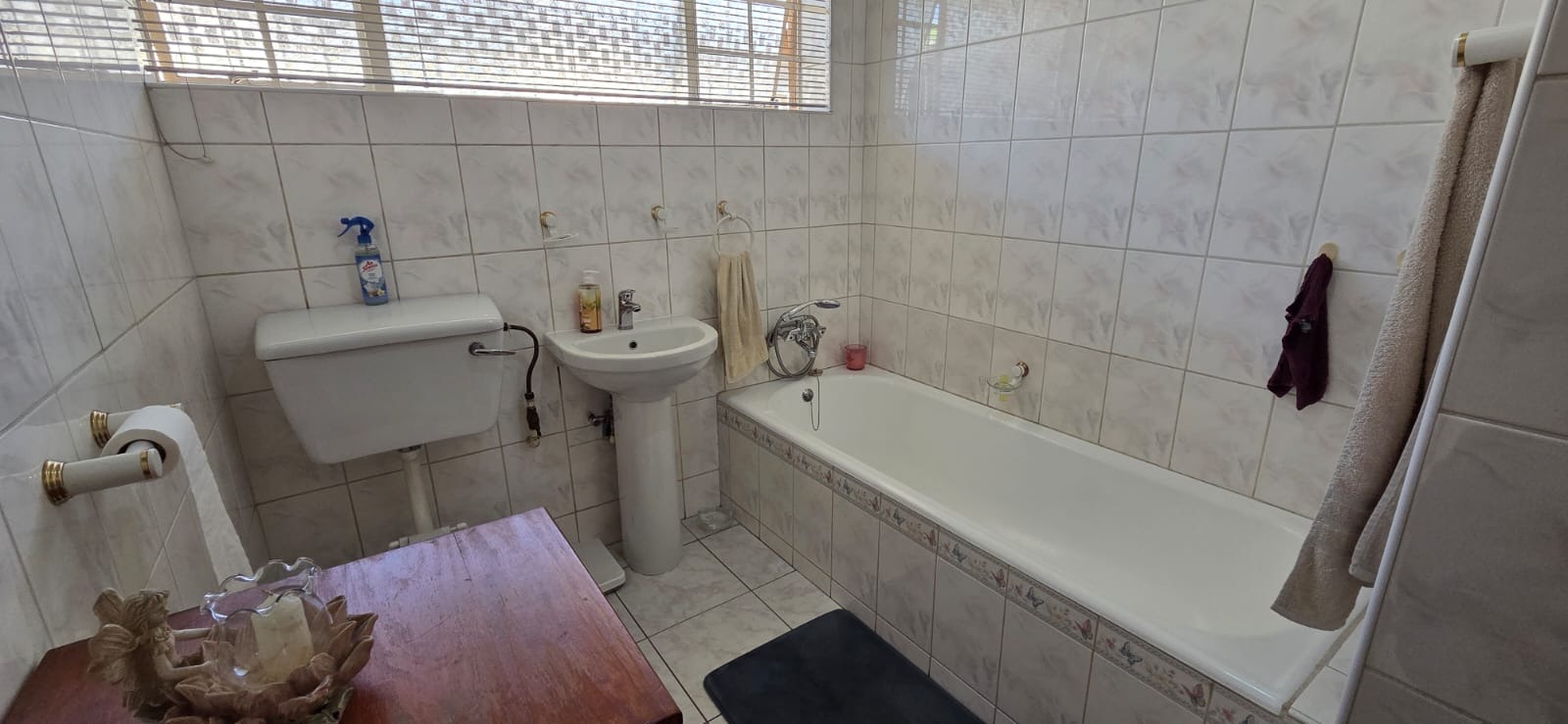 The home offers three bright, well-sized bedrooms with built-in cupboards, serviced by two neat bathrooms — one fitted with a bath and the other with a shower.