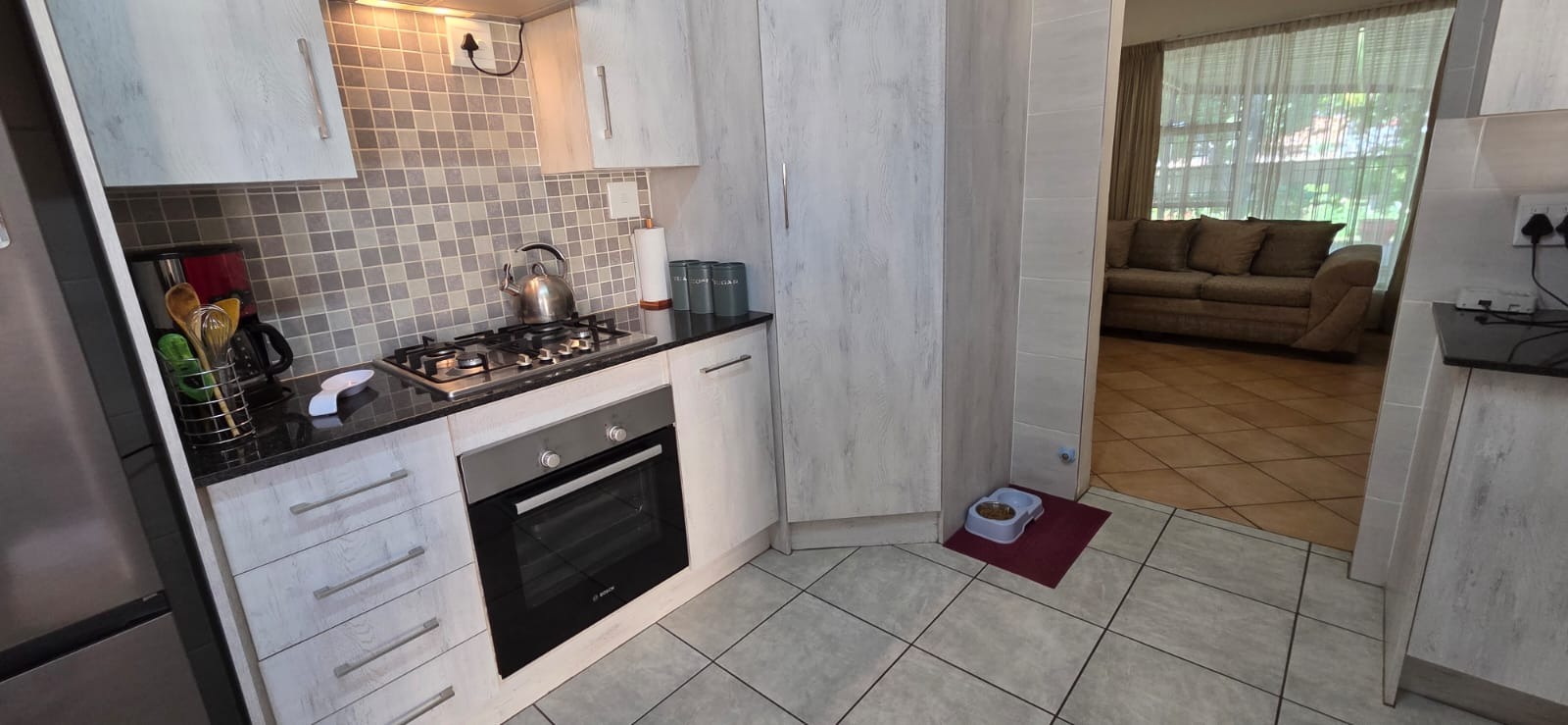 The recently renovated kitchen is both stylish and practical, featuring granite countertops, a gas hob, and ample cupboard space.