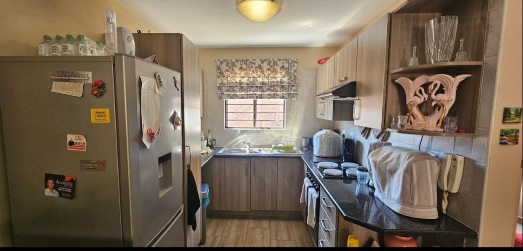 The cozy kitchen features ample cupboard space, practical worktops, and everything needed for convenient meal preparation. A guest toilet on the ground floor adds to the ease and comfort when entertaining visitors.