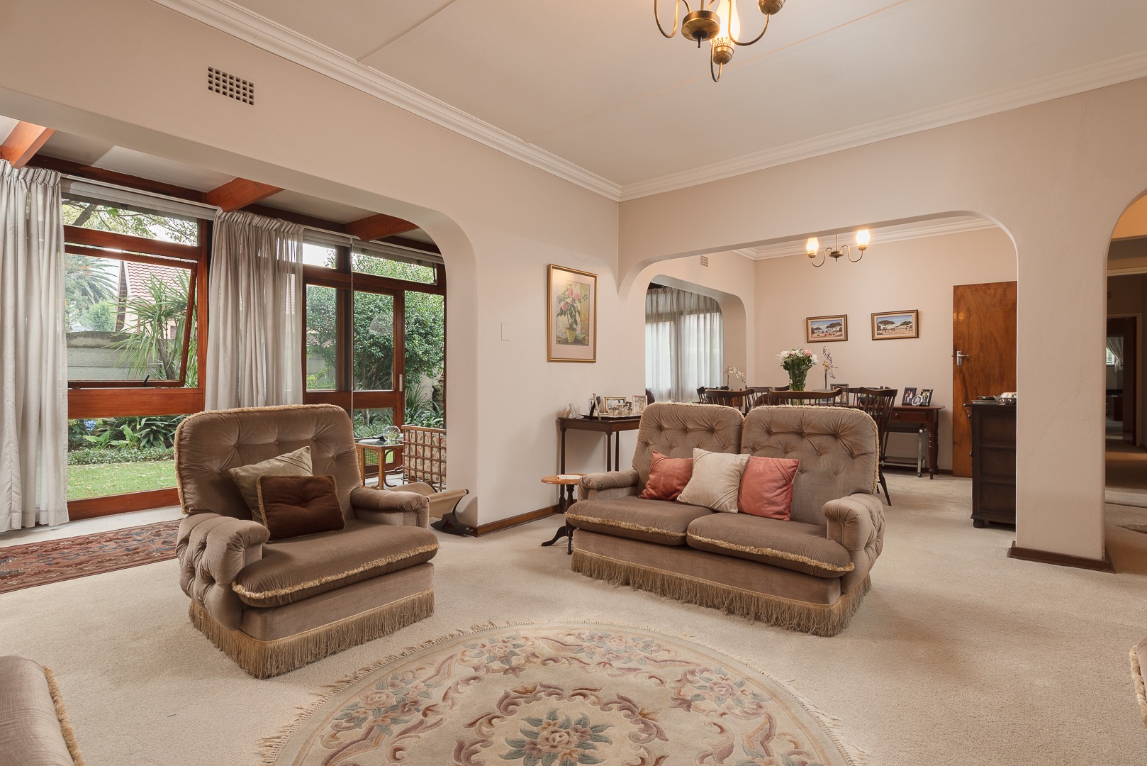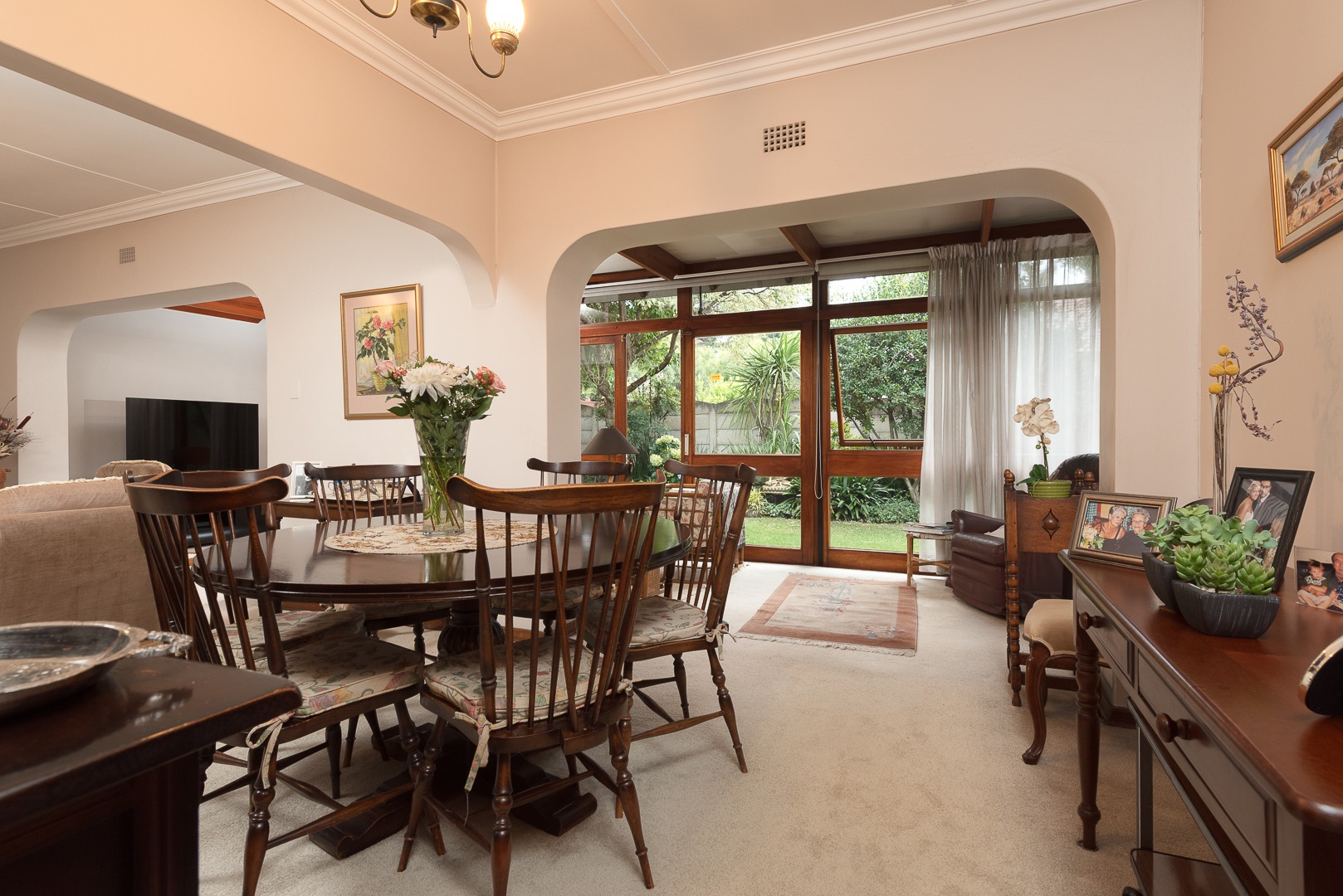 Large windows throughout, including a sunroom-like extension, offer pleasant garden views and abundant light.