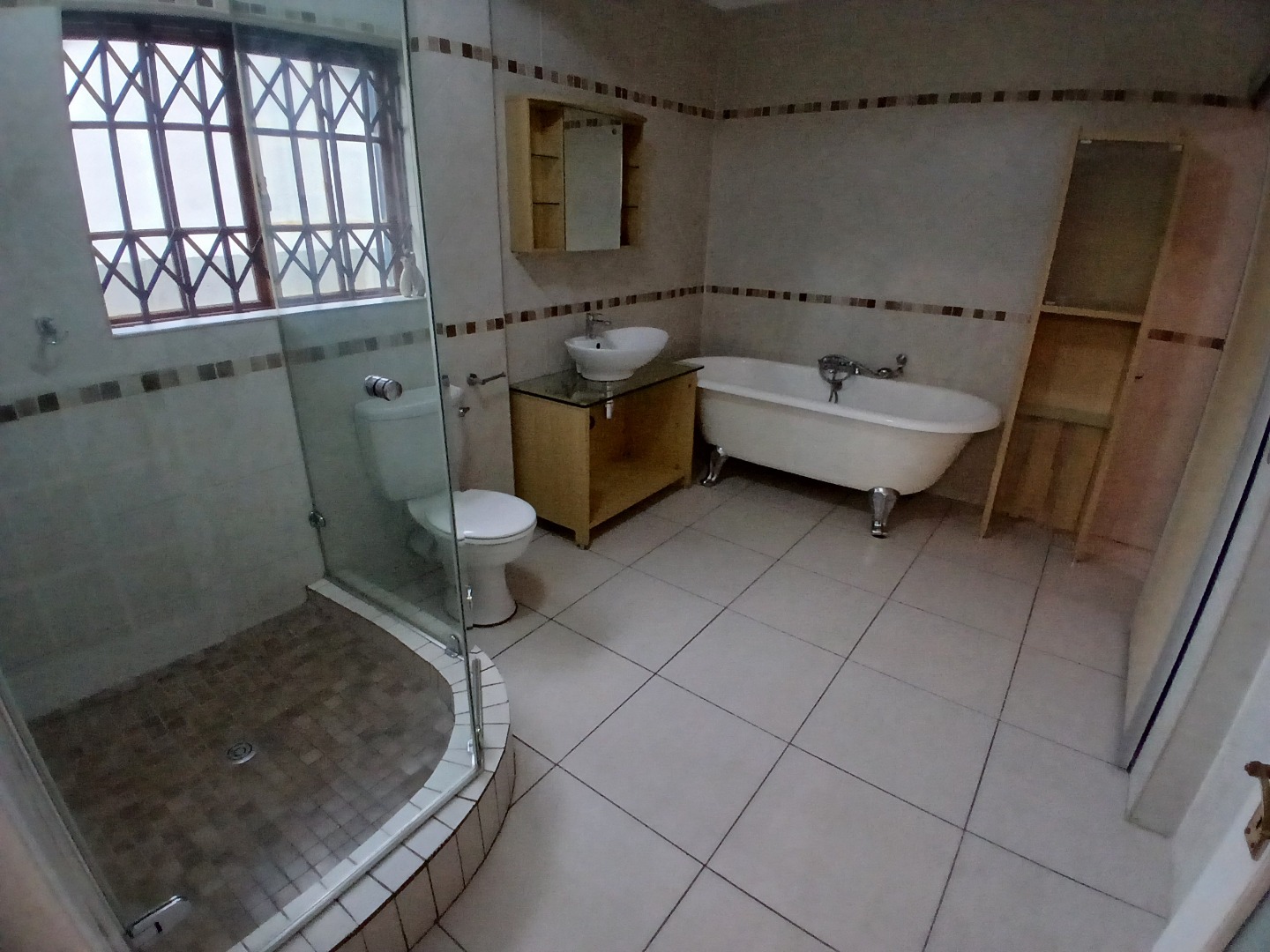 The main bedroom is generously proportioned, easily fitting a king-size bed, and features a private en-suite bathroom. Three additional spacious bedrooms are serviced by two well-appointed bathrooms, ensuring comfort for the entire family.