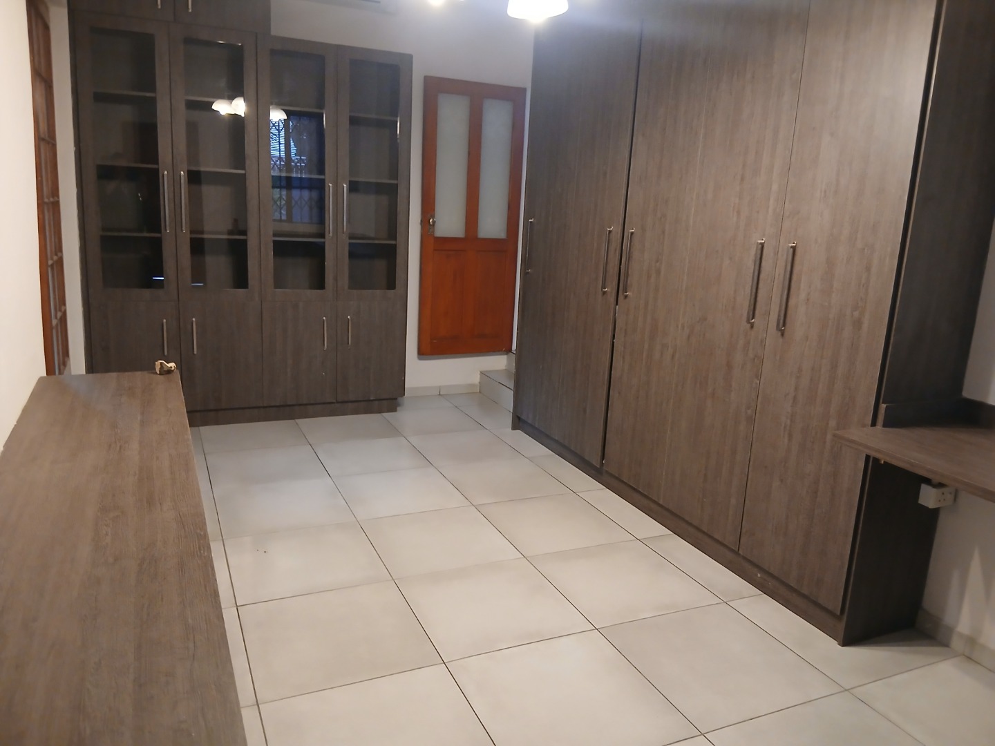 The dining room comfortably accommodates a large table and chairs, making it perfect for entertaining. Adjacent to the dining area is a substantial study fitted with plenty of cupboards—an ideal work-from-home setup or private office space.