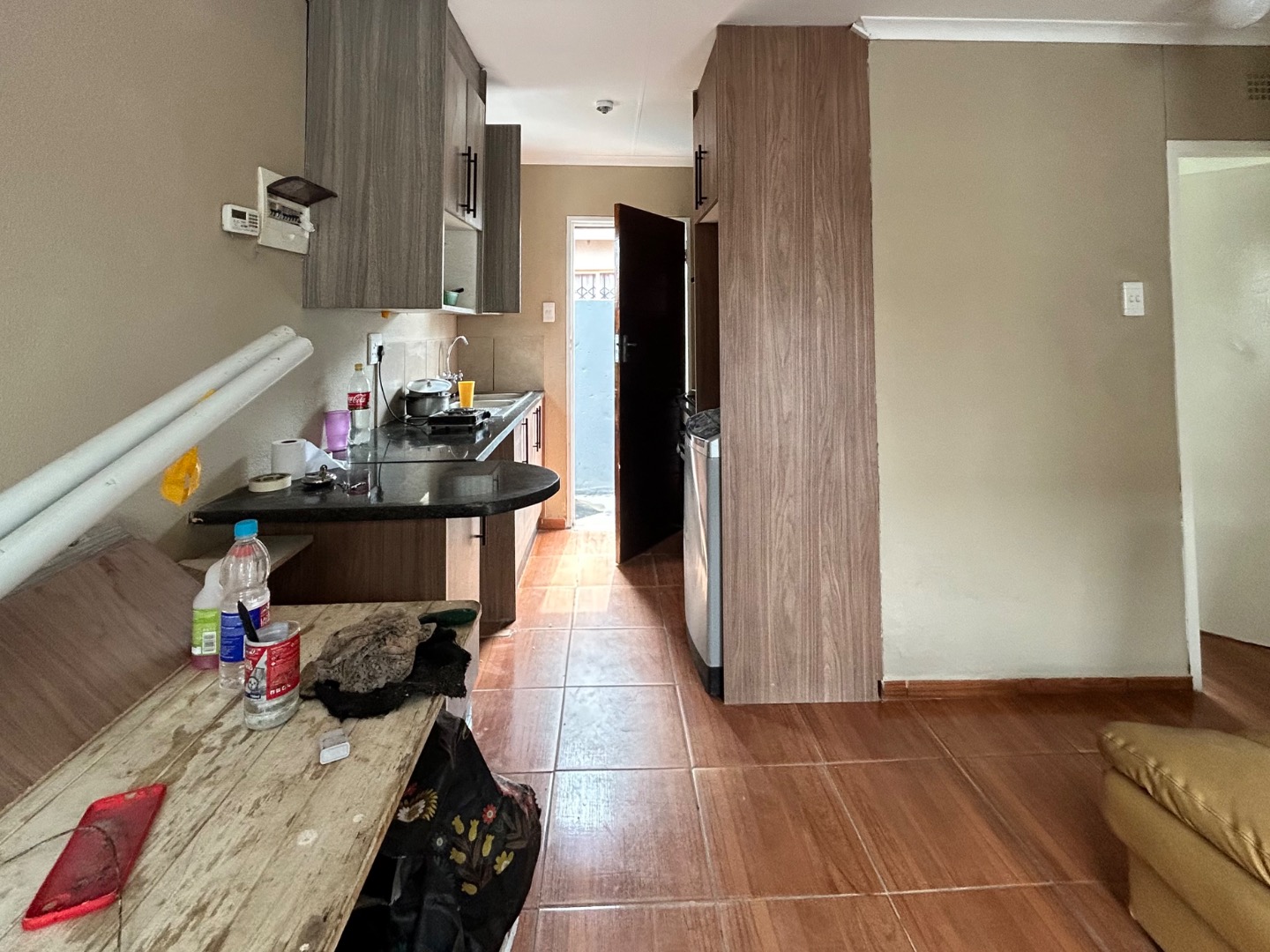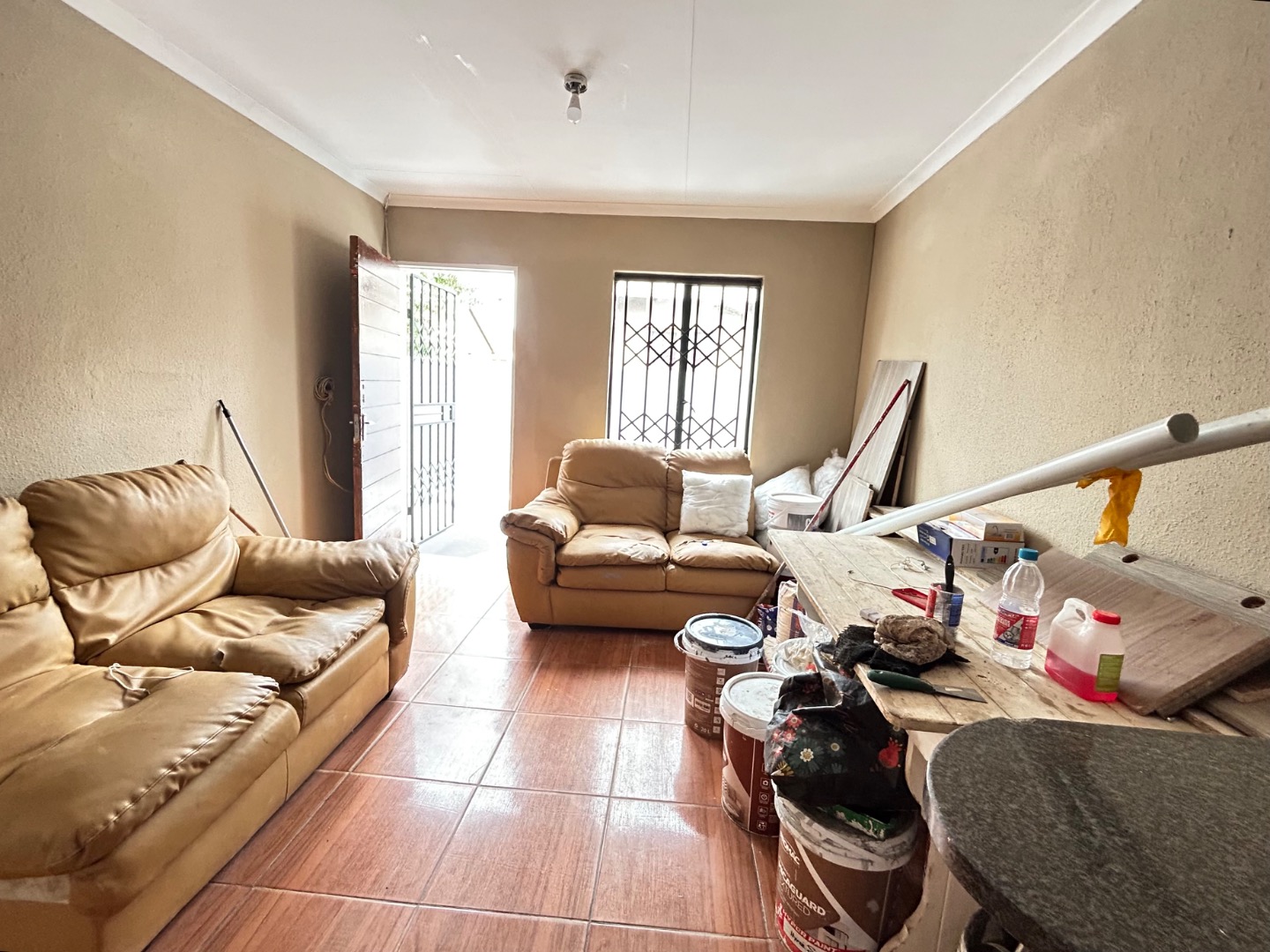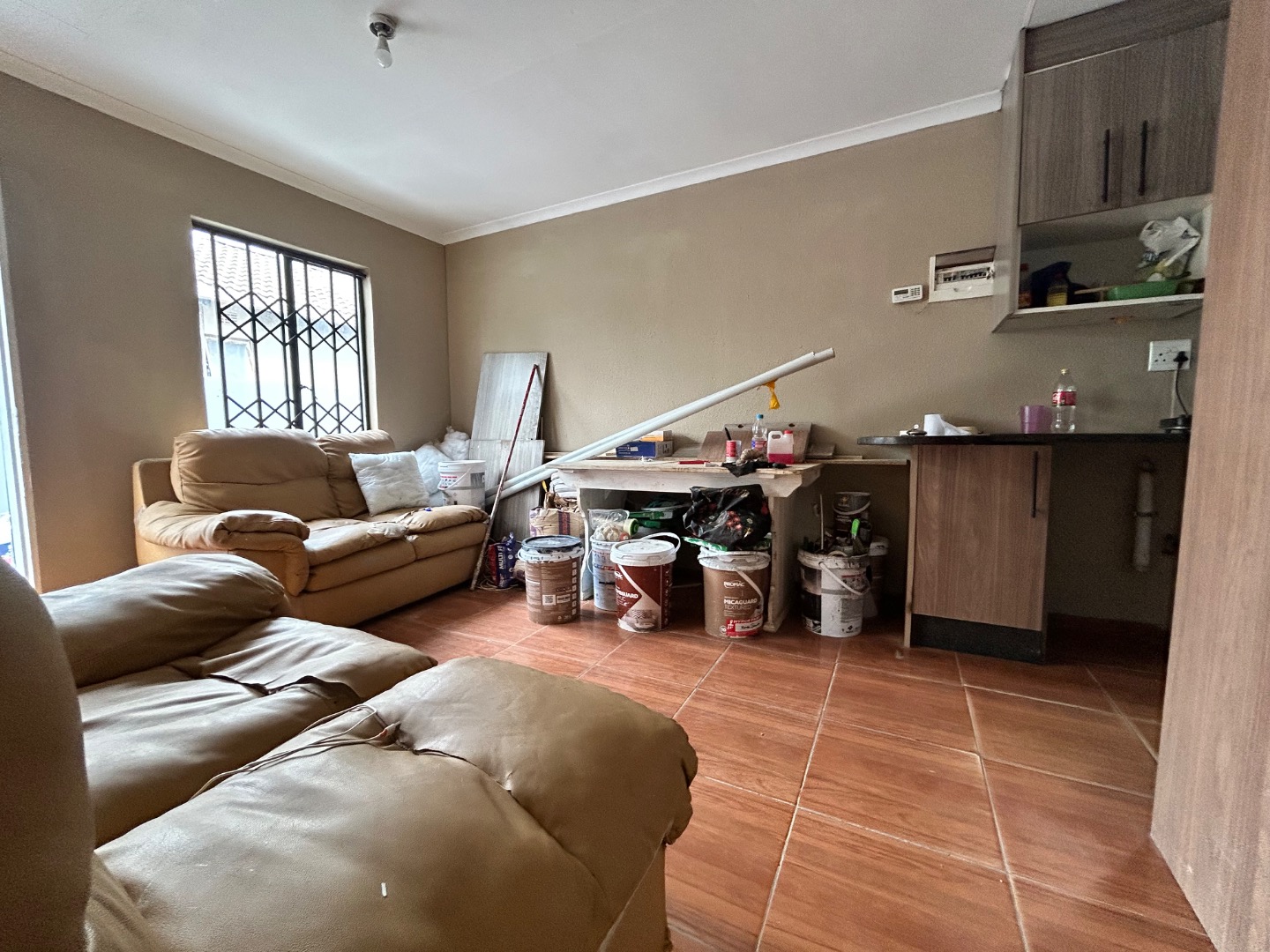 Situated on a 150 sqm erf, the property provides two dedicated parking spaces. The unique paved outdoor area is ideal for relaxation, complemented by a small garden patch. Security is a priority, with burglar bars on windows, a fully fenced perimeter, and an access gate. Solar lights on the roof offer a touch of energy efficiency.