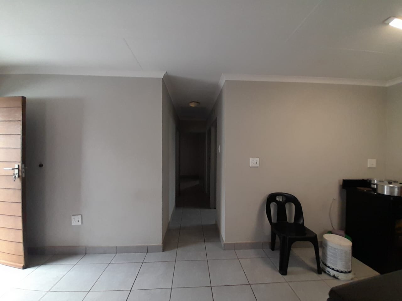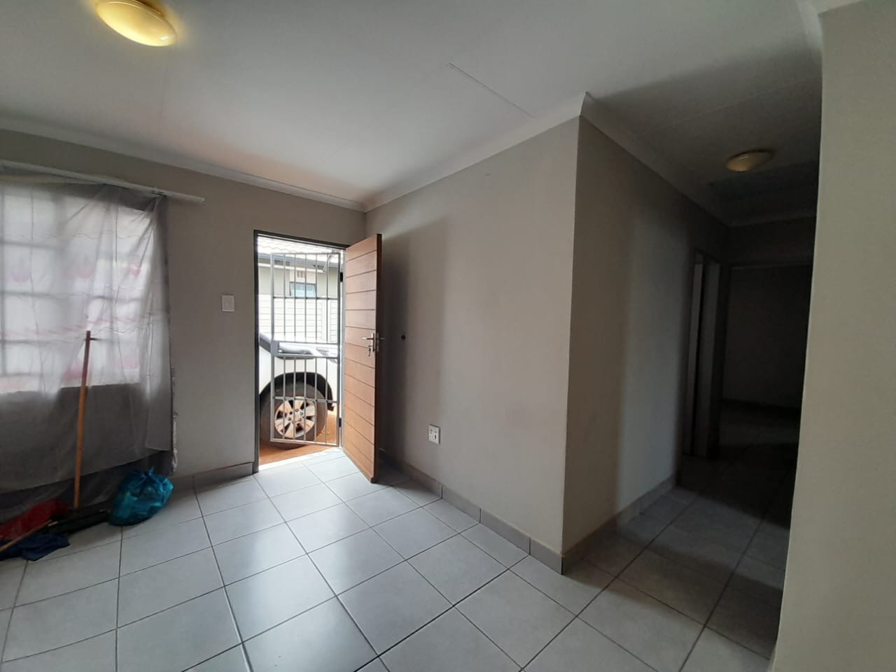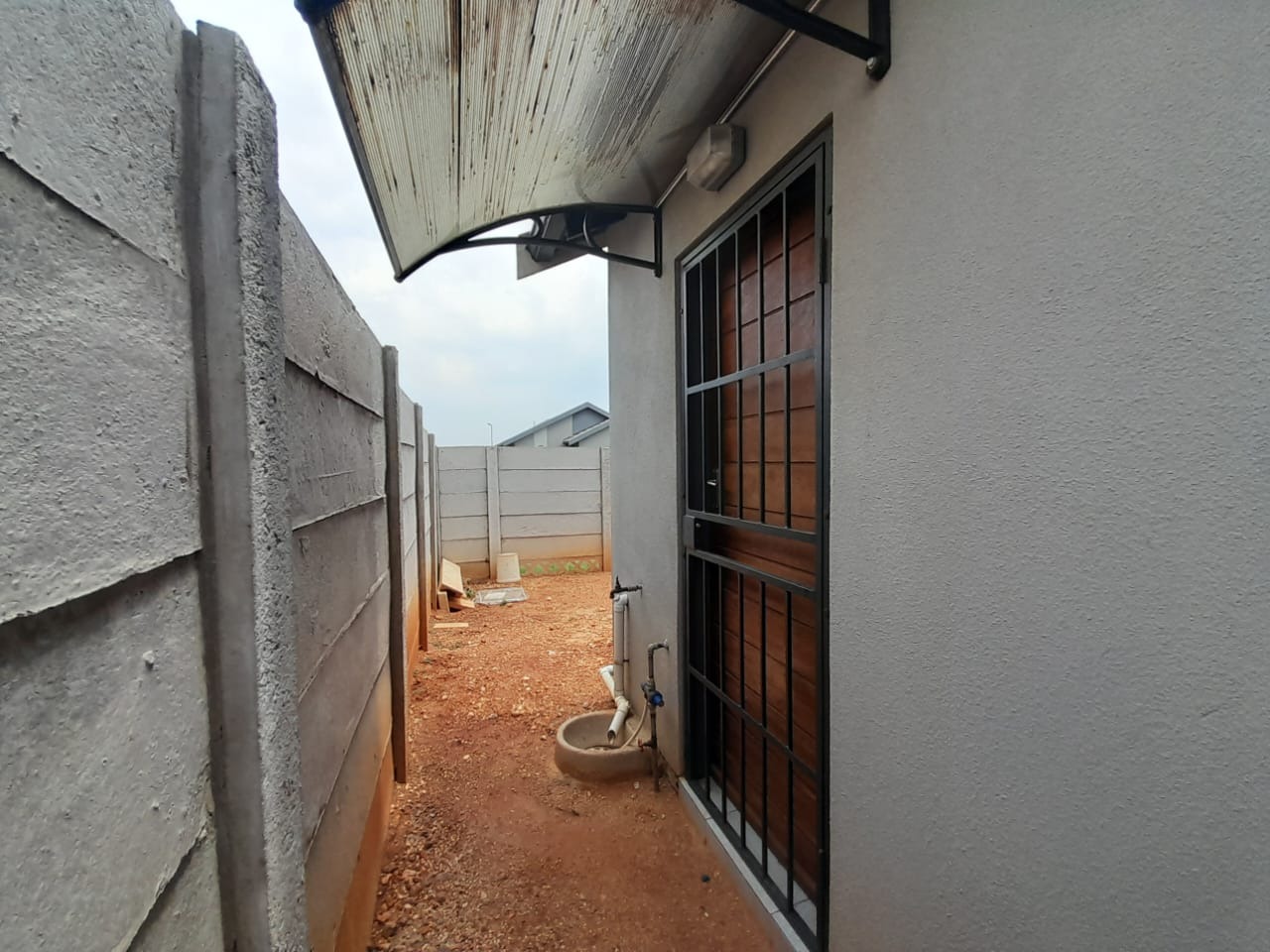 Discover this modern 3-bedroom, 2-bathroom home situated in the developing Sky City, Alberton. This property offers a contemporary design with a two-tone exterior and a sloping roof, presenting a fresh aesthetic. Located within a secure, suburban gated community and security estate, it provides a tranquil cul-de-sac setting. Step inside to an inviting open-plan living area, featuring clean, neutral-colored walls and durable tiled flooring throughout, offering a versatile canvas for personalisation. The layout includes a comfortable lounge and a functional kitchen. The compact kitchen is equipped with modern base cabinets, a small sink, and space for a washing machine, catering to essential needs. The residence comprises three well-proportioned bedrooms and two bathrooms, all maintaining the property's clean, tiled aesthetic. While currently unlandscaped, the 156 sqm erf provides a blank slate for future outdoor enhancements, offering two dedicated parking spaces within the property's secure perimeter. Security is a priority, with features including a totally walled perimeter, electric fencing, burglar bars, security gates, and an alarm system. The estate benefits from 24-hour security, CCTV, and a security post, ensuring peace of mind. This home is also fibre-ready and equipped with a solar geyser, promoting modern convenience and energy efficiency. Key Features: * 3 Bedrooms, 2 Bathrooms * Modern Architectural Design * Open-Plan Living Area * Tiled Flooring Throughout * Secure Gated Community * 24-Hour Security & CCTV * Fibre Ready & Solar Geyser * Pets Allowed * 156 sqm Erf with 2 Parking Spaces