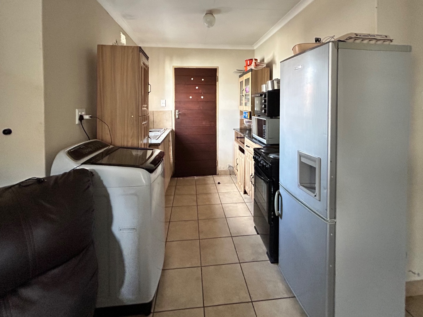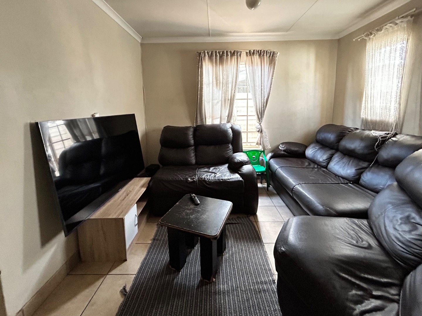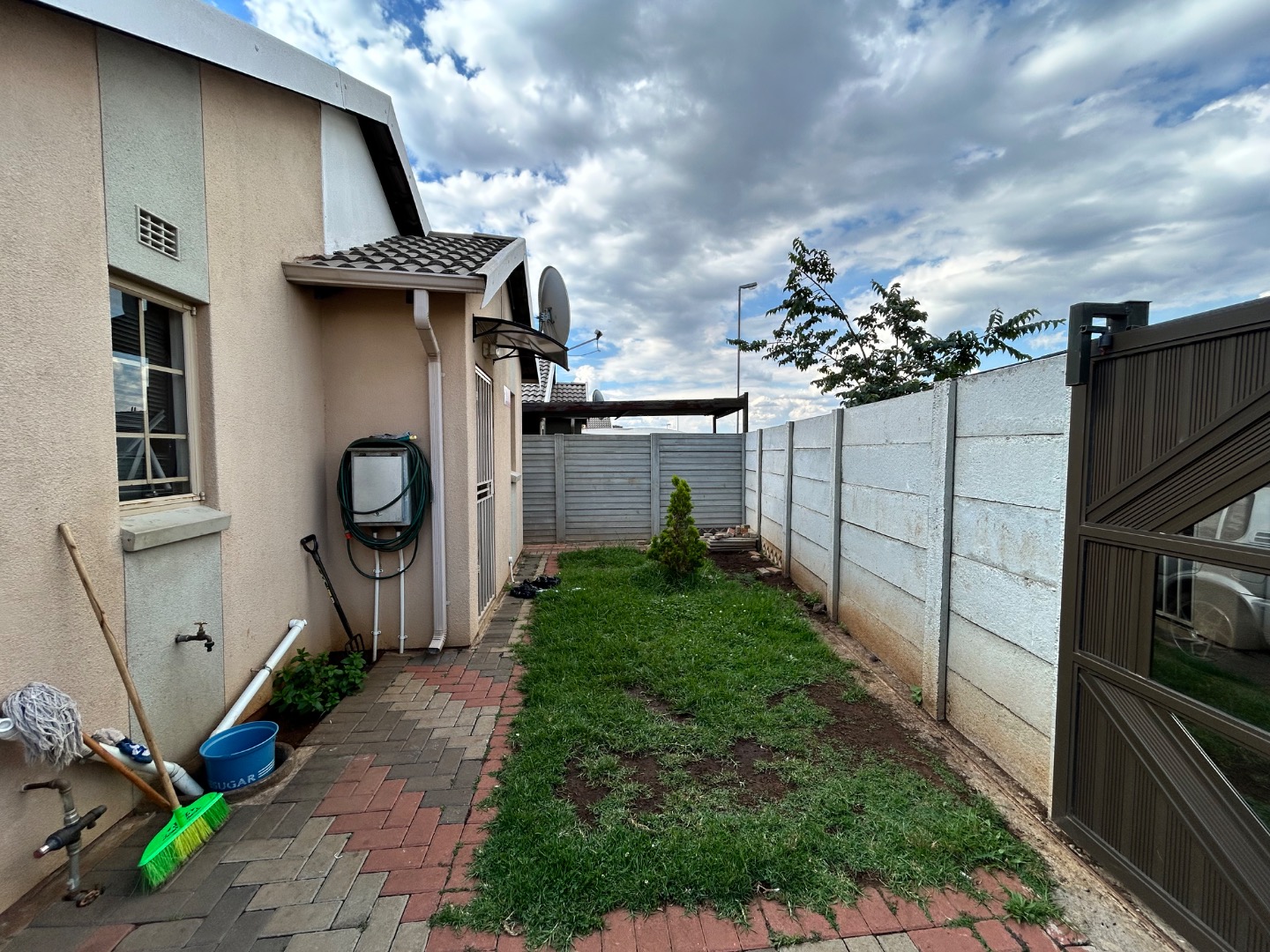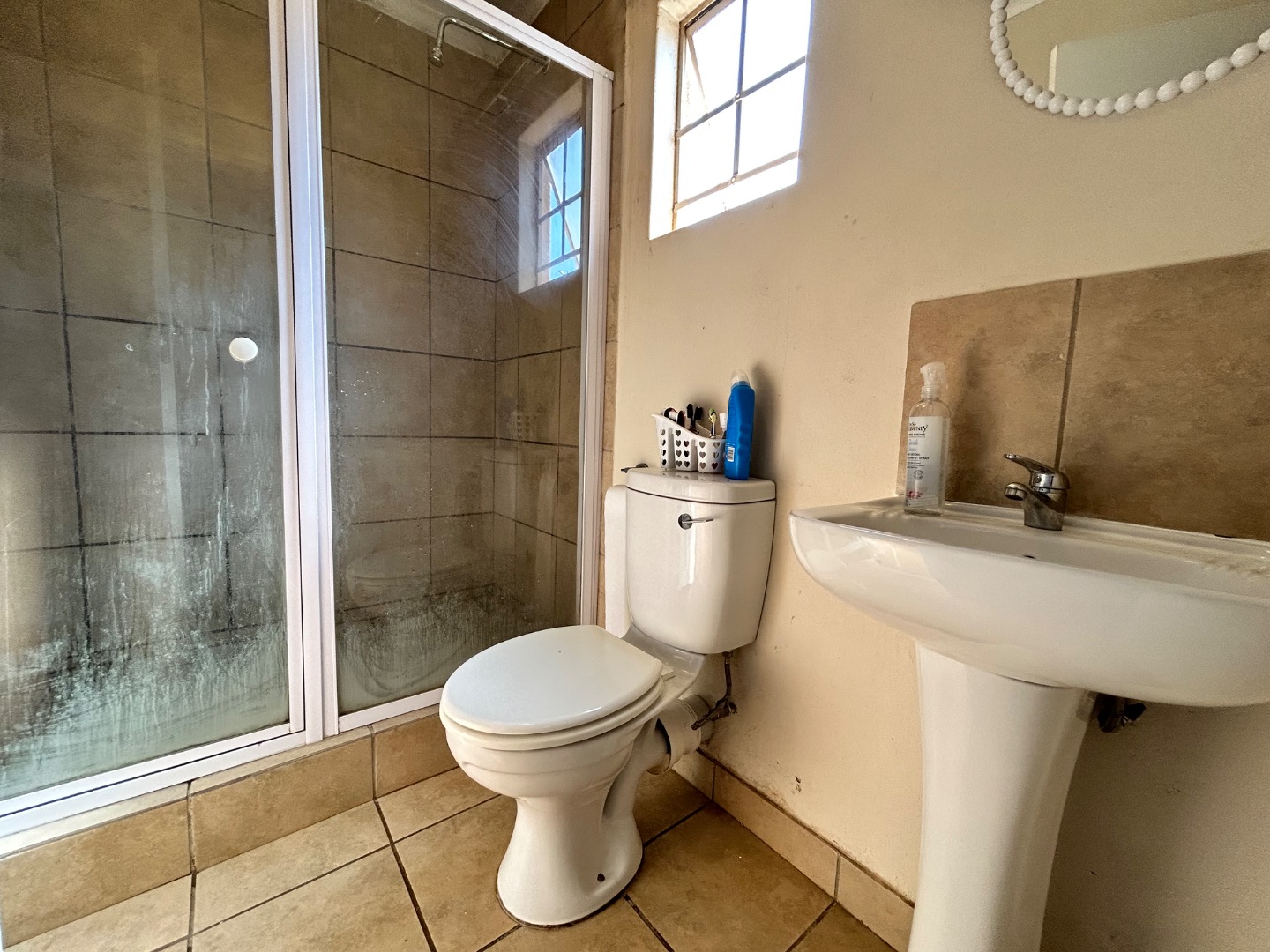 This inviting 3-bedroom, 2-bathroom residential property in the suburban heart of Sky City, Alberton, offers a practical and secure living environment. From the moment you arrive, the property presents a well-defined kerb appeal with sturdy precast concrete fencing and a functional access gate, ensuring privacy and security. The neatly paved front walkway and driveway, featuring attractive red and grey pavers, lead to the entrance, while the surrounding garden area, though currently undeveloped, offers a blank canvas for future landscaping and personal touches. The house exterior appears well-maintained, providing a solid first impression.