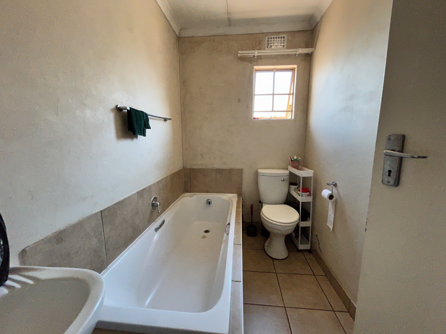 The home features three comfortable bedrooms, each with tiled flooring and good natural light, offering a versatile base for personalisation. Security bars on the windows provide added peace of mind. The two bathrooms are functional, with one featuring a white bathtub and toilet, complemented by tiled floors and a window for natural light and ventilation. These spaces, while currently dated, are ready for cosmetic updates to match your style.