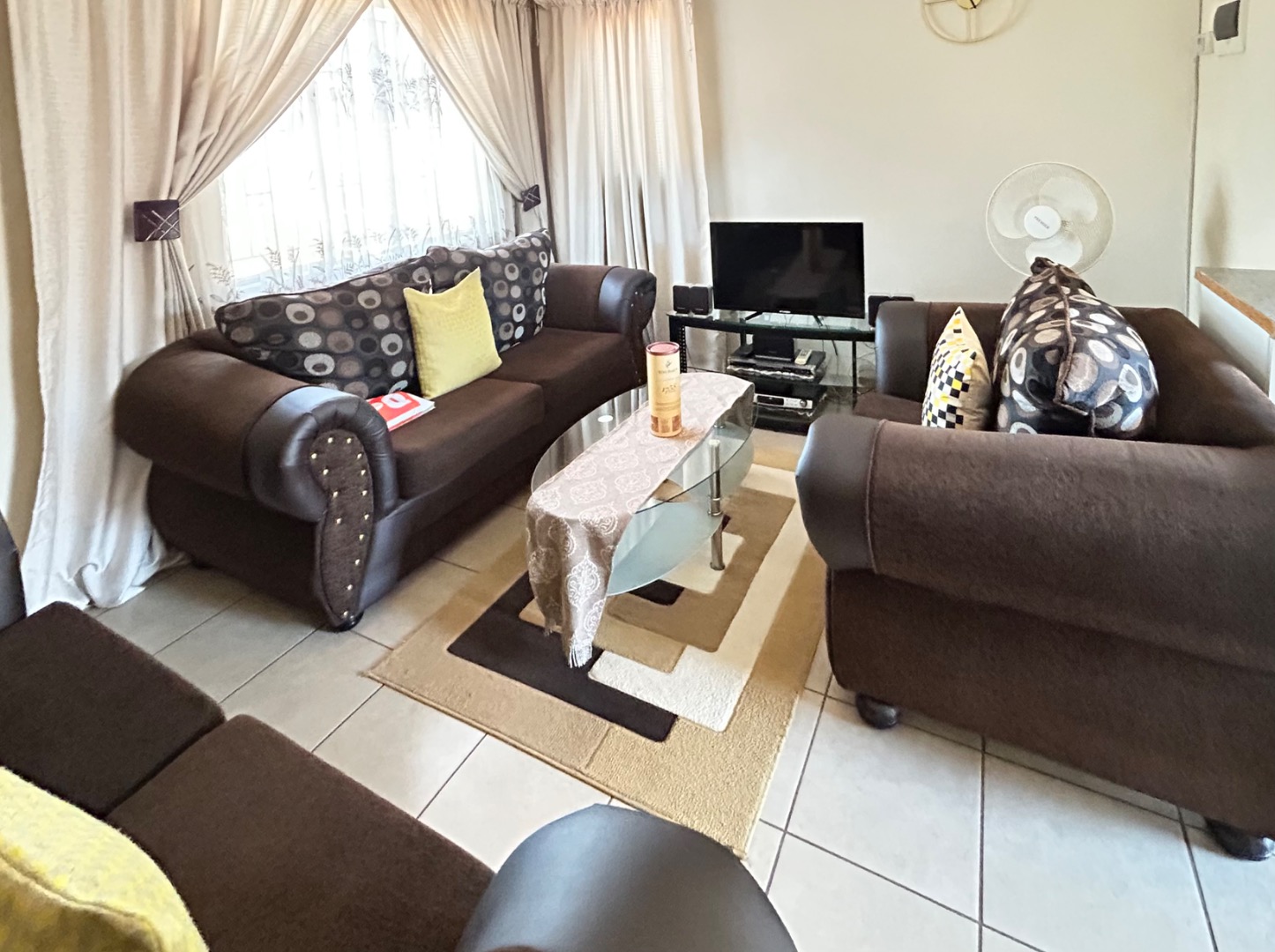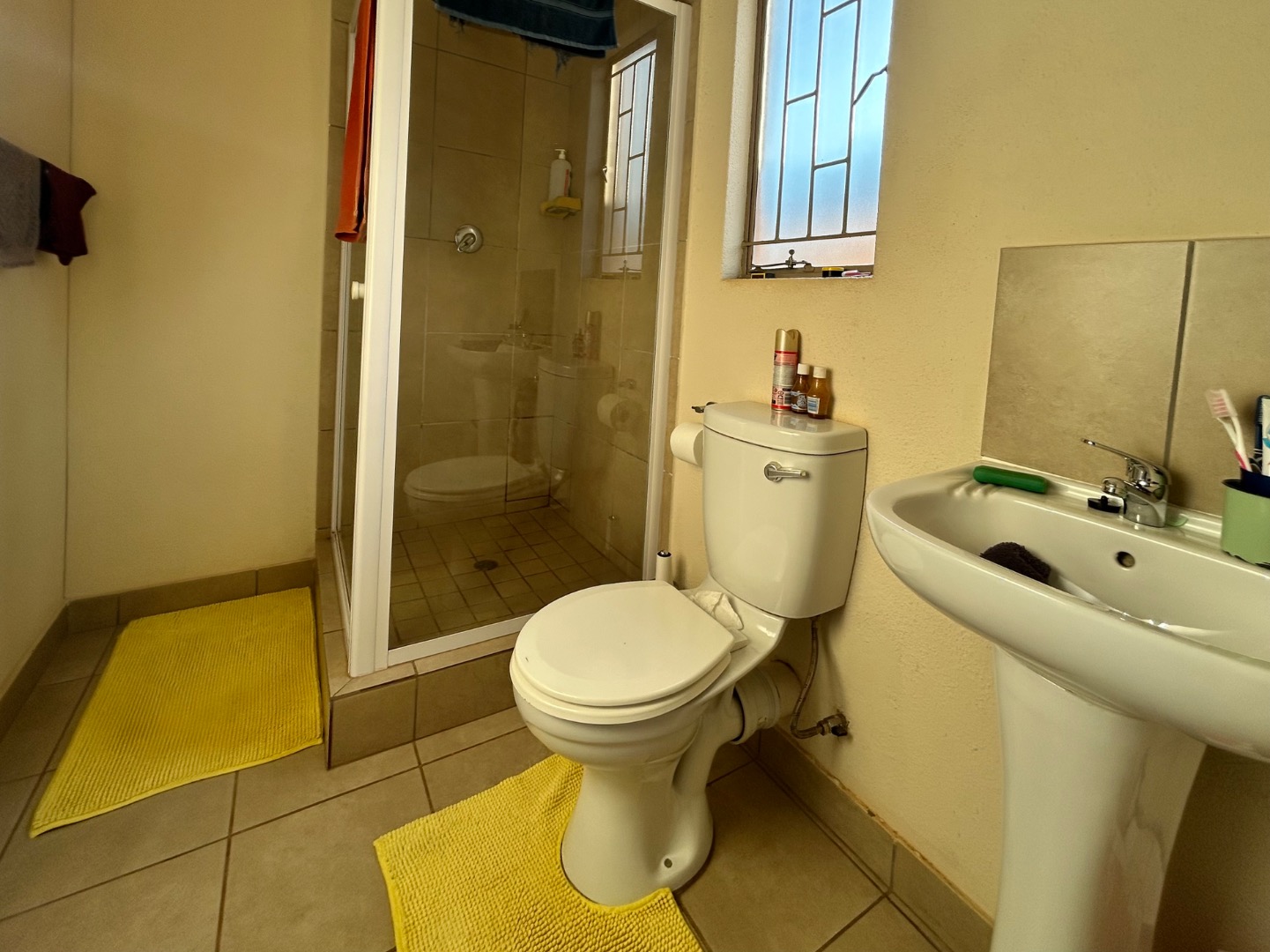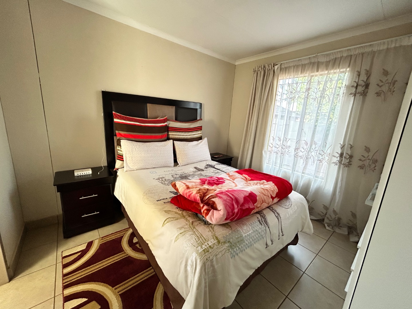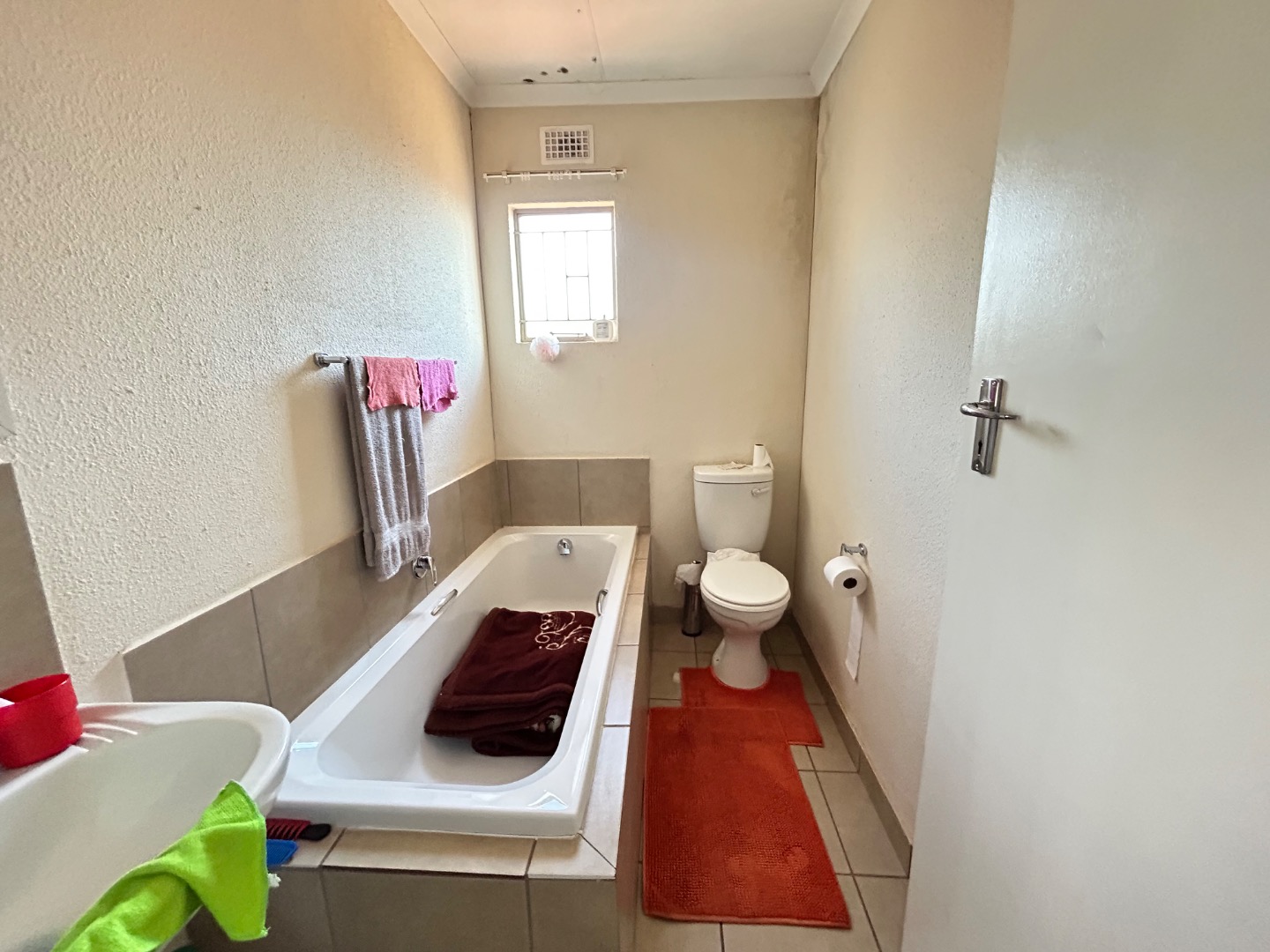 Nestled in the suburban community of Sky City, Alberton, this property offers a practical living solution in a developing area of South Africa. The single-story residence features a welcoming peach-colored exterior and a well-maintained tiled roof. Security is paramount, with fitted security bars on windows and a robust security gate on the main door, complemented by a concrete perimeter fence for privacy.