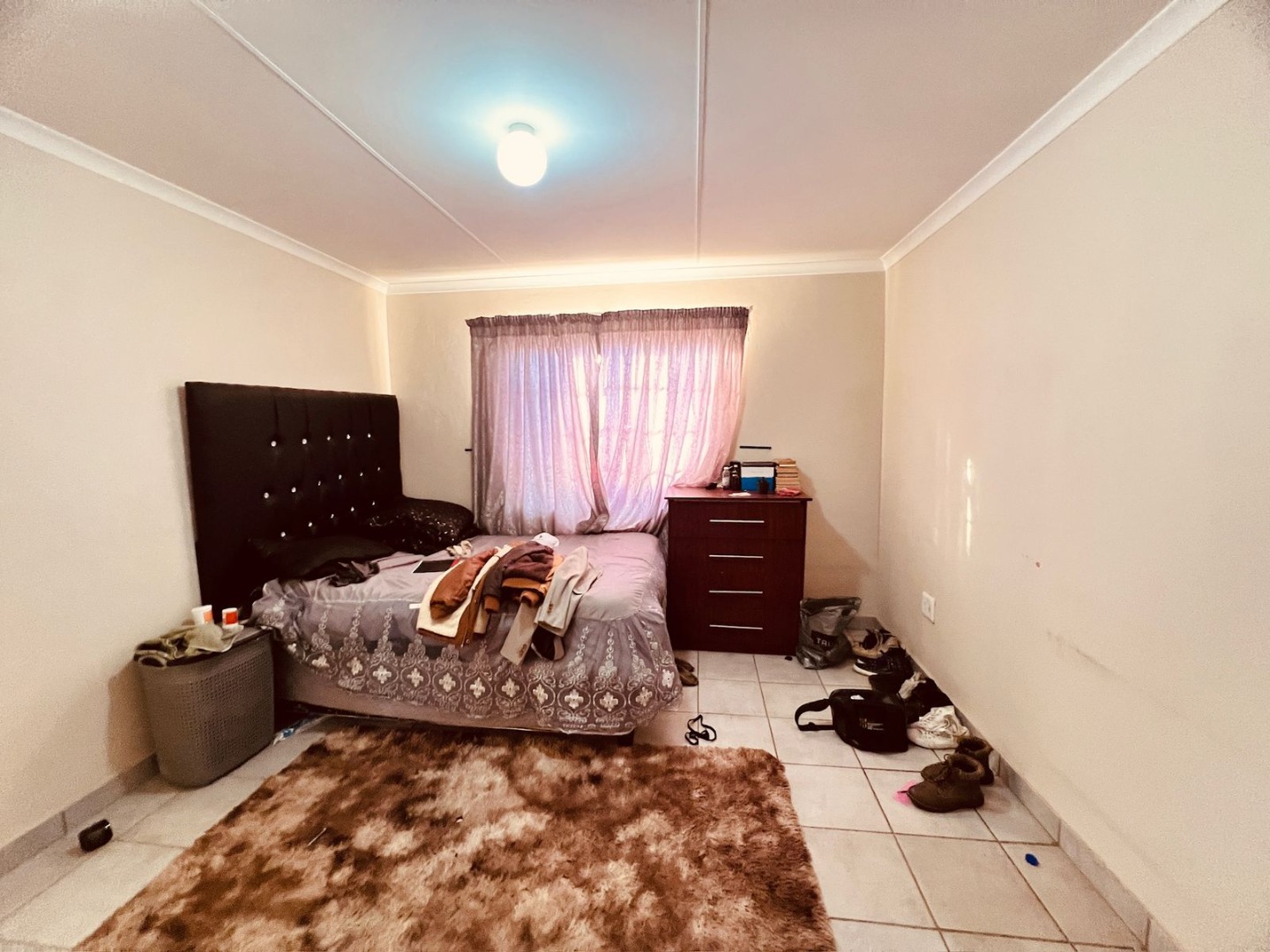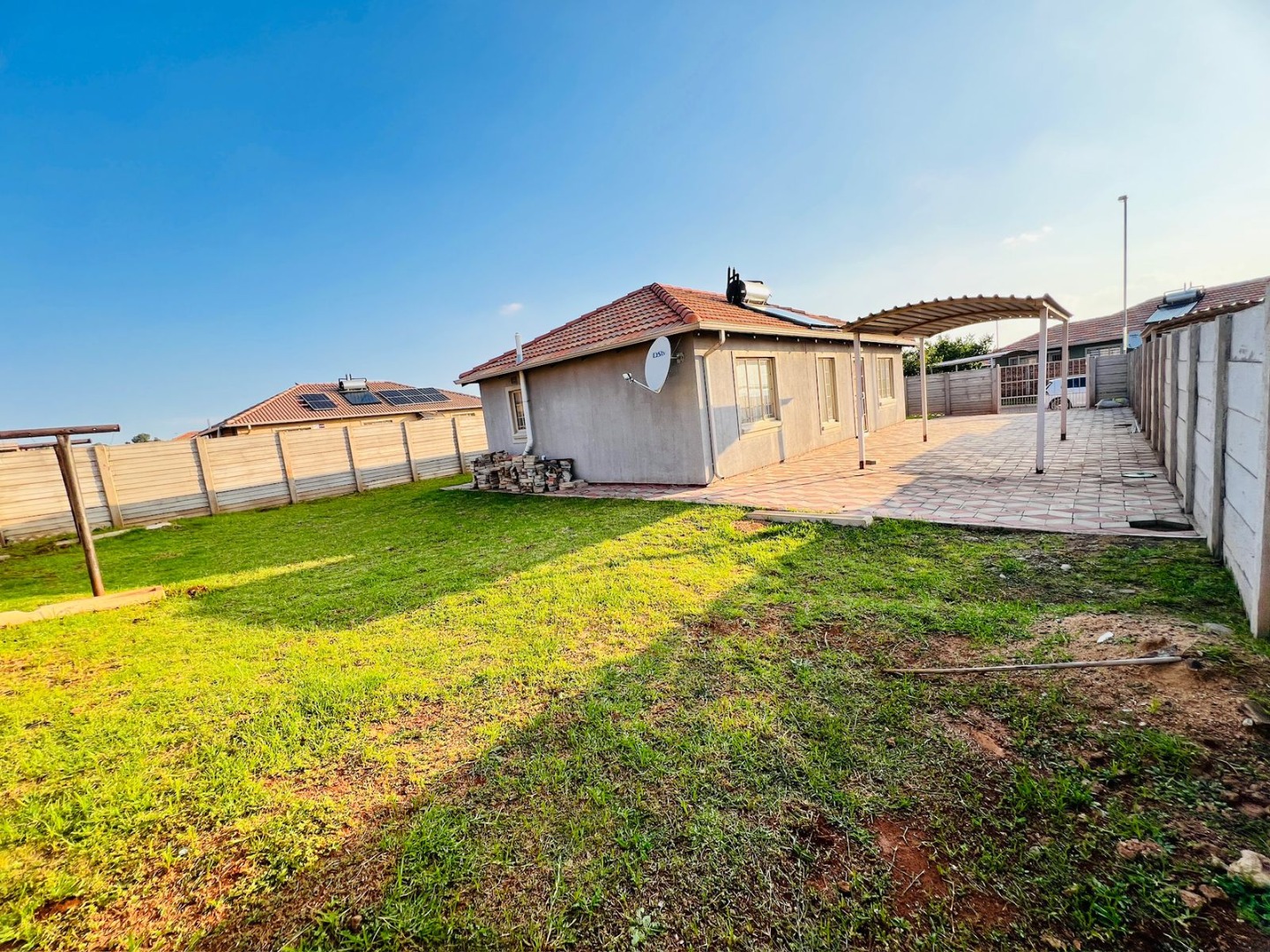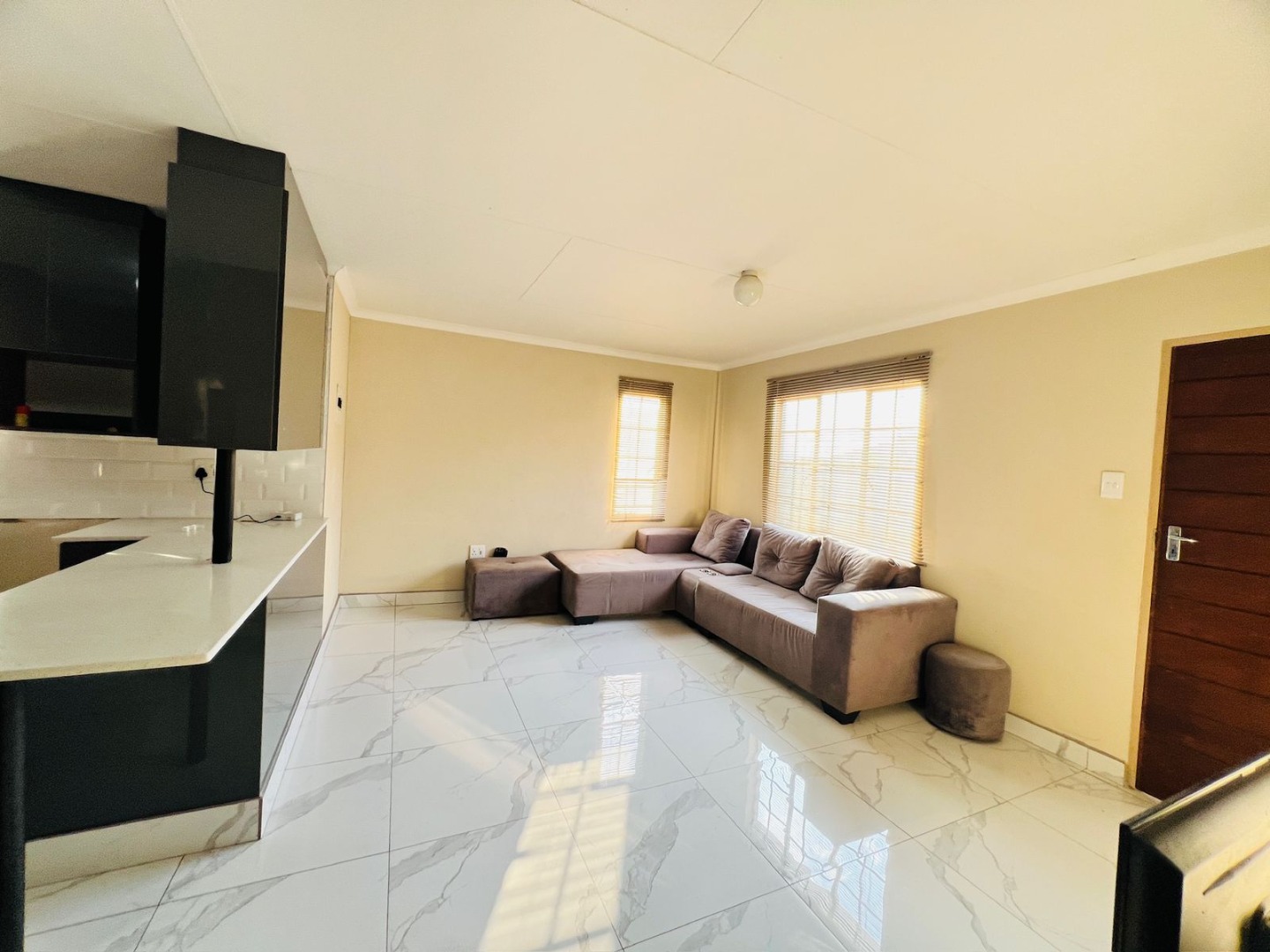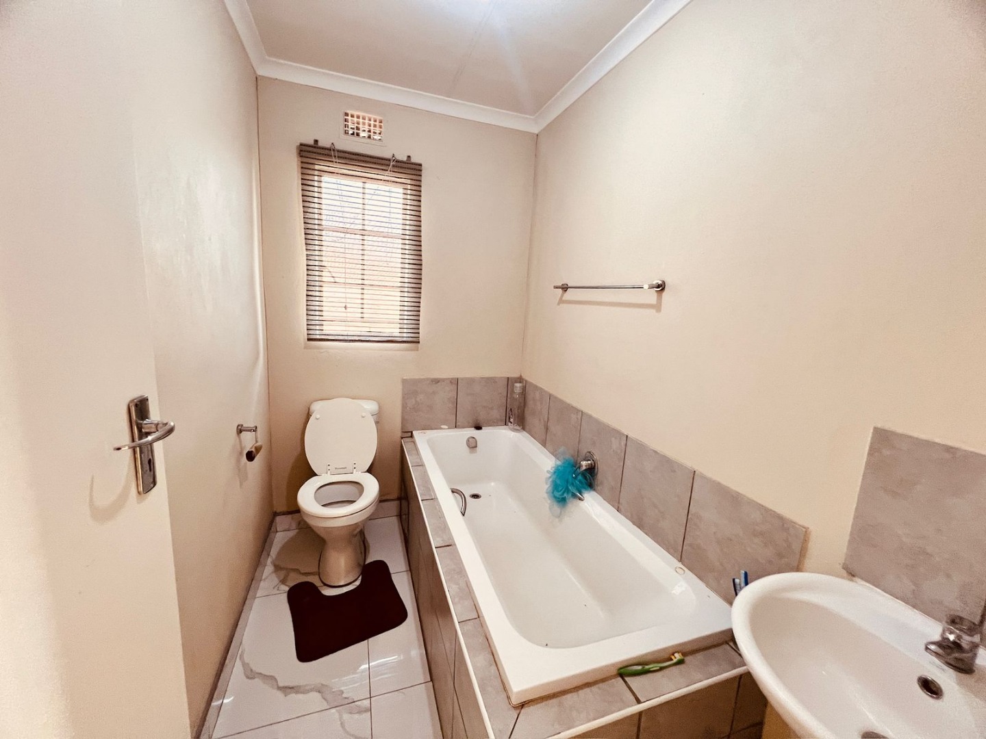 This inviting family home in Sky City, Alberton, offers a blend of modern living and practical features. The interior boasts an open-plan layout, seamlessly connecting the contemporary kitchen to the living and dining areas. The kitchen is a highlight, featuring sleek grey cabinetry, white subway tile backsplash, light countertops, and new large format tiled flooring, creating a fresh and functional space for daily life and entertaining. Neutral wall colours and good natural light enhance the overall ambiance. The residence comprises three well-proportioned bedrooms, each with durable tiled flooring and neutral walls, providing a versatile canvas for personal style. The two bathrooms are practical, featuring neutral tiling, a full bathtub, and a window for natural light and ventilation. A modern, light-colored tiled hallway connects the various living spaces, ensuring a cohesive flow throughout the home. Externally, the property is designed for low maintenance and security. It features an extensive, geometrically patterned paved yard, complemented by small, manicured lawn areas. A covered carport provides sheltered parking, in addition to the three garages. Security is paramount, with burglar bars on windows, a security gate, and high perimeter fencing ensuring peace of mind. The home also benefits from a solar water heater, contributing to energy efficiency. Located in the vibrant Sky City, Alberton, this property offers convenient living in a well-established South African community. Its kerb appeal is enhanced by a well-maintained exterior and a durable tiled roof. Key Features: * 3 Bedrooms, 2 Bathrooms * Modern Open-Plan Kitchen * Extensive Paved Yard * Covered Carport & 3 Garages * Solar Water Heater * Enhanced Security Features * Tiled Flooring Throughout * 350 sqm Erf Size