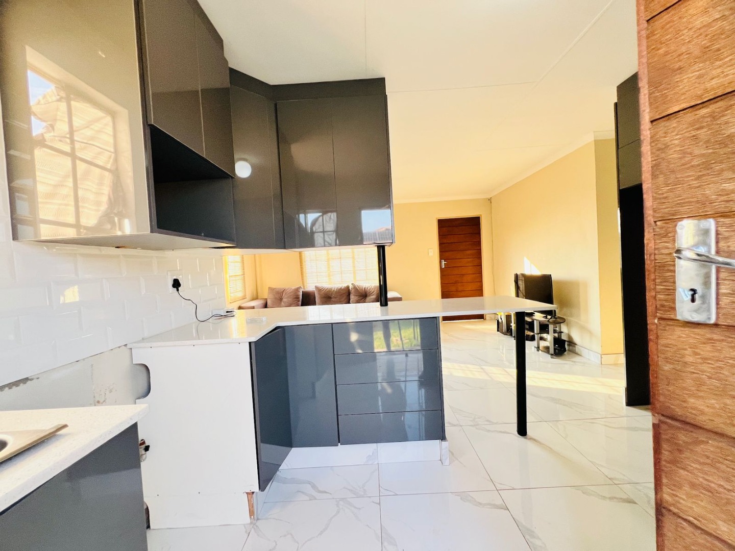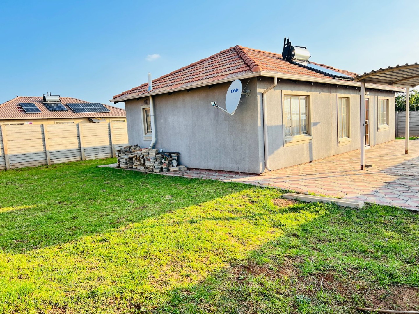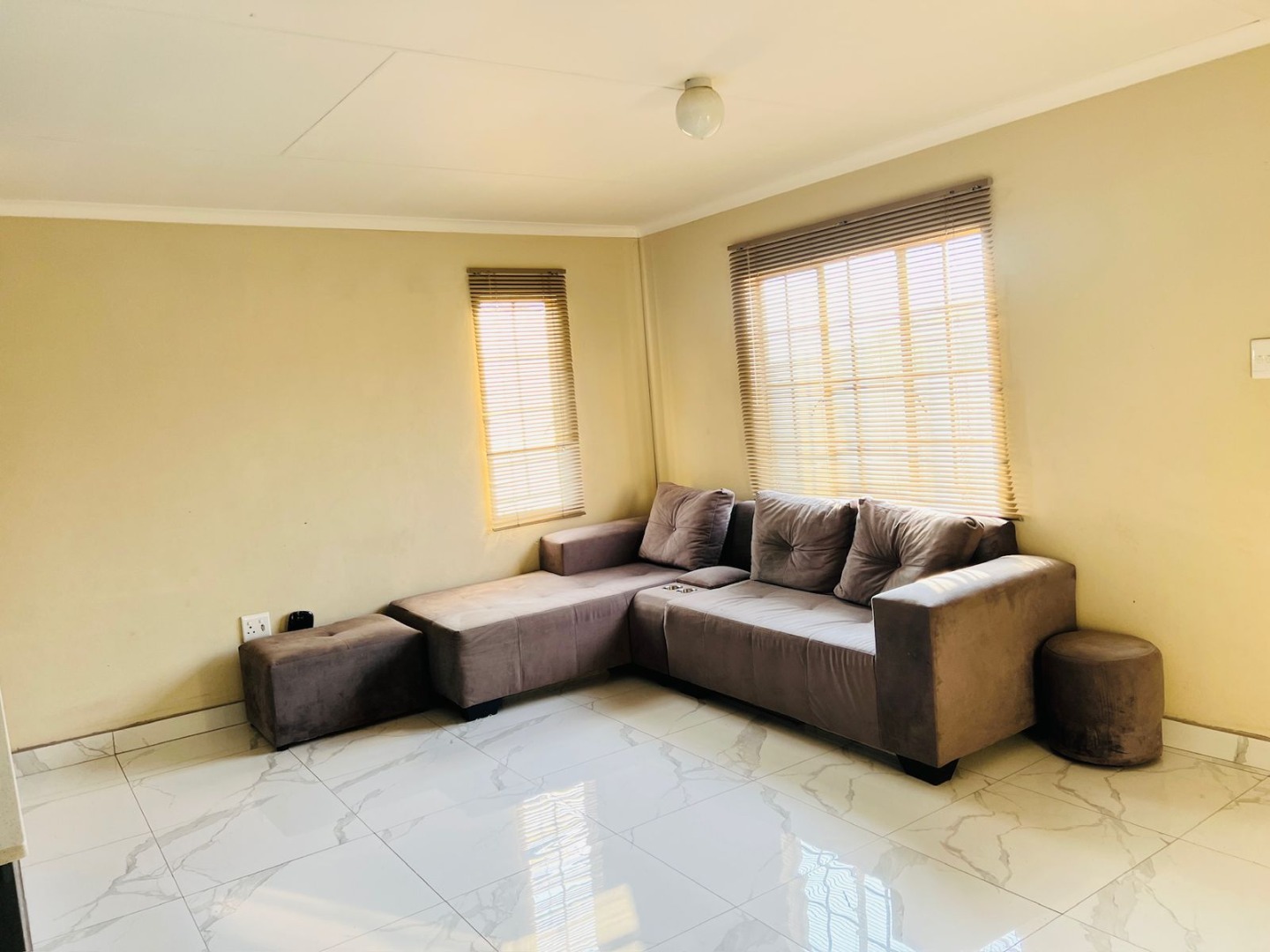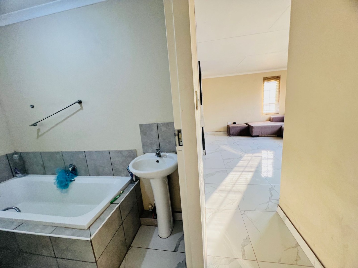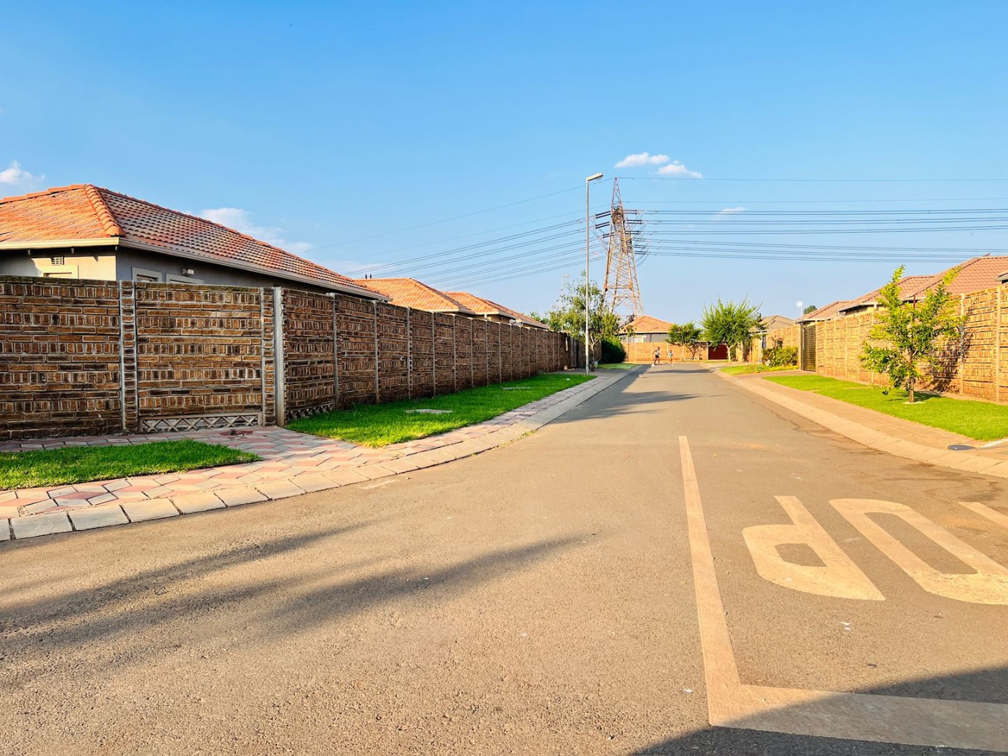 This inviting family home in Sky City, Alberton, offers a blend of modern living and practical features. The interior boasts an open-plan layout, seamlessly connecting the contemporary kitchen to the living and dining areas. The kitchen is a highlight, featuring sleek grey cabinetry, white subway tile backsplash, light countertops, and new large format tiled flooring, creating a fresh and functional space for daily life and entertaining. Neutral wall colours and good natural light enhance the overall ambiance. The residence comprises three well-proportioned bedrooms, each with durable tiled flooring and neutral walls, providing a versatile canvas for personal style. The two bathrooms are practical, featuring neutral tiling, a full bathtub, and a window for natural light and ventilation. A modern, light-colored tiled hallway connects the various living spaces, ensuring a cohesive flow throughout the home. Externally, the property is designed for low maintenance and security. It features an extensive, geometrically patterned paved yard, complemented by small, manicured lawn areas. A covered carport provides sheltered parking, in addition to the three garages. Security is paramount, with burglar bars on windows, a security gate, and high perimeter fencing ensuring peace of mind. The home also benefits from a solar water heater, contributing to energy efficiency. Located in the vibrant Sky City, Alberton, this property offers convenient living in a well-established South African community. Its kerb appeal is enhanced by a well-maintained exterior and a durable tiled roof. Key Features: * 3 Bedrooms, 2 Bathrooms * Modern Open-Plan Kitchen * Extensive Paved Yard * Covered Carport & 3 Garages * Solar Water Heater * Enhanced Security Features * Tiled Flooring Throughout * 350 sqm Erf Size