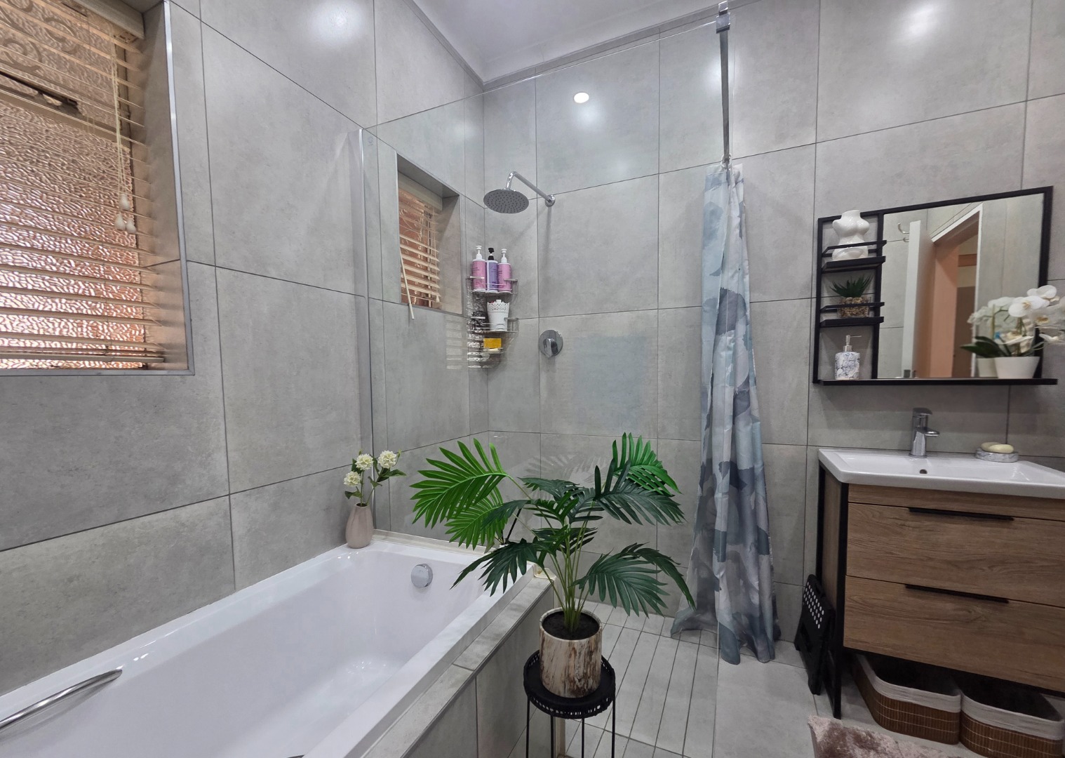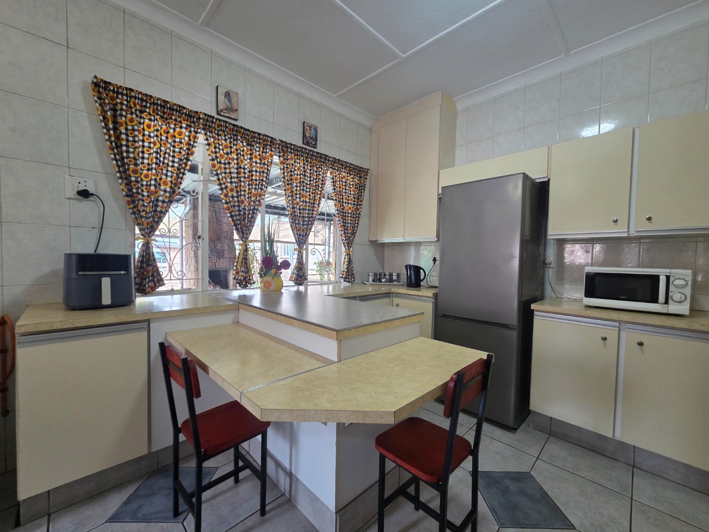 Outdoor living is a highlight of this property. The home boasts two patios, one of which includes a built-in braai, making it perfect for weekend barbecues and outdoor entertaining. The lovely garden provides a peaceful setting for children to play and for pets to roam freely, as the property is pet-friendly.