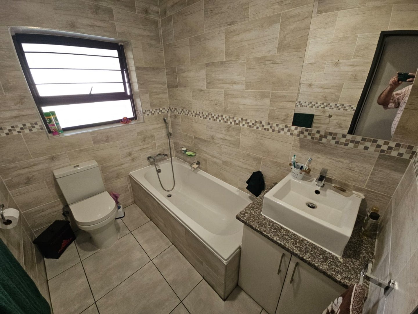 Step outside to the enclosed entertainment patio, a perfect extension of the living space. Complete with a built-in braai and a stylish bar area, this space is designed for hosting friends, celebrating special moments, or enjoying relaxed weekend gatherings. The property also boasts a beautifully maintained garden, offering a serene outdoor retreat. Additional features that add incredible value and peace of mind include a double automated garage with parking for up to three vehicles, and an outside storeroom with exciting potential to convert into a bachelor pad or income-generating flatlet. The home benefits from brand-new aluminium windows throughout, a completely rewired electrical system, six solar panels promoting energy-efficient living, and a CCTV camera providing enhanced security.