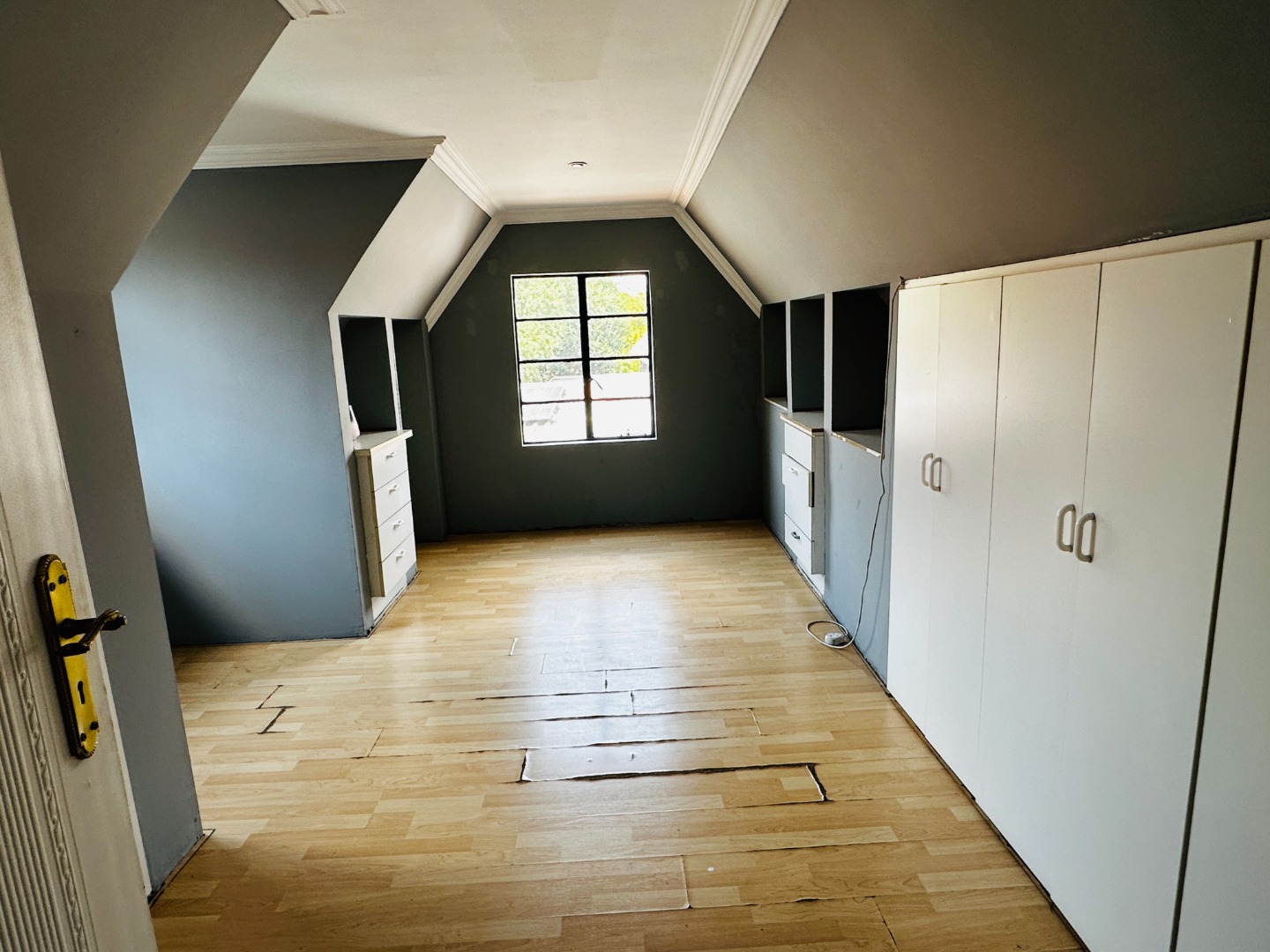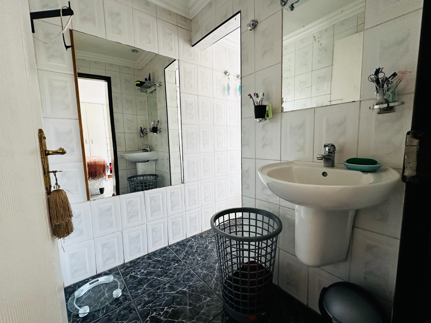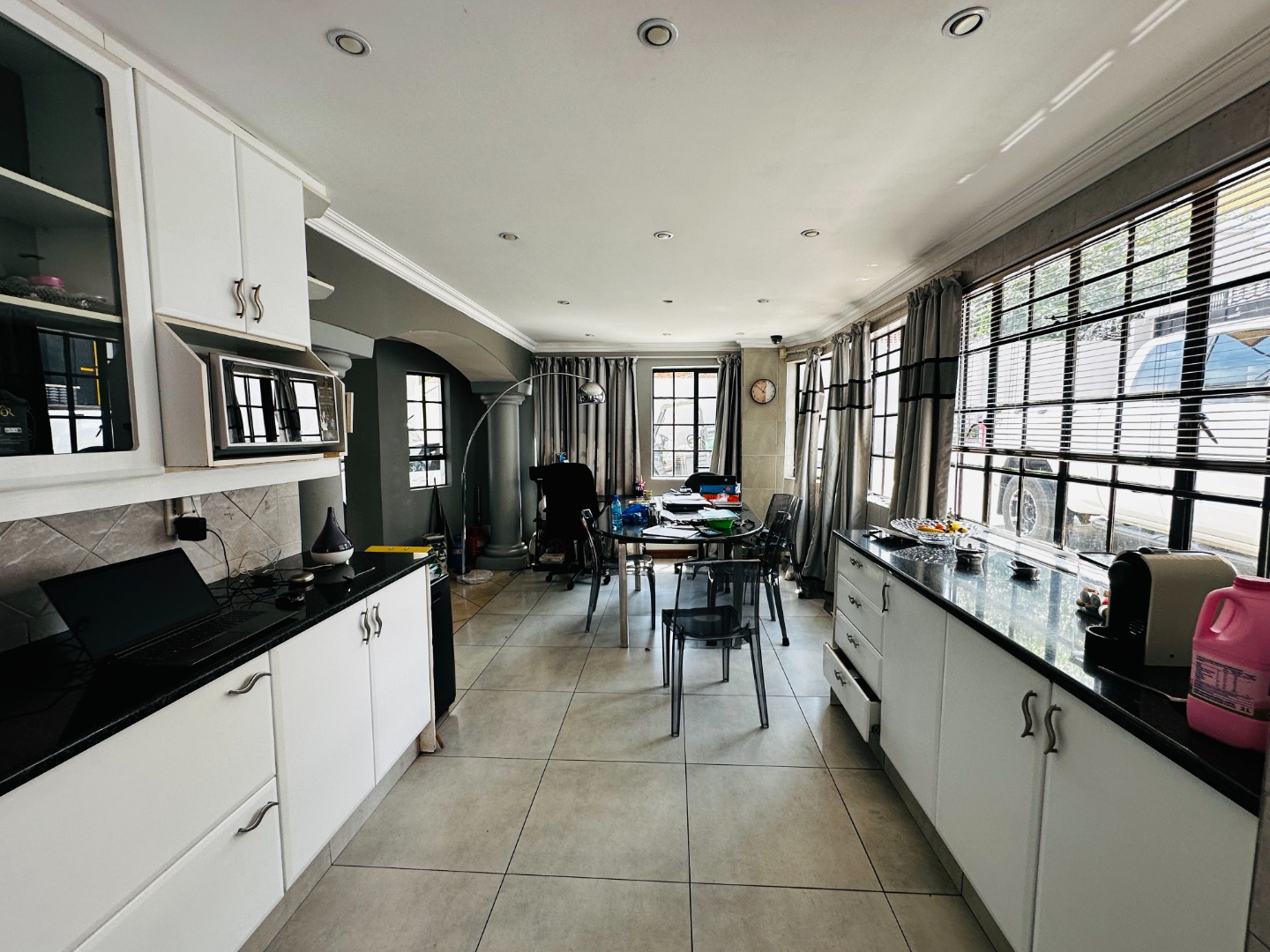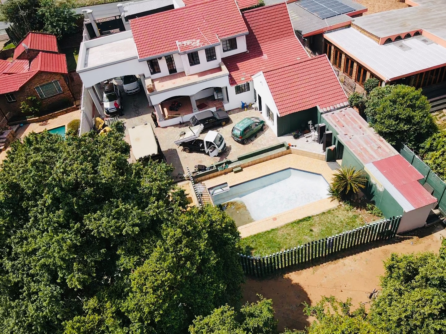 Presenting a substantial residential opportunity in the suburban enclave of South Crest, Alberton, this property offers a generous 421 sqm under roof on an expansive 1080 sqm erf. The multi-story residence, characterized by its white stucco facade and distinctive red tiled roofs, provides a robust foundation for a discerning buyer. While the exterior currently exhibits signs of deferred maintenance, including an unkempt garden and a drained swimming pool, these elements represent significant potential for enhancement and personalization. Internally, the home features five well-proportioned bedrooms and three bathrooms, two of which are en-suite, ensuring ample accommodation. The layout includes two lounges, a dedicated dining room, and a functional study, catering to diverse living requirements. The galley-style kitchen, equipped with white cabinetry and dark countertops, benefits from natural light and offers extensive storage, flowing seamlessly into the dining area. A separate laundry room adds to the practical amenities. Outdoor provisions are notable, with a large paved courtyard providing extensive parking for up to ten vehicles, complemented by two garages. The property is entirely walled, featuring burglar bars for enhanced security. While the swimming pool requires renovation, it presents an excellent opportunity to create a bespoke recreational space. The presence of a flatlet and domestic rooms further augments the property's versatility. Connectivity is assured with fibre infrastructure available. This property, with its considerable size and adaptable spaces, is ideally suited for a family seeking to establish a personalized residence within a well-regarded suburban setting. Key Features: * 5 Bedrooms, 3 Bathrooms (2 En-suite) * 2 Lounges, 1 Dining Room, Study * Galley Kitchen with Ample Storage * 1080 sqm Erf, 421 sqm Floor Size * Paved Courtyard with 10 Parking Spaces, 2 Garages * Swimming Pool (Requires Renovation) * Fibre Connectivity * Flatlet and Domestic Rooms * Totally Walled with Burglar Bars * Pet-Friendly Environment