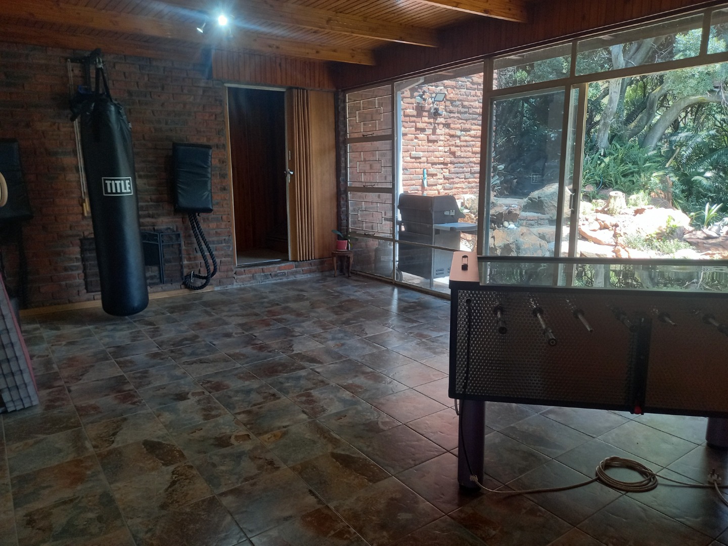 Discover this spacious 5-bedroom, 3-bathroom family home nestled in a peaceful cul-de-sac in the suburban heart of South Crest, Alberton. The property boasts a durable brick exterior, enhanced by security gates and mature trees providing natural shade, creating a welcoming first impression. Inside, the residence offers two generous lounges and a dedicated dining room, providing ample space for relaxation and entertaining. The main living area exudes rustic charm with exposed brick walls, a distinctive wooden slatted ceiling, and a cozy fireplace, complemented by practical tiled flooring. An additional versatile room, featuring exposed brick and wood beams, offers abundant natural light and garden views, ideal for a gym or entertainment space. The functional kitchen is equipped with white cabinetry, dark countertops, a double sink, and a modern stainless steel refrigerator, alongside an adjacent utility area. An open-plan dining area features a brick accent wall and a convenient kitchen pass-through, perfect for family gatherings. Set on a substantial 2074 sqm erf, the outdoor areas include a shaded, brick-paved patio with lush planting and natural rock features, offering a tranquil retreat. The property also includes a double garage, ensuring secure parking. South Crest is a well-established suburban area in Alberton, known for its family-friendly environment and convenient access to local amenities. Key Features: * 5 Bedrooms, 3 Bathrooms * 2 Lounges, 1 Dining Room * Double Garage * 2074 sqm Erf Size * Rustic Exposed Brick Interiors * Shaded Outdoor Patio * Cul-de-Sac Location * Durable Brick Exterior