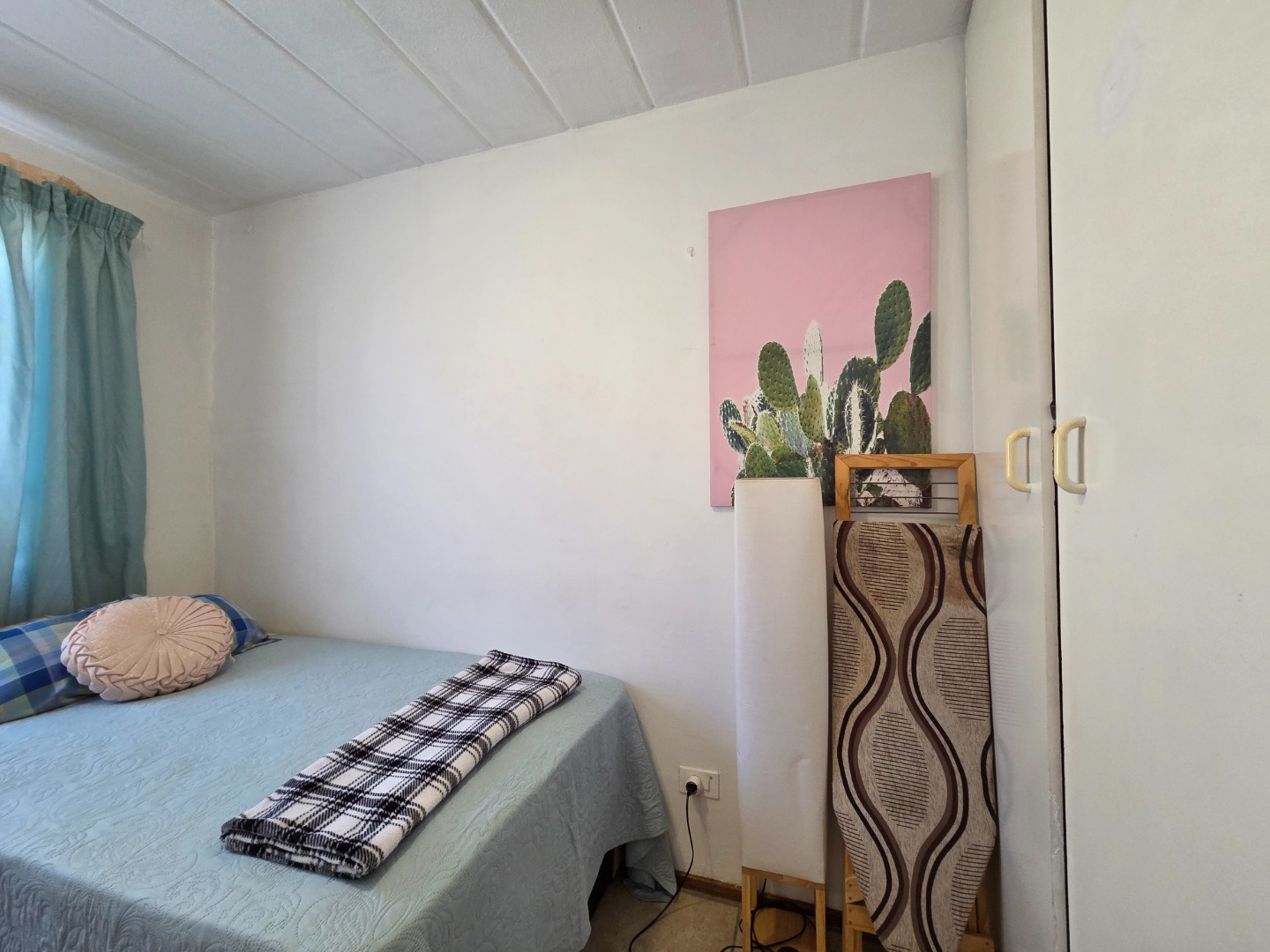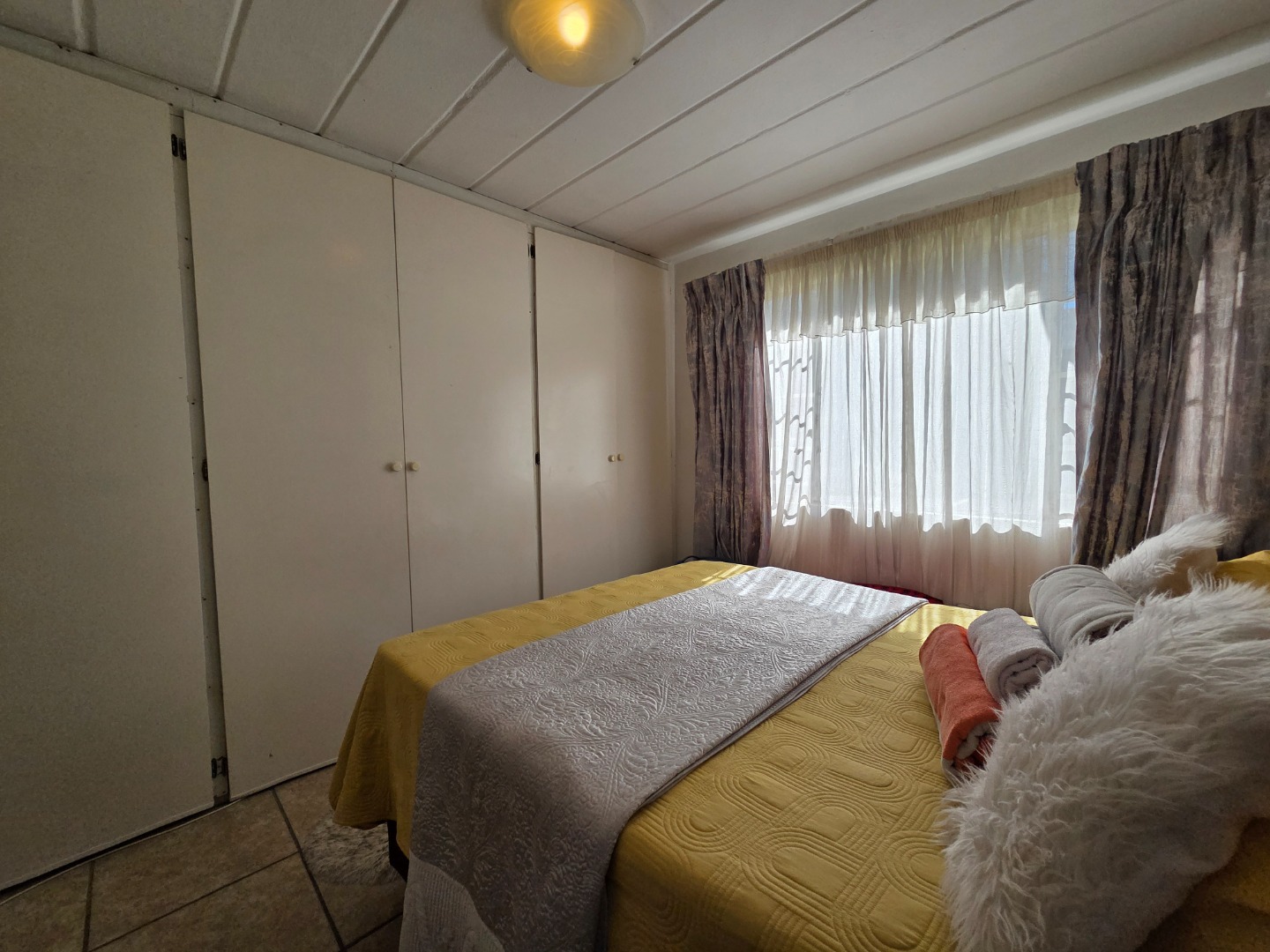 This lovely unit includes two generously sized bedrooms with built-in cupboards and tiled flooring. The modern, stylish bathroom is fitted with a bath, basin, and toilet.