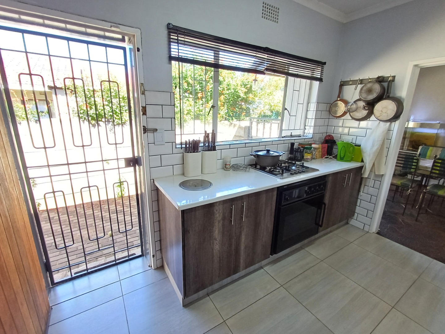 A dining area,