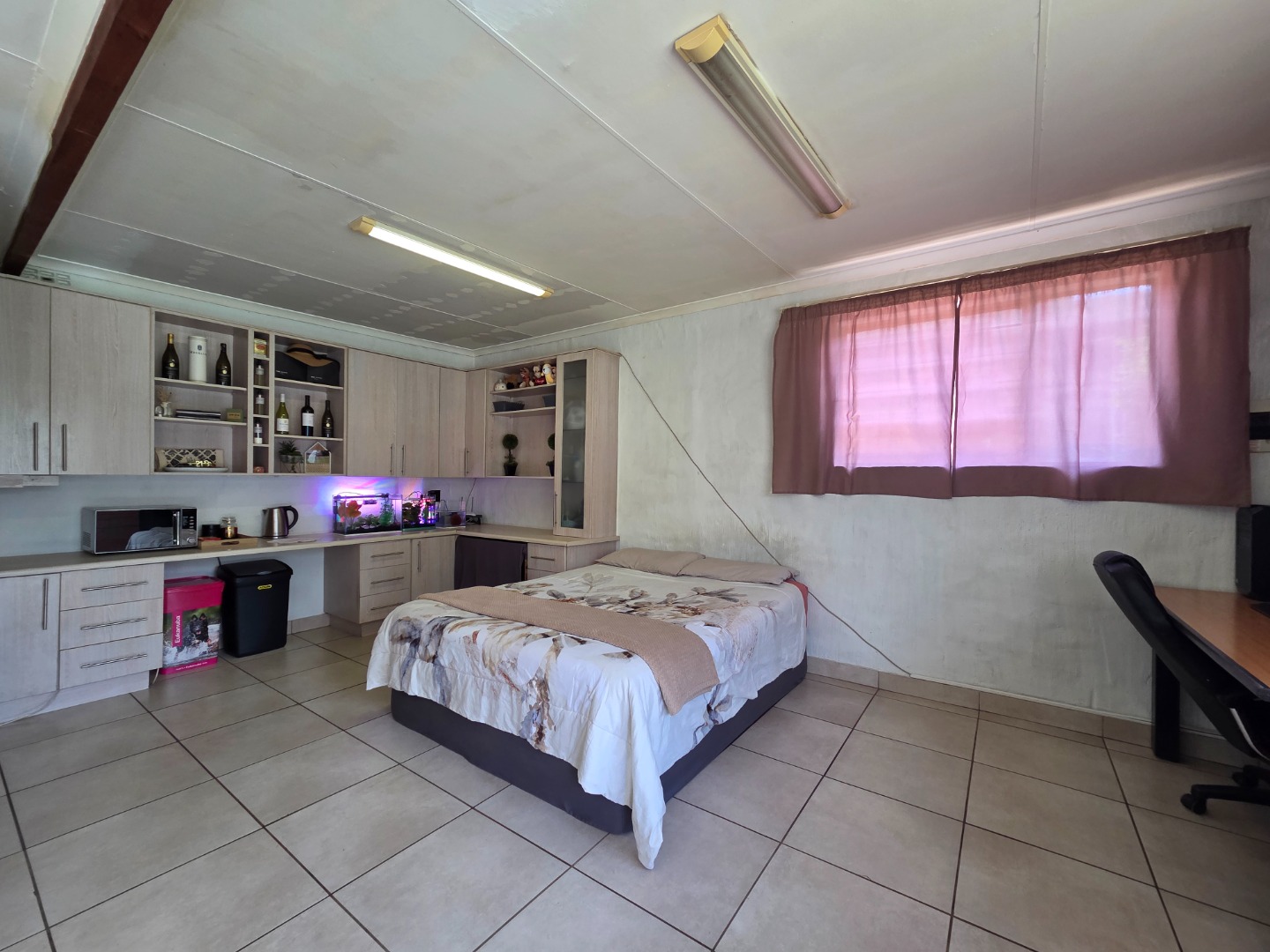 Parking is well catered for with a double garage, and the property is further enhanced by a self-contained bachelor flat. The flat offers an open-plan layout with a kitchen, lounge and bedroom area, as well as a bathroom fitted with a shower, toilet, and wash basin — ideal for extended family, guests, or rental income.