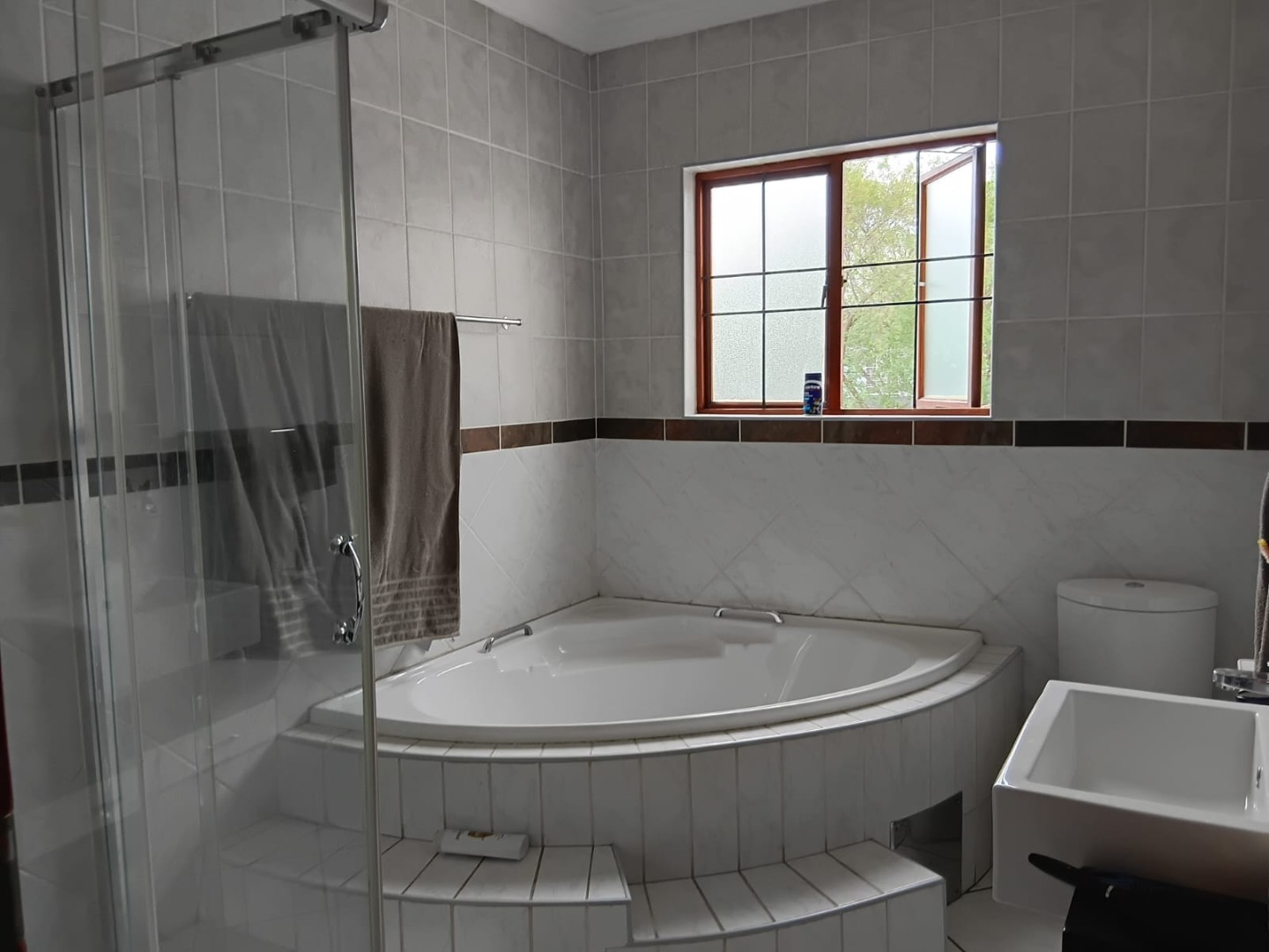 For those who love to entertain, the covered patio with built-in braai** opens onto a lush, expansive garden — a perfect setting for intimate gatherings or lavish weekend soirees. Enhancing the home’s appeal, a **water tank and solar setup add a touch of sustainability to its luxury.