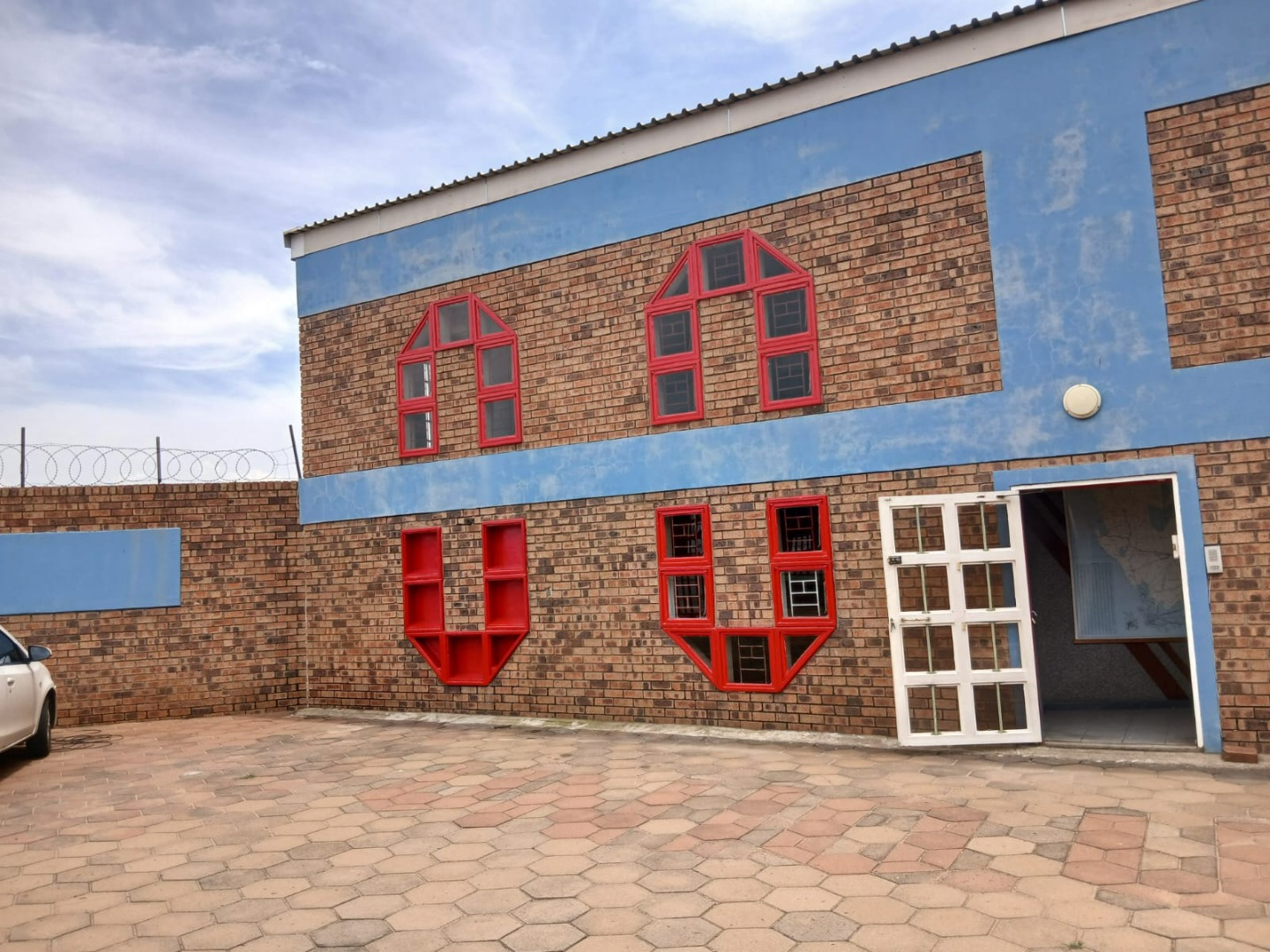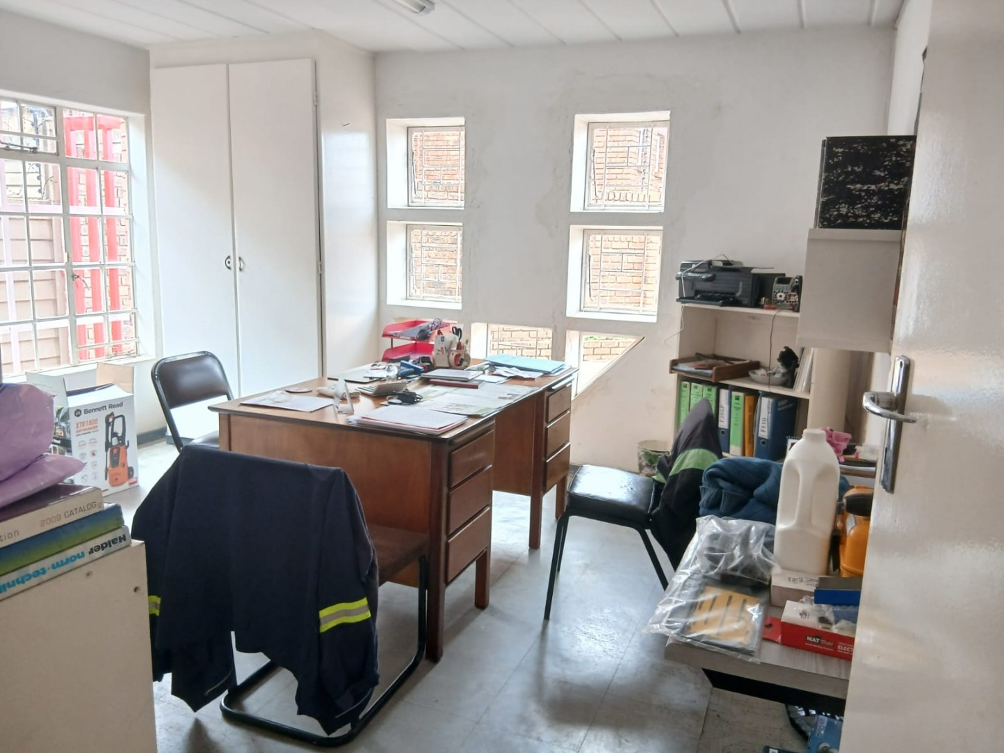 The property includes seven bathrooms and two kitchens, catering to a significant workforce. Security is enhanced by a secure red spiked metal gate and a brick perimeter wall, leading to a paved entrance with 15 dedicated parking bays. This well-located industrial asset presents a prime opportunity for businesses seeking a robust and functional base in a key commercial node.