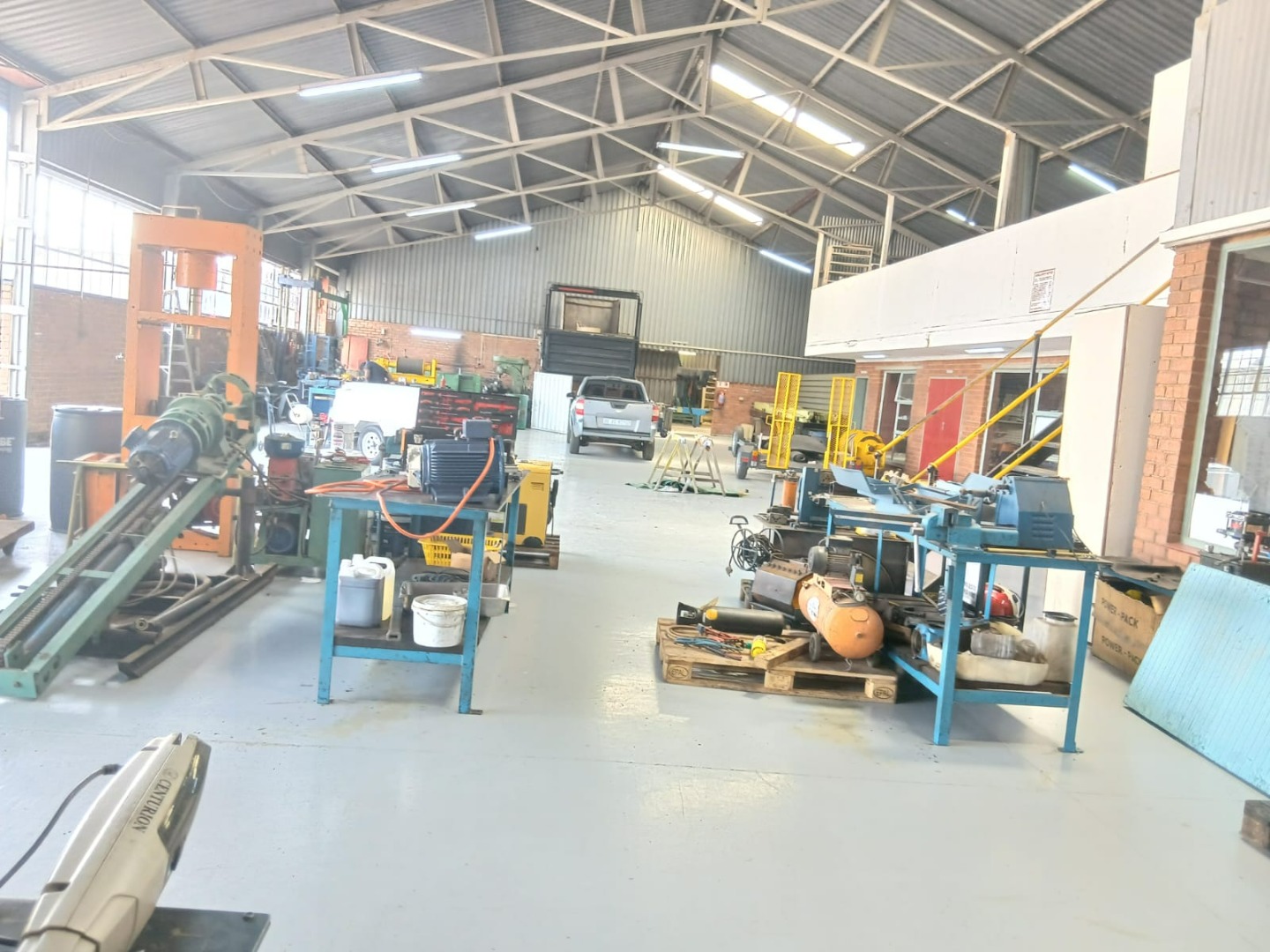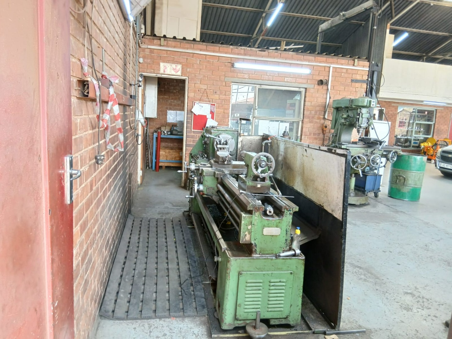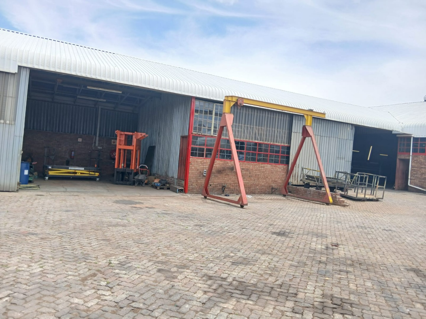 Discover a substantial industrial property for sale in Boksburg, South Africa. This versatile facility is perfectly suited for manufacturing, fabrication, or extensive storage operations. The layout features high ceilings with exposed trusses, durable concrete flooring, and an integrated office/mezzanine level, providing both operational space and administrative convenience. Equipped with a gantry crane and large access doors, it facilitates heavy-duty material handling and vehicle access.