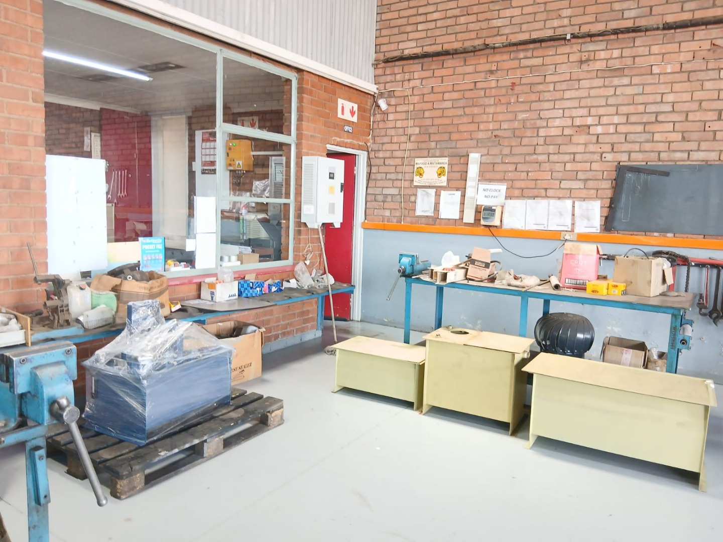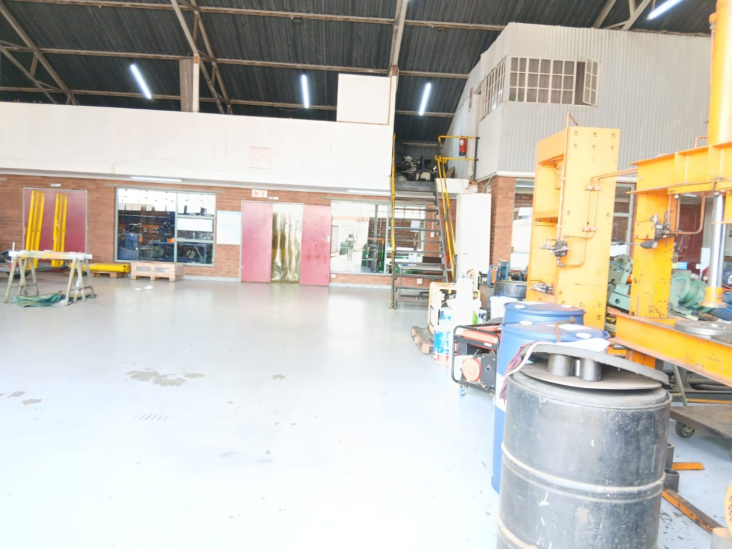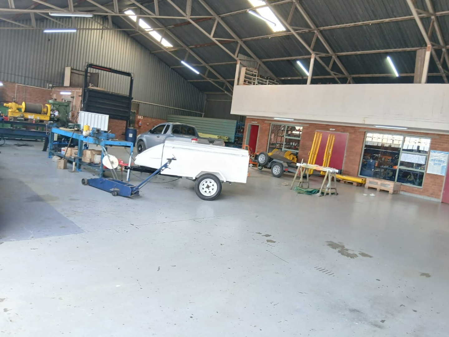 Discover a substantial industrial property for sale in Boksburg, South Africa. This versatile facility is perfectly suited for manufacturing, fabrication, or extensive storage operations. The layout features high ceilings with exposed trusses, durable concrete flooring, and an integrated office/mezzanine level, providing both operational space and administrative convenience. Equipped with a gantry crane and large access doors, it facilitates heavy-duty material handling and vehicle access.