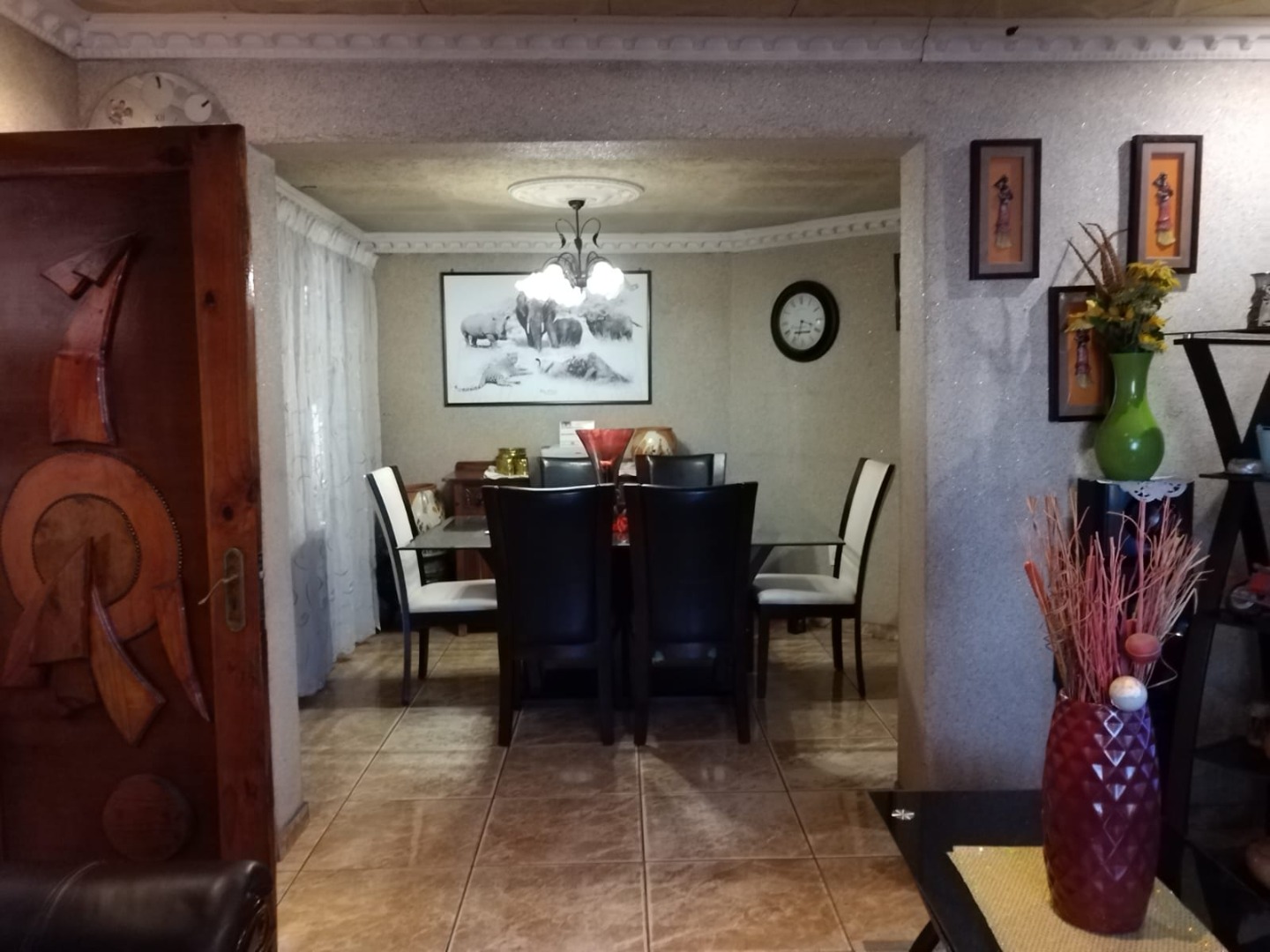 Discover this charming suburban residence located in Vosloorus, Boksburg, offering a blend of comfort and security. This property presents a solid foundation for family living, featuring a well-maintained tiled roof and a neatly paved front yard that enhances its kerb appeal. The exterior is fortified with a robust gate, security fence with spikes, and burglar bars on windows, ensuring peace of mind for residents. Step inside to find a welcoming interior designed for practical living. The home boasts a spacious lounge and a dedicated dining room, both featuring durable tiled flooring and decorative ceilings that add character. Large windows allow for ample natural light, creating bright and inviting spaces perfect for relaxation and entertaining. The functional kitchen is equipped with ample cabinet storage, dark countertops, and integrated appliances, including an oven, stovetop, and range hood, catering to everyday culinary needs. Accommodation comprises three comfortable bedrooms, all fitted with tiled floors and offering generous space. The property includes two bathrooms, with one being an en-suite, providing convenience and privacy. While some interior elements present an opportunity for modern updates, the existing layout offers a versatile canvas for personalization. Further enhancing this home's appeal is a single garage, providing secure parking and additional storage. The property's emphasis on security, combined with its practical layout and suburban setting, makes it an attractive option for those seeking a secure and adaptable living space in Boksburg. Key Features: * 3 Bedrooms, 2 Bathrooms (1 En-suite) * Spacious Lounge and Dining Room * Functional Kitchen with Ample Storage * Durable Tiled Flooring Throughout * Single Garage * Robust Security Features (Gate, Fence, Burglar Bars) * Paved Front Yard * Erf Size: 273 sqm * Pet-Friendly