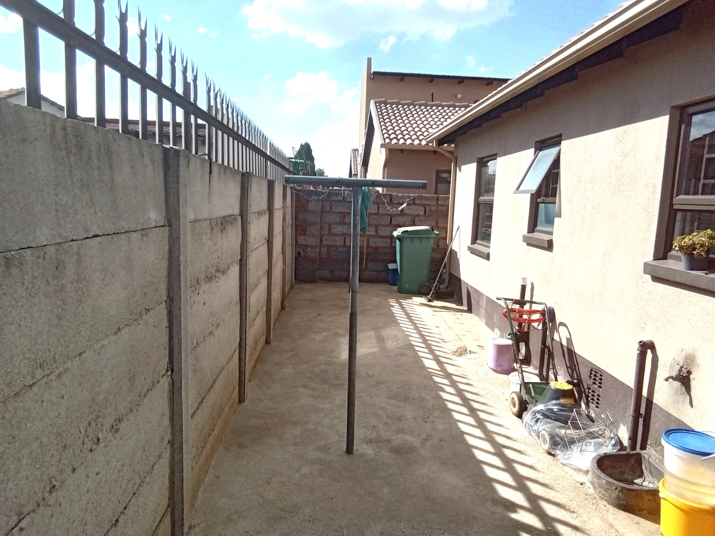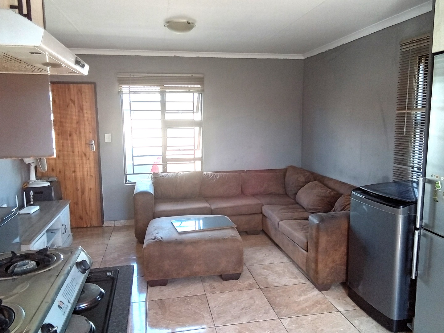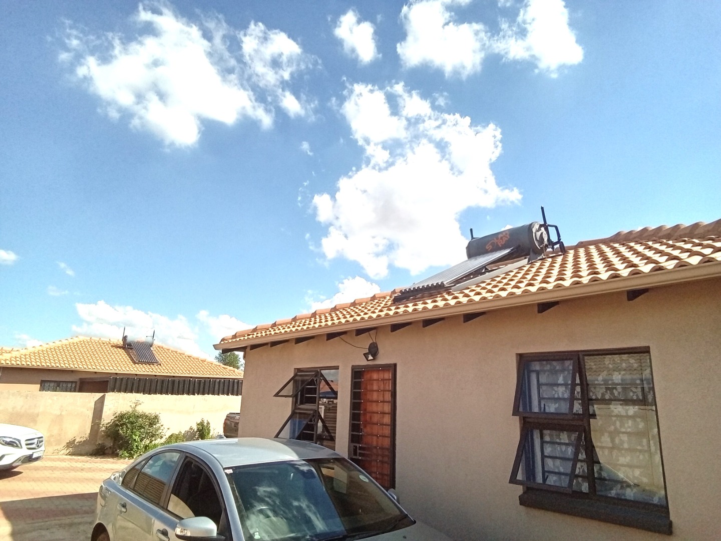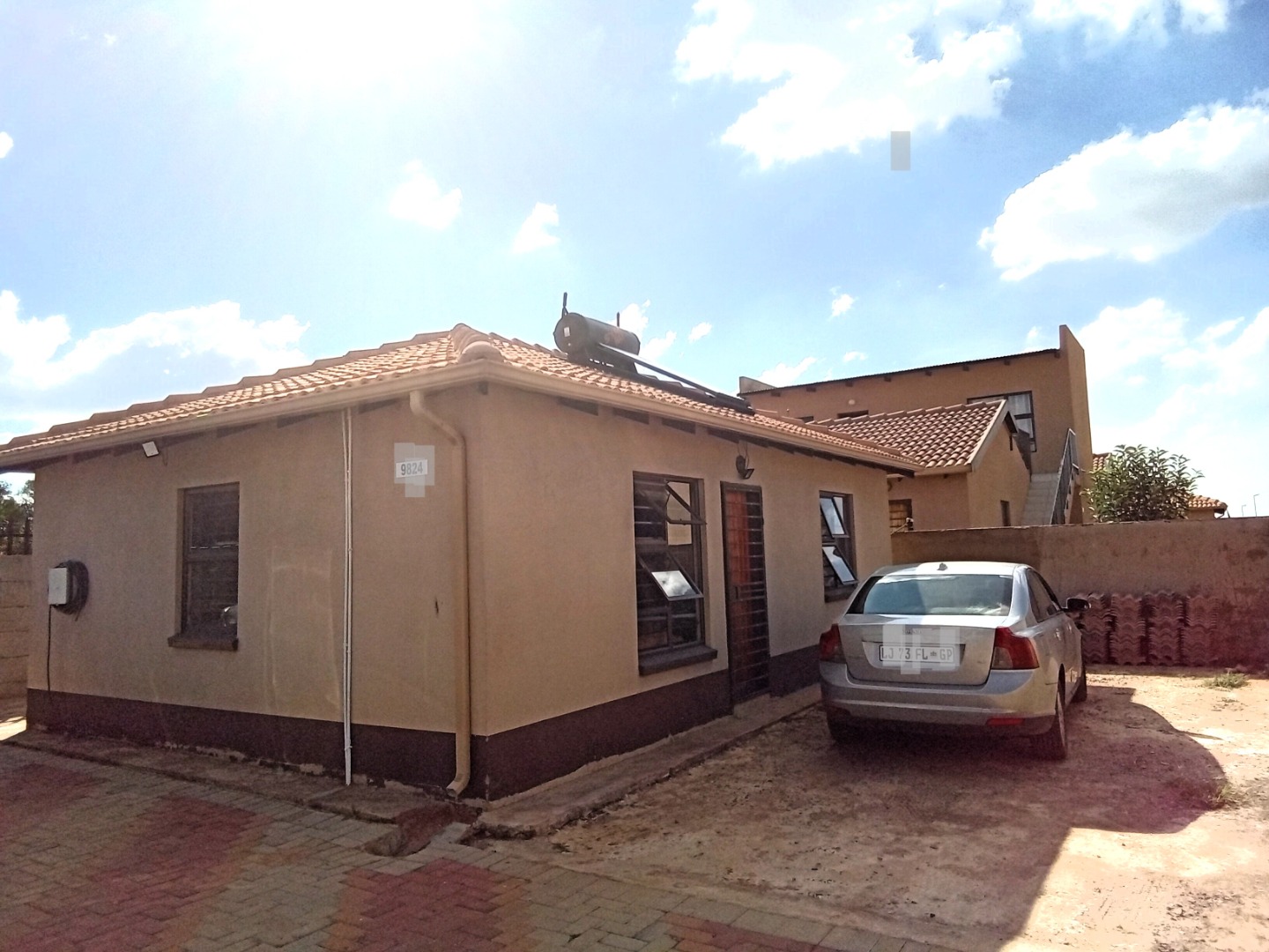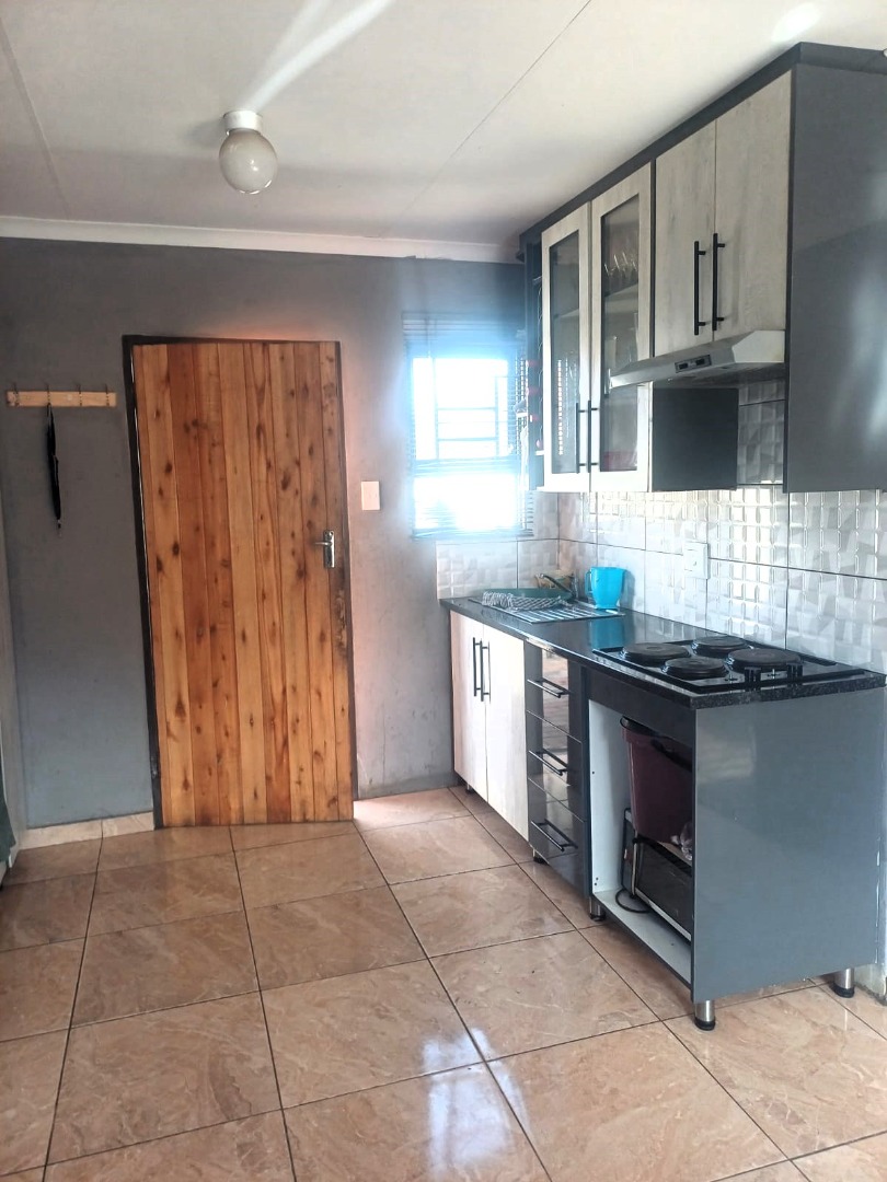 This compact, single-story house in Windmill Park, Boksburg, presents a neat kerb appeal with its light brown exterior and tiled roof. Situated on a 286 sqm erf, the property features a multi-colored brick paved driveway, offering ample parking, alongside a small, well-maintained lawn. Security is enhanced by a concrete boundary wall and additional fencing. An energy-efficient solar water heater is also installed. Step inside to discover a thoughtfully designed open-plan living and kitchen area. The modern kitchen boasts contemporary light-colored cabinetry with dark handles, sleek dark countertops, and a stylish grey tiled backsplash, providing ample storage. It is equipped with a large refrigerator, a built-in hob, and a range hood. The comfortable living space features tiled flooring and a wall-mounted TV. The home comprises two comfortable bedrooms, offering private retreats. A well-appointed bathroom serves the household, designed for functionality. The practical outdoor space includes extensive paved areas accommodating up to five vehicles, complemented by a small, private lawn. The property is fully enclosed by secure perimeter walls and fencing, ensuring a safe environment. The solar water heater contributes to sustainable living. Located in the metropolitan and suburban area of Windmill Park, this property offers convenient access to local amenities and transport routes, ideal for those seeking a comfortable and secure home. Key Features: * Two comfortable bedrooms * One functional bathroom * Modern open-plan kitchen * Spacious lounge area * Ample parking for 5 vehicles * Secure perimeter fencing * Energy-efficient solar water heater * Paved driveway and small lawn * Located in Windmill Park, Boksburg