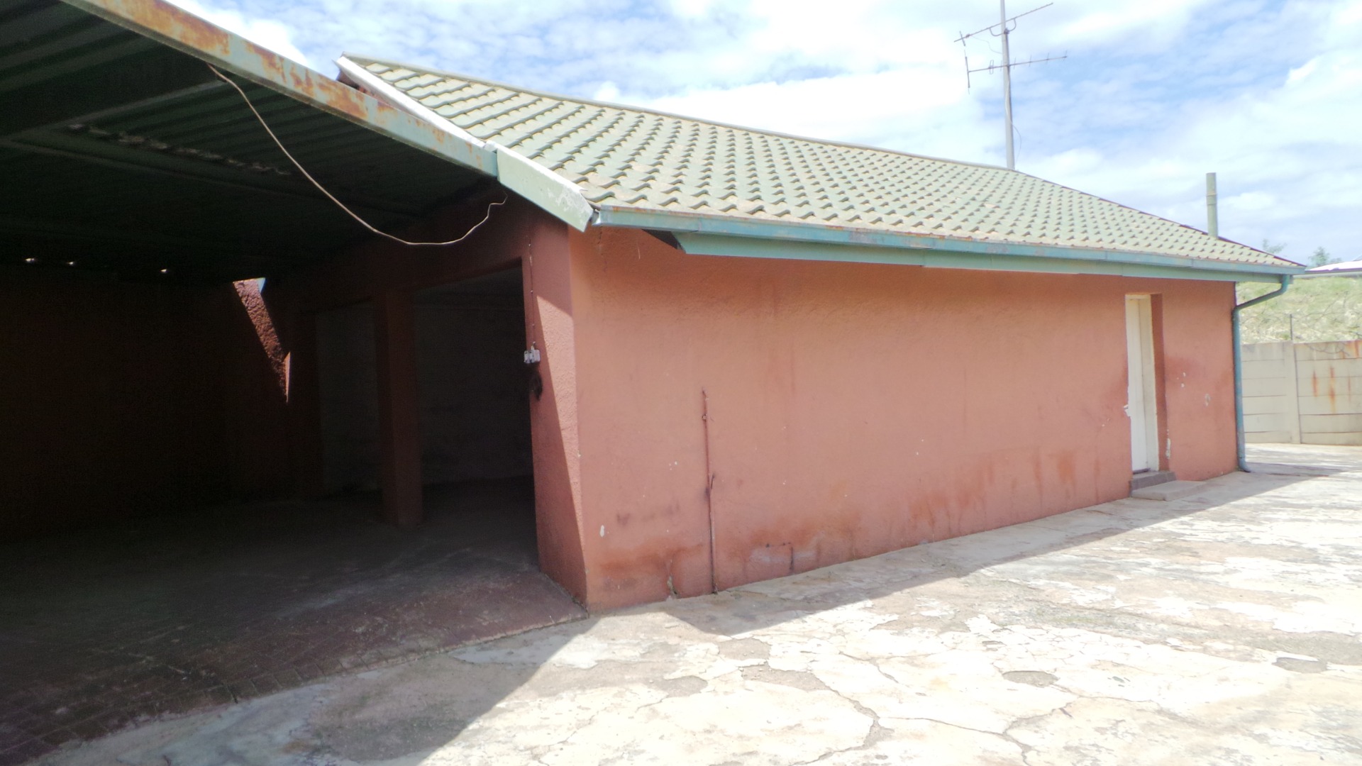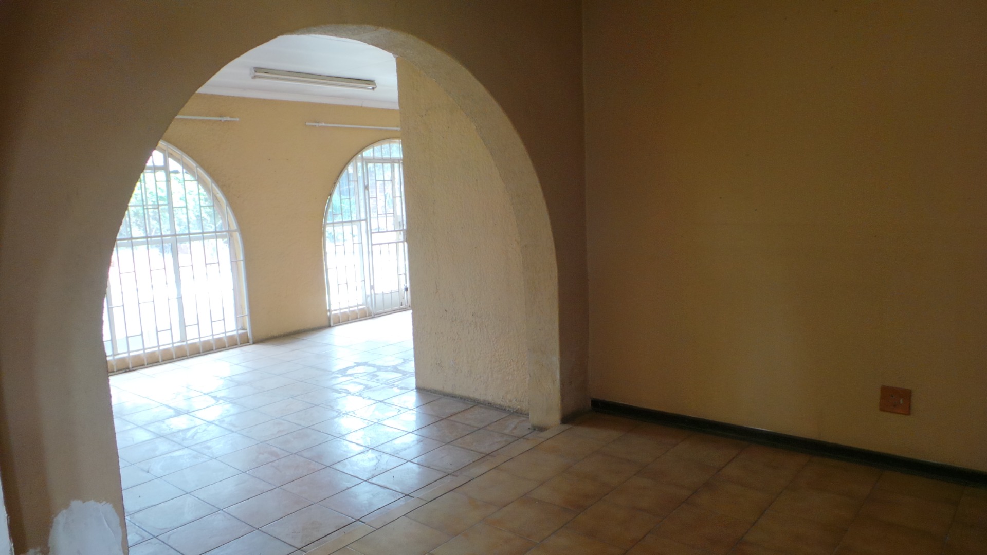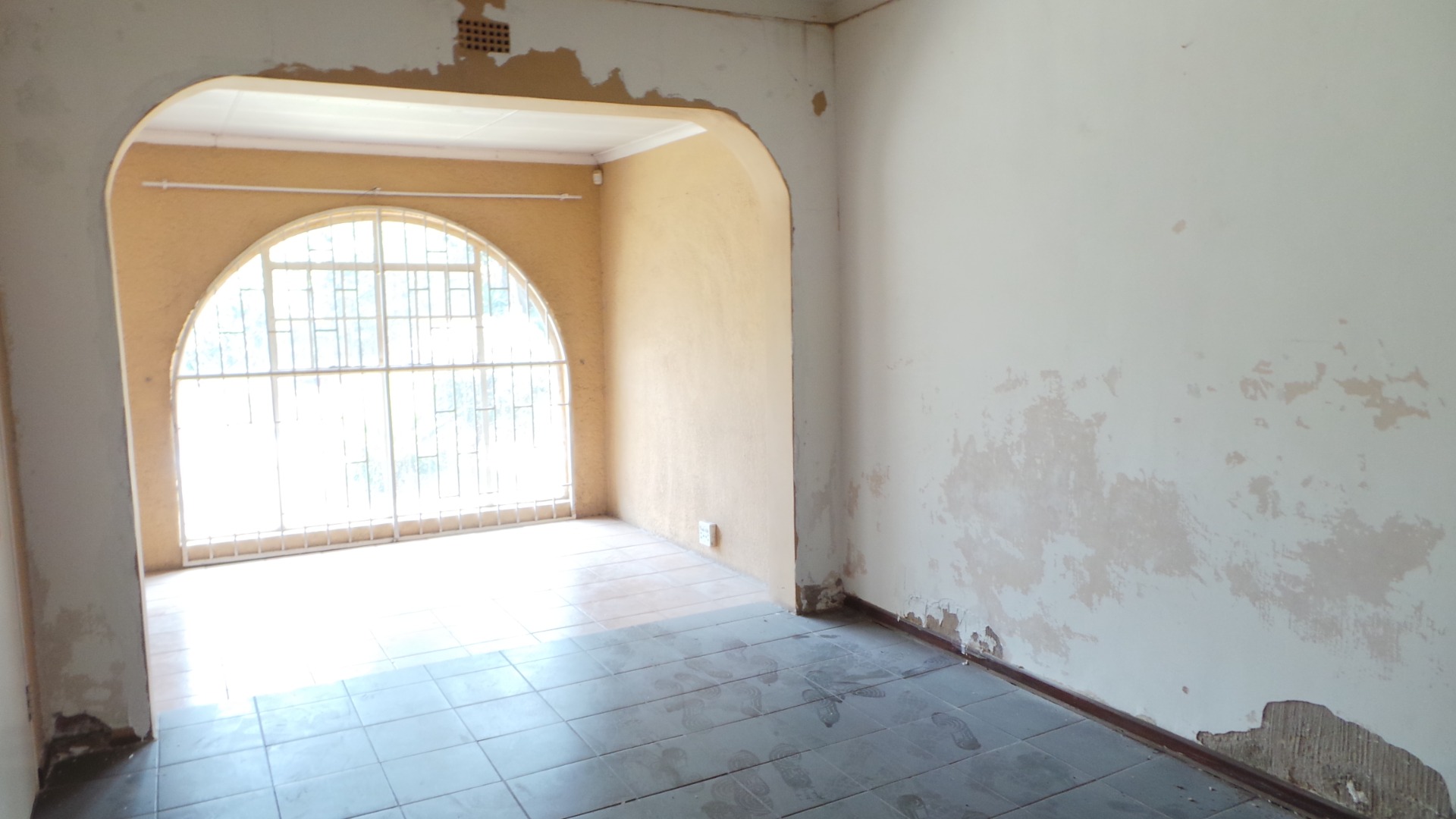 Outdoor amenities include a thatched lapa, a swimming pool, huge undercover workshop, and a garden area, all awaiting revitalization to create an ideal entertainment space. A double garage provides secure parking, complemented by staff quarters and a laundry room. Security features include burglar bars and an access gate, with the property being totally walled. Located in a suburban setting, this home is perfect for those seeking a project to transform a well-located property into their dream residence.