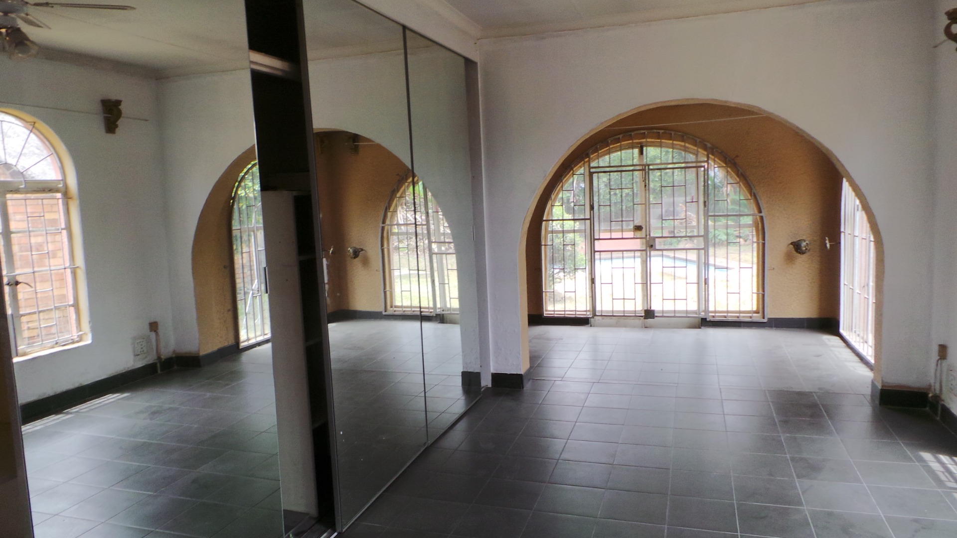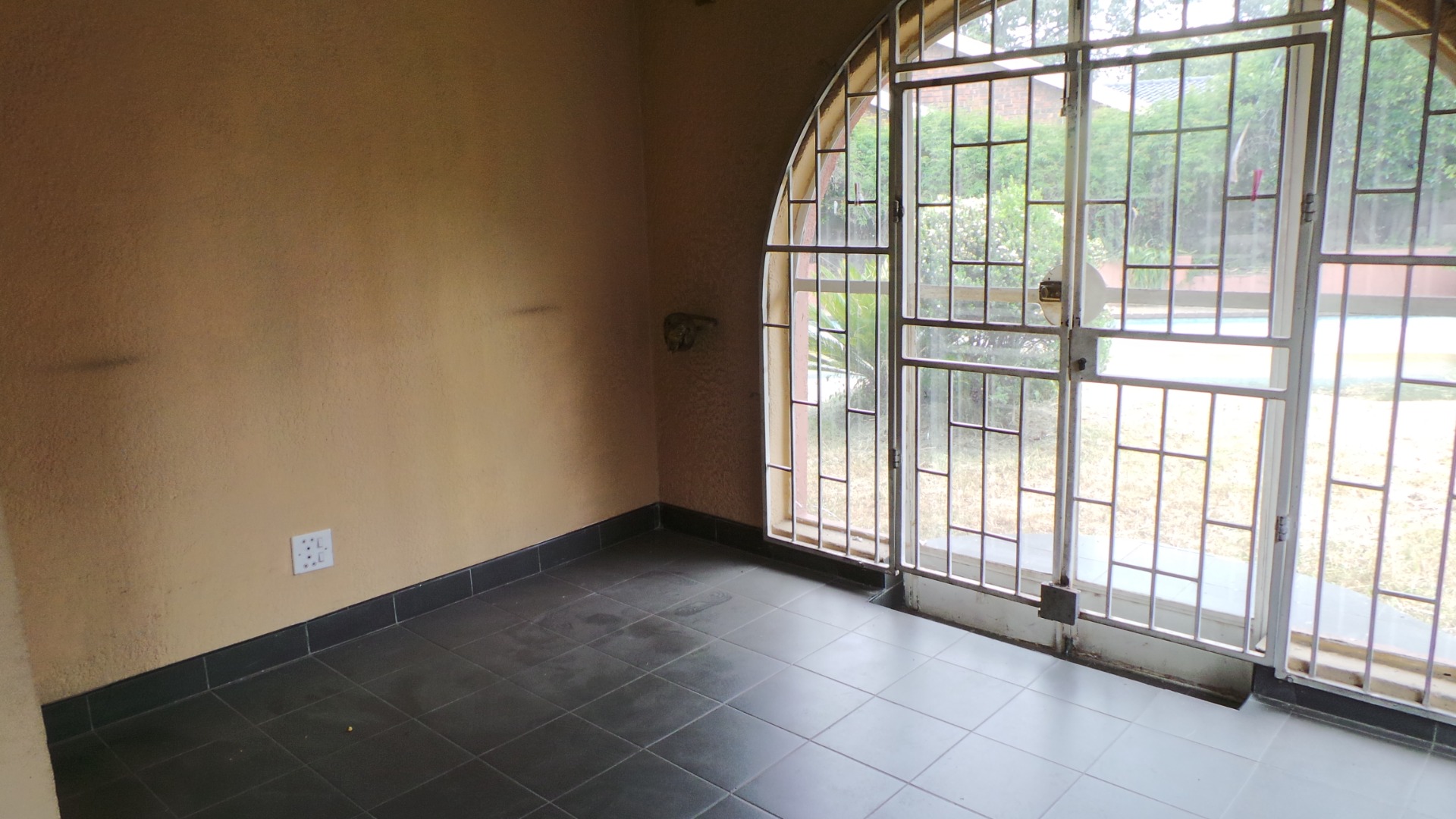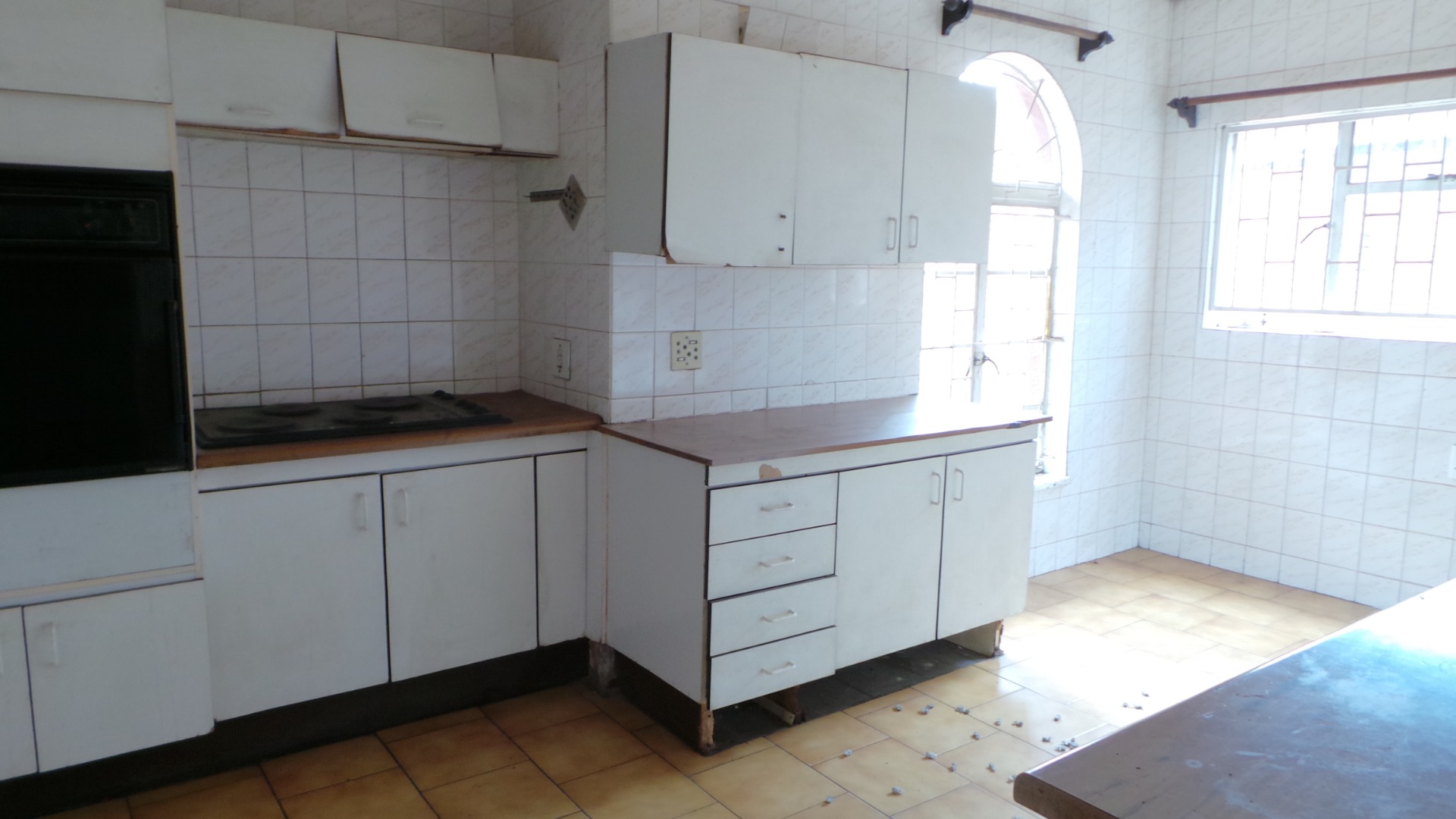Outdoor amenities include a thatched lapa, a swimming pool, huge undercover workshop, and a garden area, all awaiting revitalization to create an ideal entertainment space. A double garage provides secure parking, complemented by staff quarters and a laundry room. Security features include burglar bars and an access gate, with the property being totally walled. Located in a suburban setting, this home is perfect for those seeking a project to transform a well-located property into their dream residence.