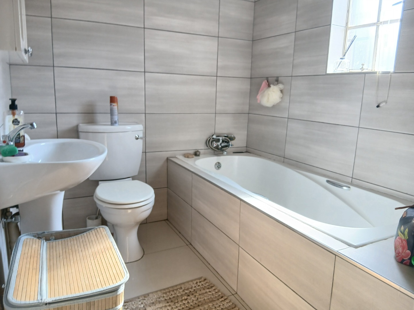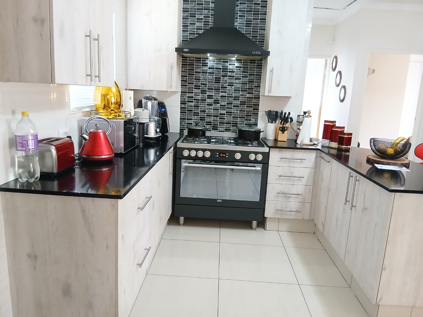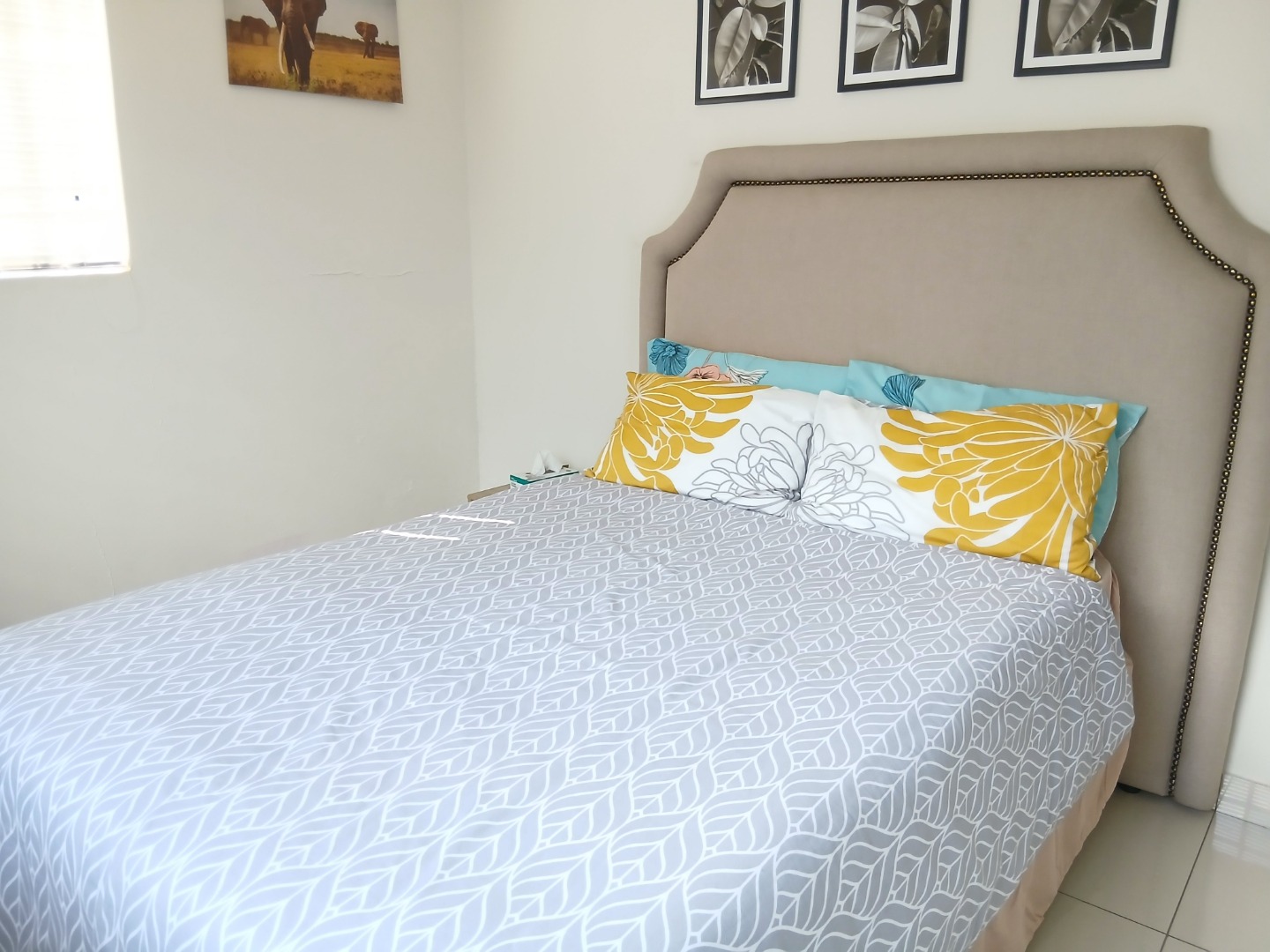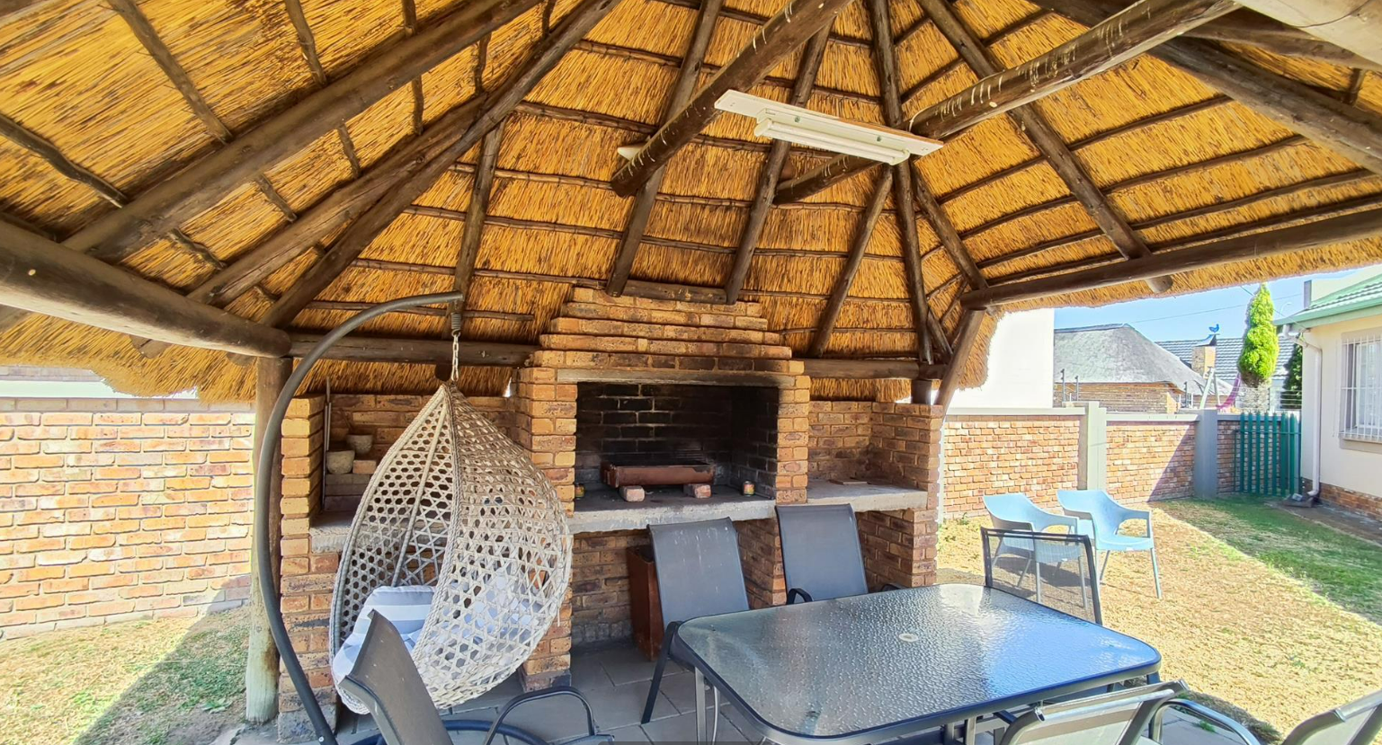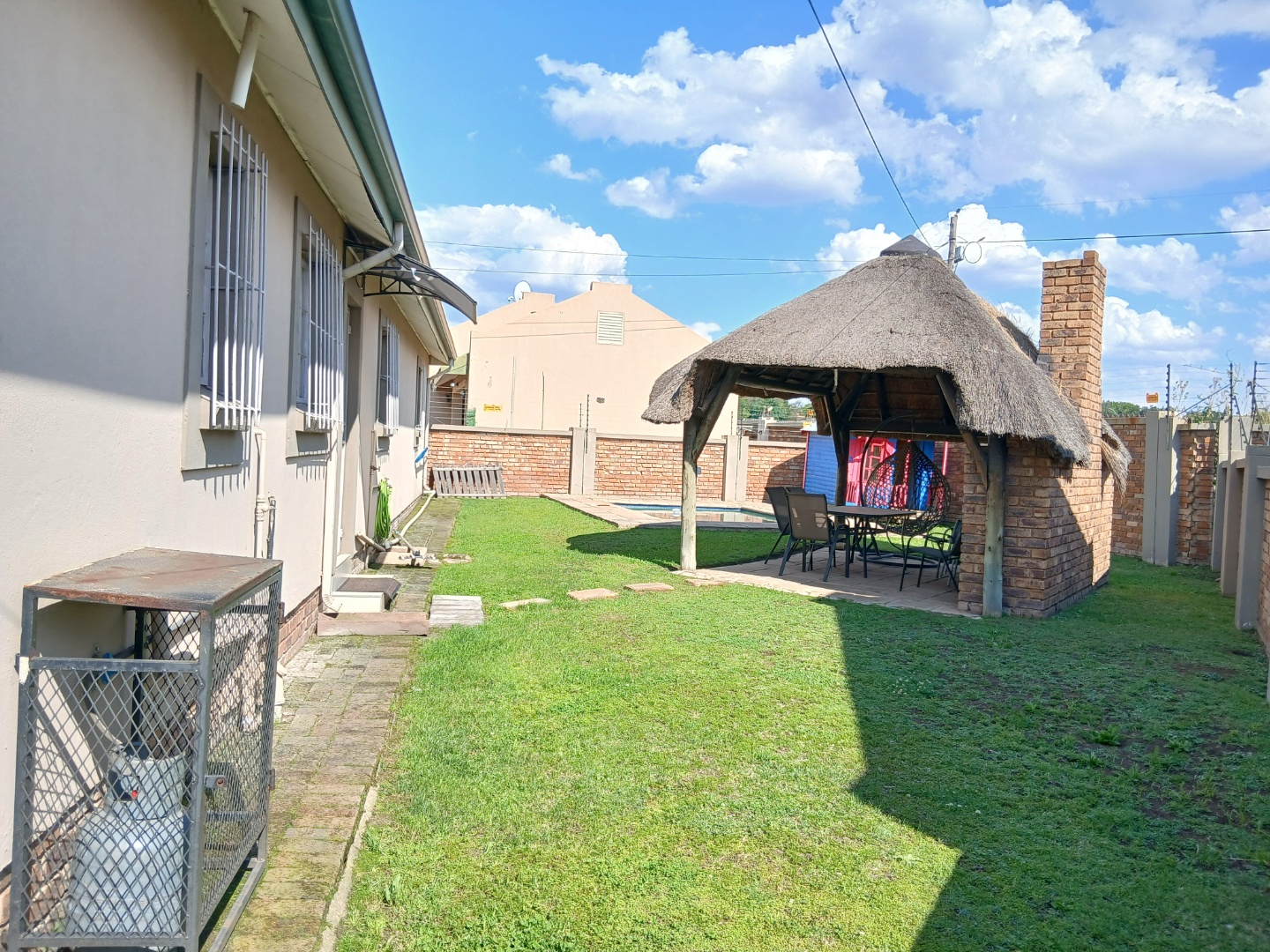 Accommodation comprises three well-proportioned bedrooms and two bathrooms, including a private en-suite, providing comfort and privacy. Externally, the property offers a covered patio overlooking a swimming pool and a well-maintained garden, complemented by a lapa, paving, and a wendy house. Practical amenities include a double garage with additional parking. Security is paramount, with an alarm system, burglar bars, security gates, and 24-hour security within the gated community, ensuring peace of mind for residents and their pets.