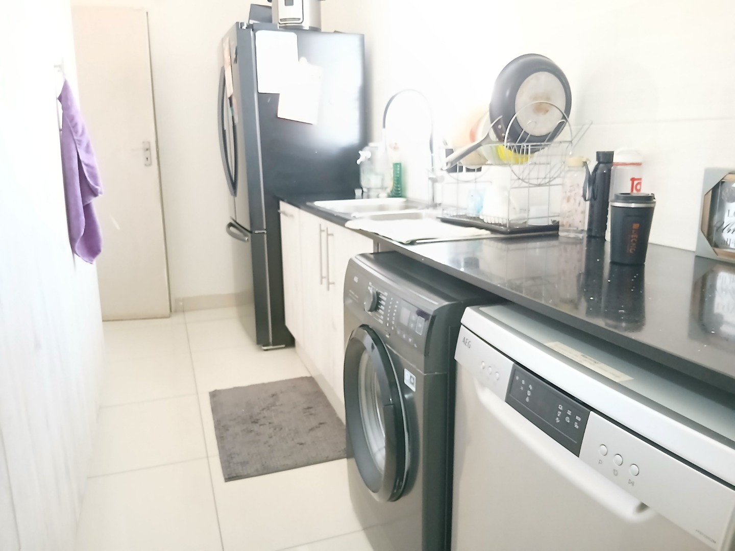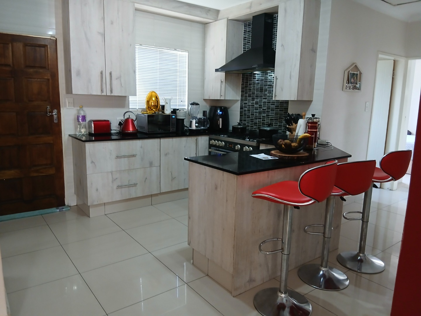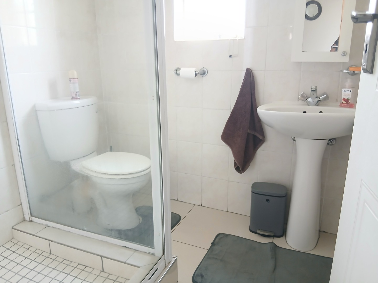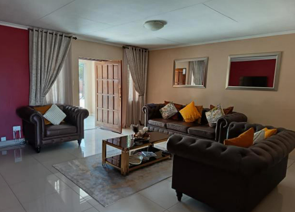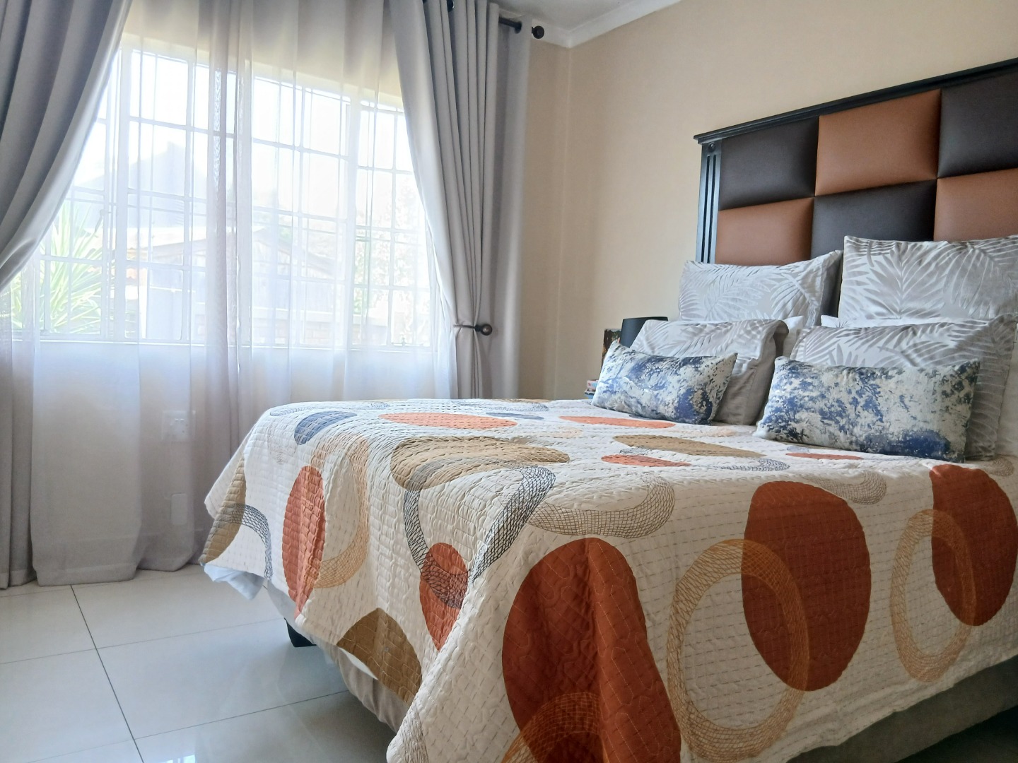 Accommodation comprises three well-proportioned bedrooms and two bathrooms, including a private en-suite, providing comfort and privacy. Externally, the property offers a covered patio overlooking a swimming pool and a well-maintained garden, complemented by a lapa, paving, and a wendy house. Practical amenities include a double garage with additional parking. Security is paramount, with an alarm system, burglar bars, security gates, and 24-hour security within the gated community, ensuring peace of mind for residents and their pets.