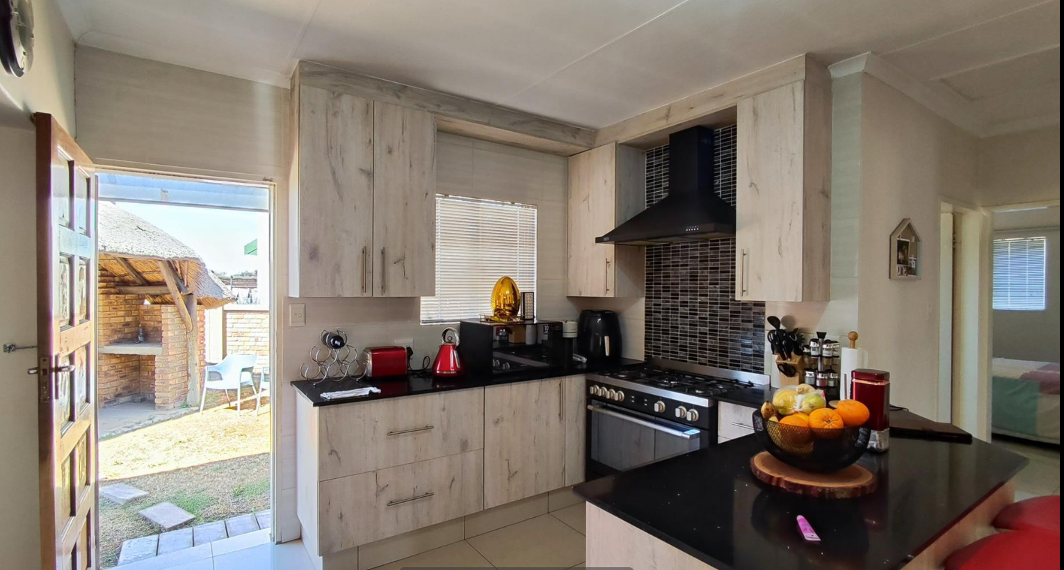 Situated within a secure gated community in Dalpark Ext 1, Brakpan, this residence presents an inviting kerb appeal with a modern wooden front door and well-maintained exterior.