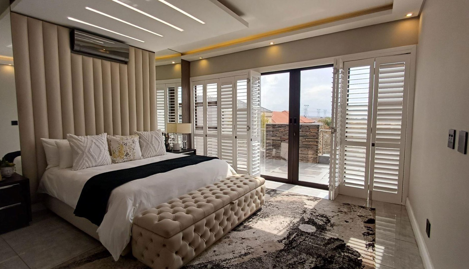 Residing in Blue Valley Golf Estate means embracing a lifestyle of privilege and security. This gated community offers 24-hour security and access control, providing peace of mind. Residents benefit from exclusive access to a championship golf course, a well-appointed clubhouse, and tennis courts. The home is further equipped with modern conveniences such as fibre connectivity, solar panels, and a battery inverter, ensuring sustainable and uninterrupted luxury. This suburban gem in Centurion offers a harmonious blend of sophisticated design, unparalleled comfort, and secure estate living.