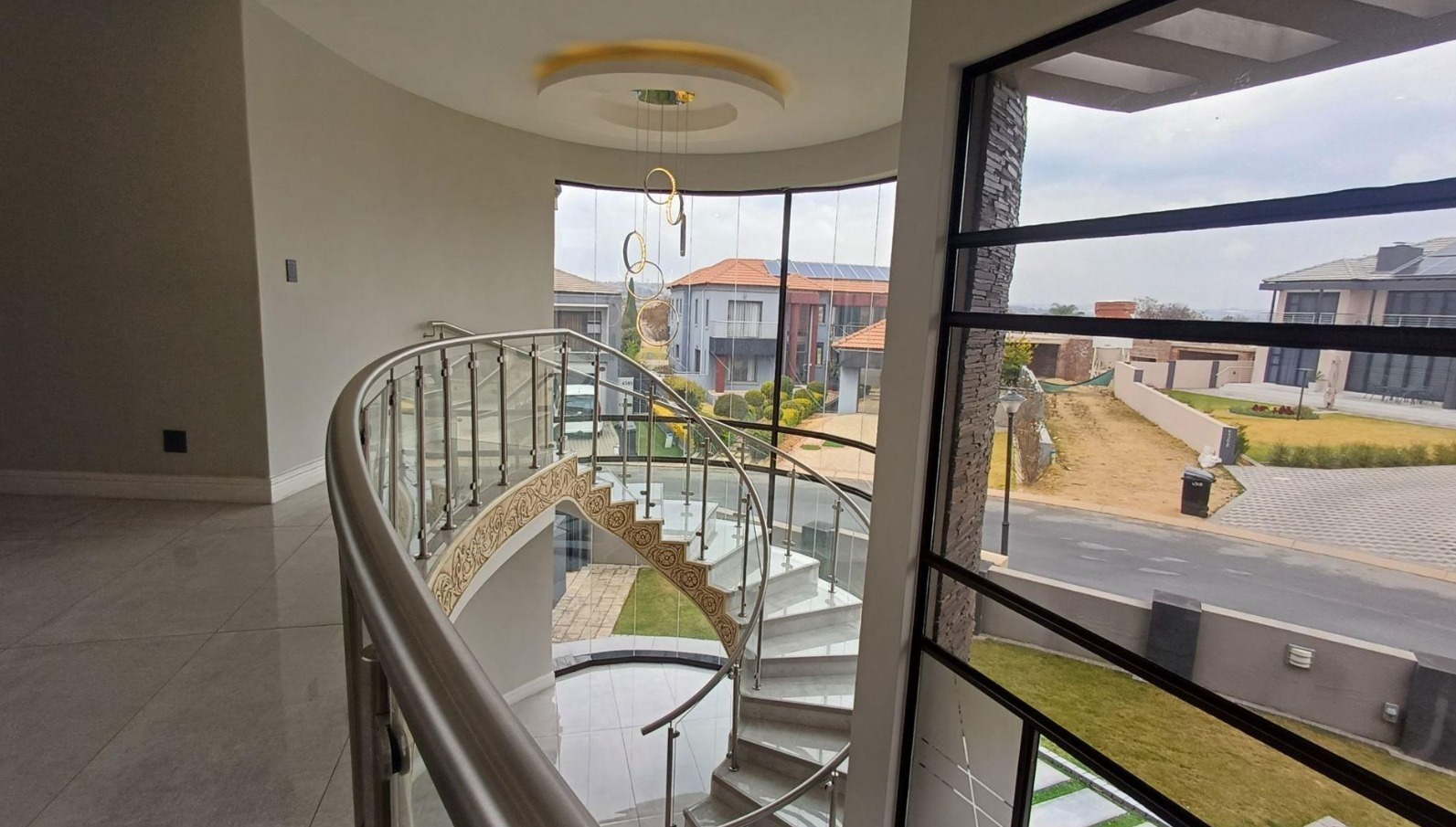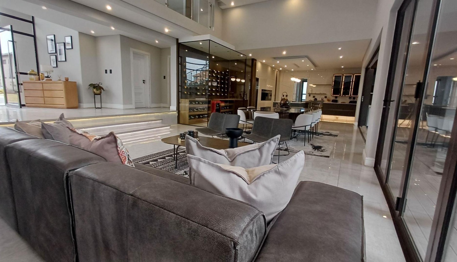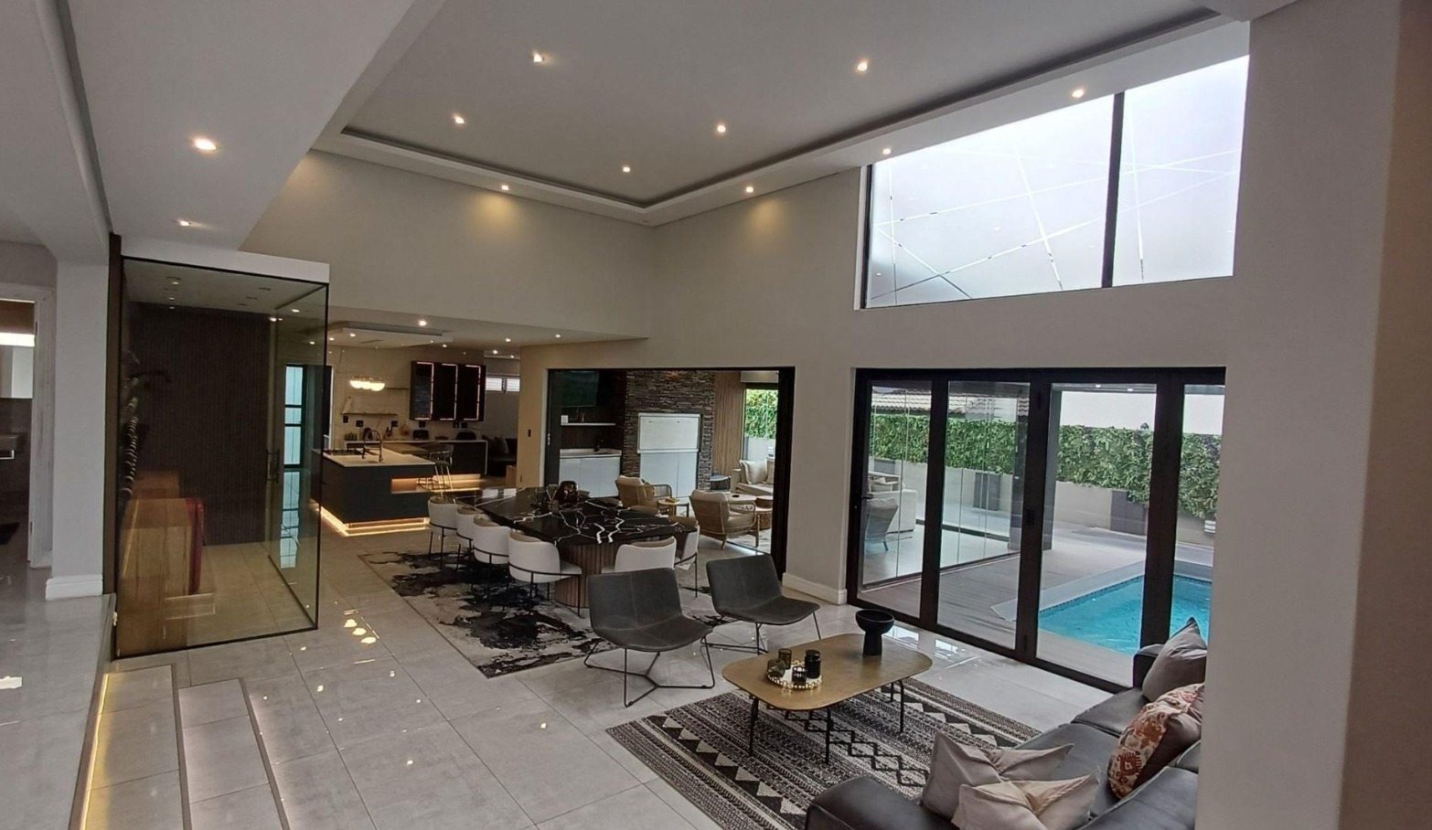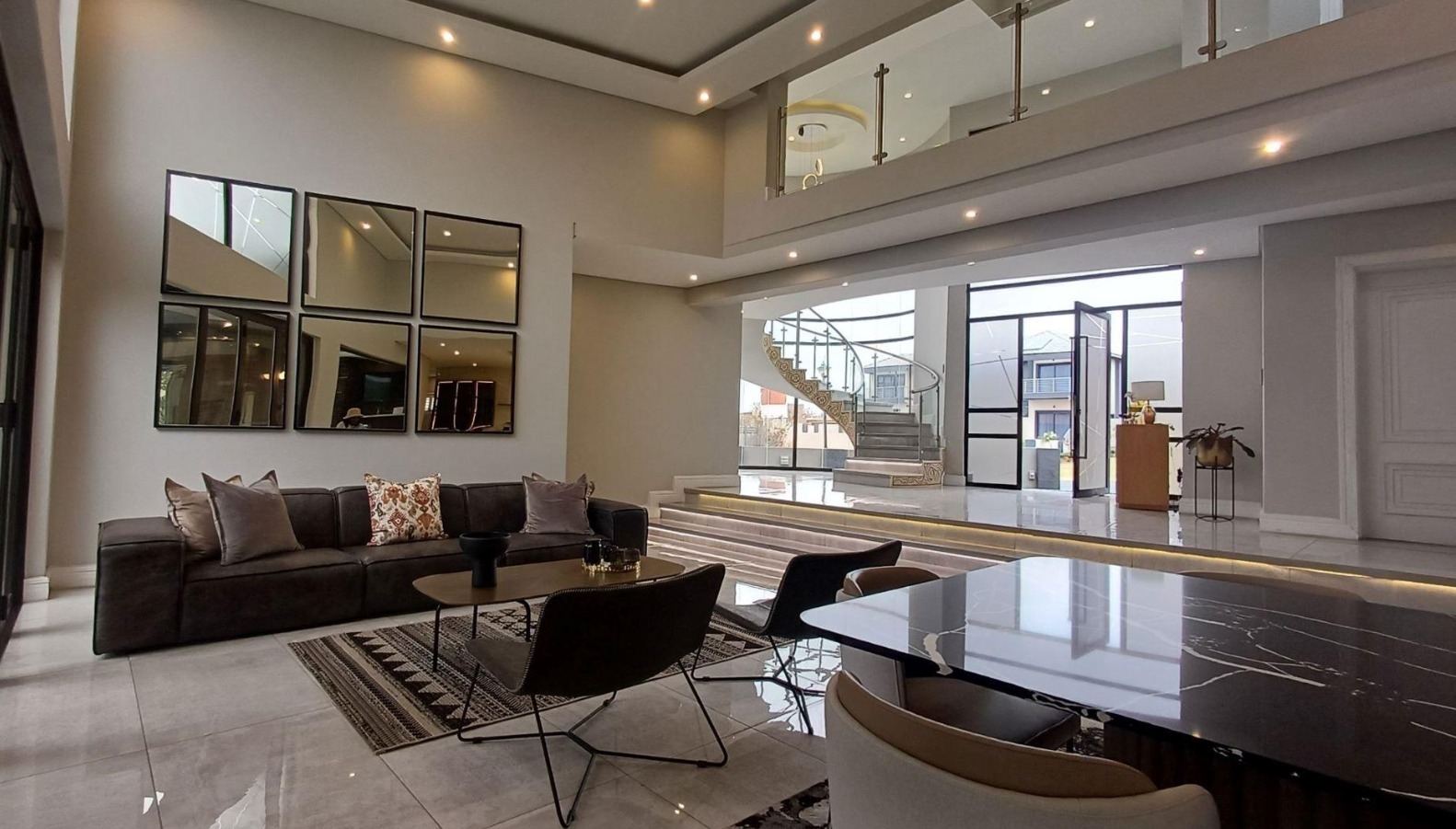 Nestled within the prestigious Blue Valley Golf Estate in Centurion, this architectural masterpiece redefines luxury living. From the moment of arrival, the contemporary multi-story residence captivates with its sleek design, extensive glass facades, and impeccable kerb appeal, promising an unparalleled lifestyle.