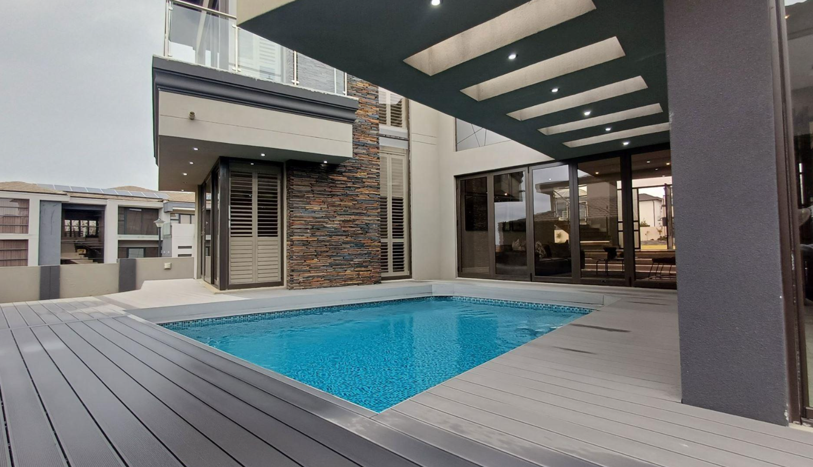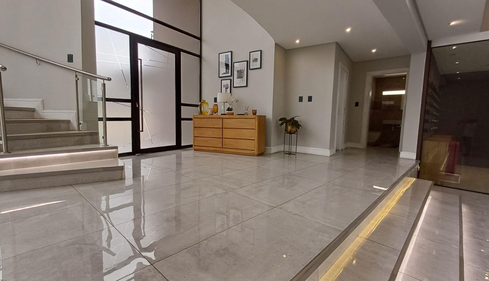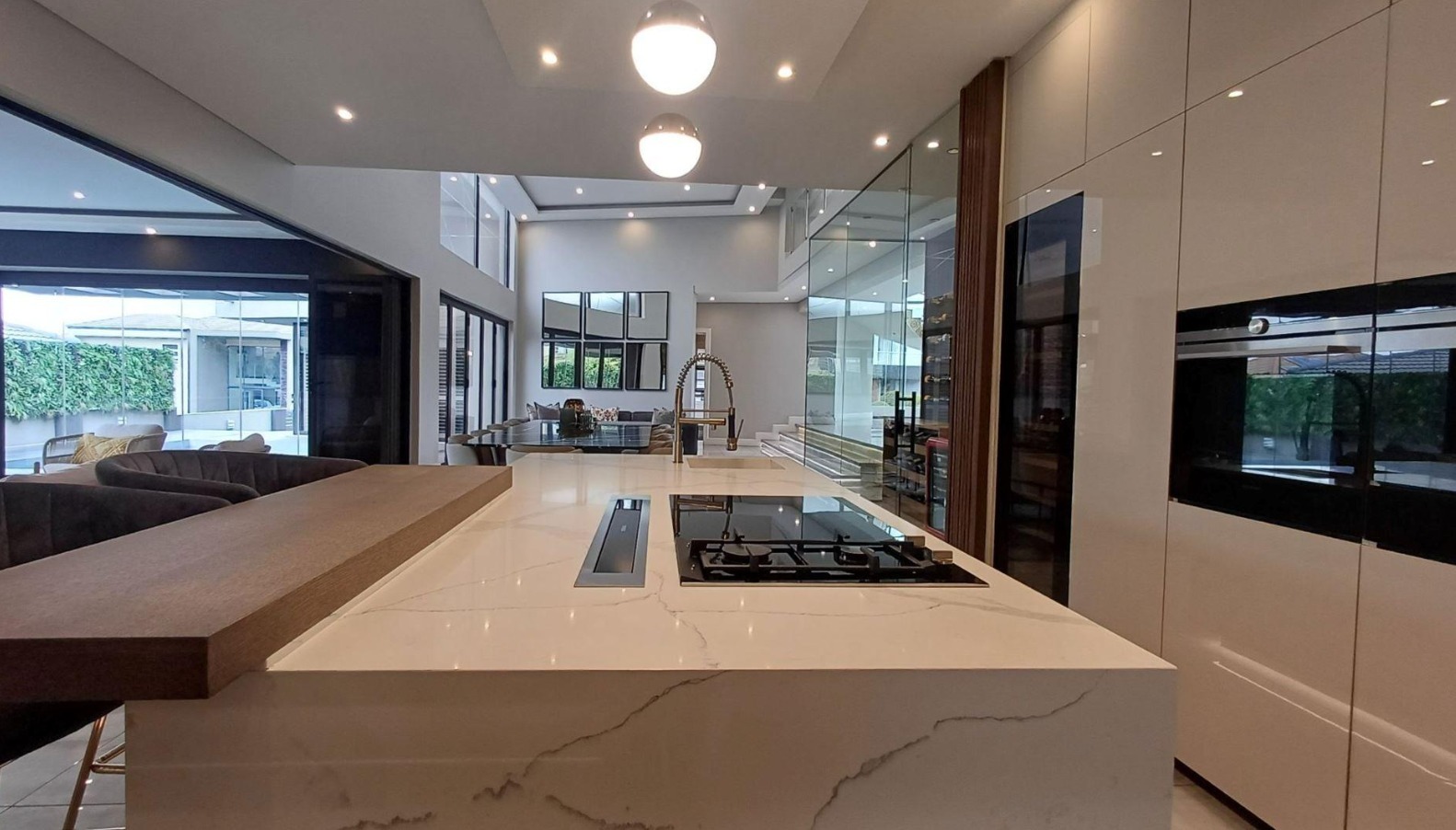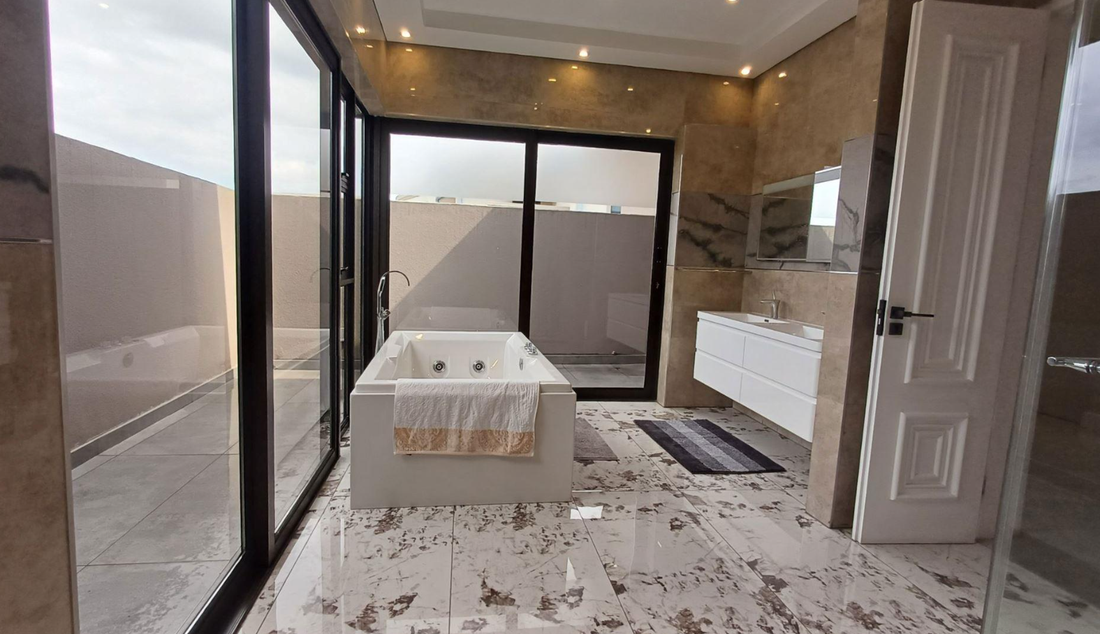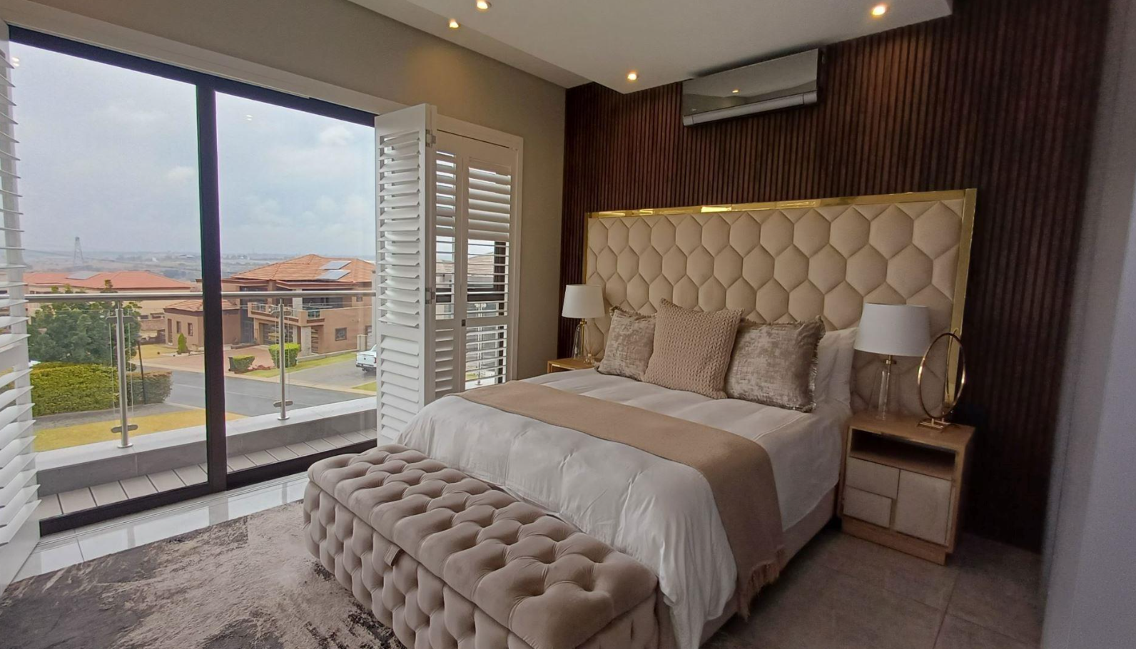 Nestled within the prestigious Blue Valley Golf Estate in Centurion, this architectural masterpiece redefines luxury living. From the moment of arrival, the contemporary multi-story residence captivates with its sleek design, extensive glass facades, and impeccable kerb appeal, promising an unparalleled lifestyle.