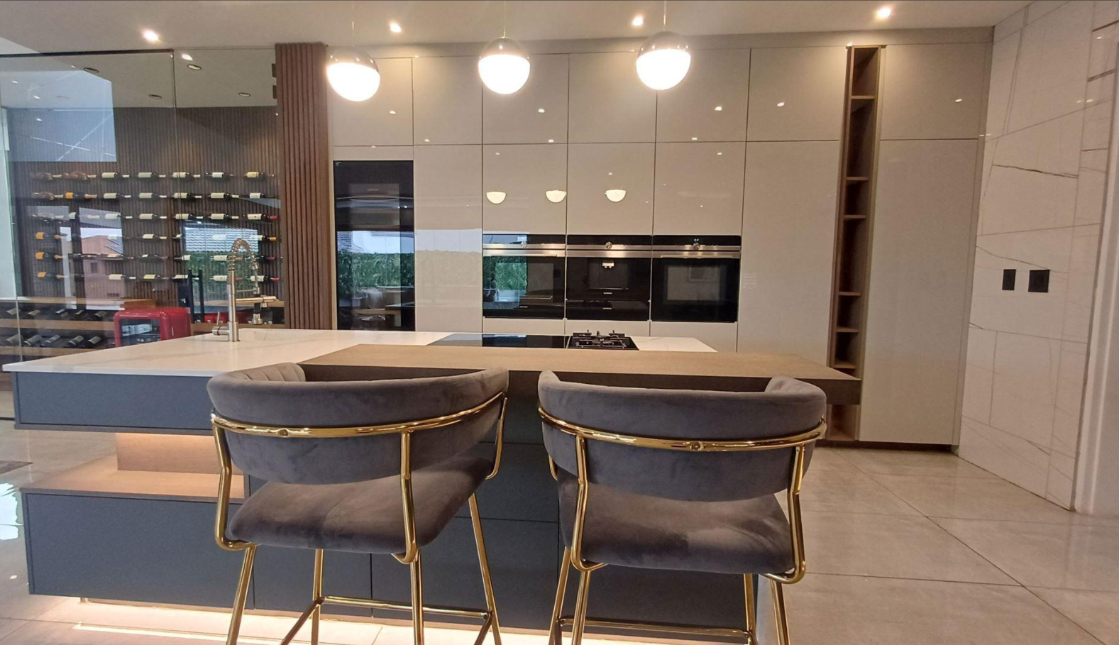 * State-of-the-art open-plan kitchen with glass-enclosed wine cellar