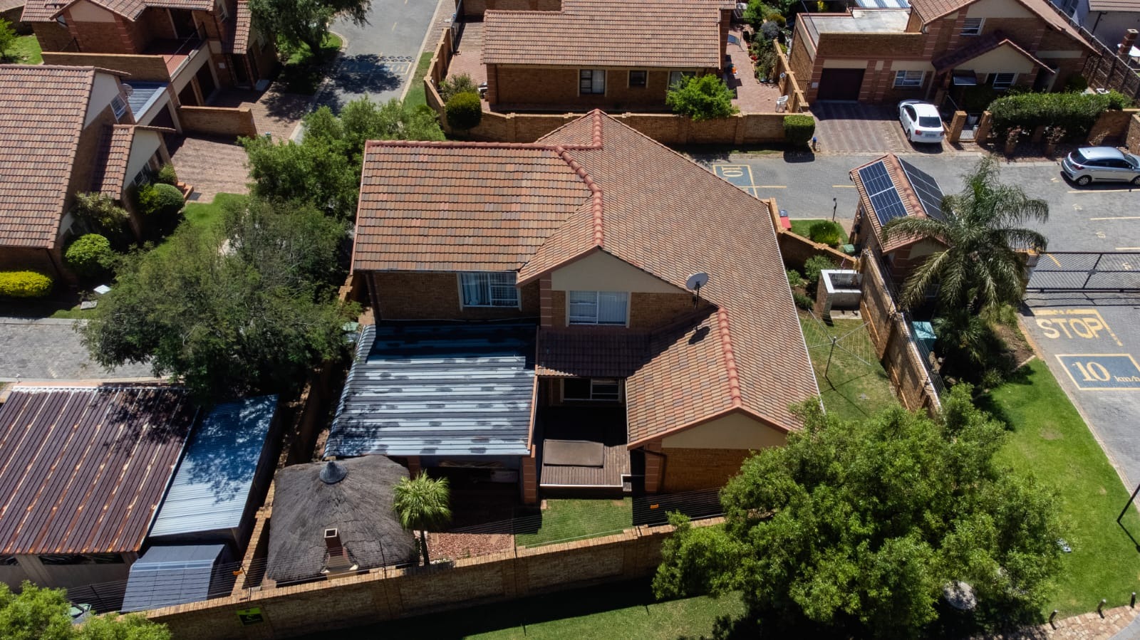 Security is paramount within this gated community and security complex. Features include a security post, access gate, intercom, electric fencing, and 24-hour security. The property is totally walled, benefits from a security gate, a battery inverter, and fibre connectivity.