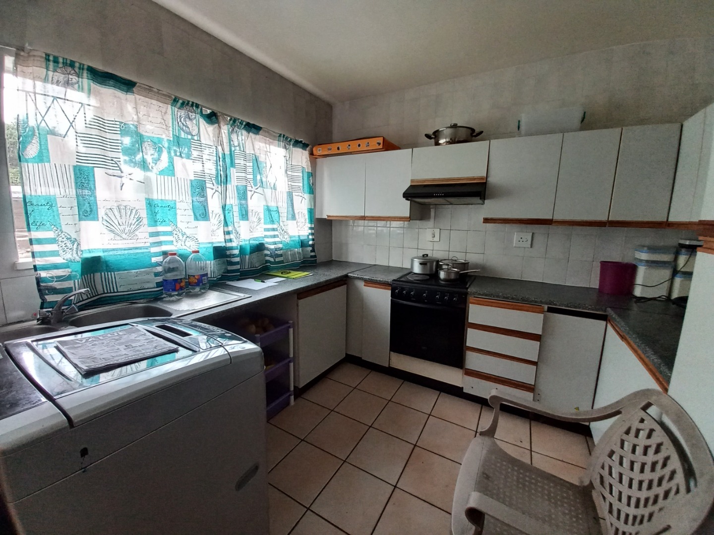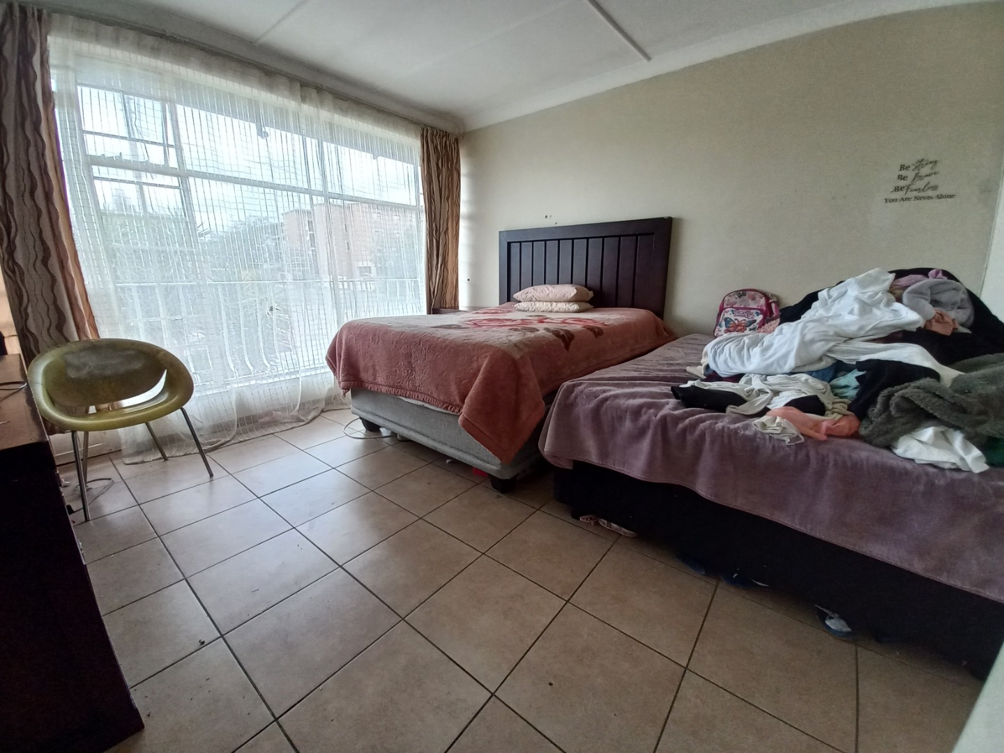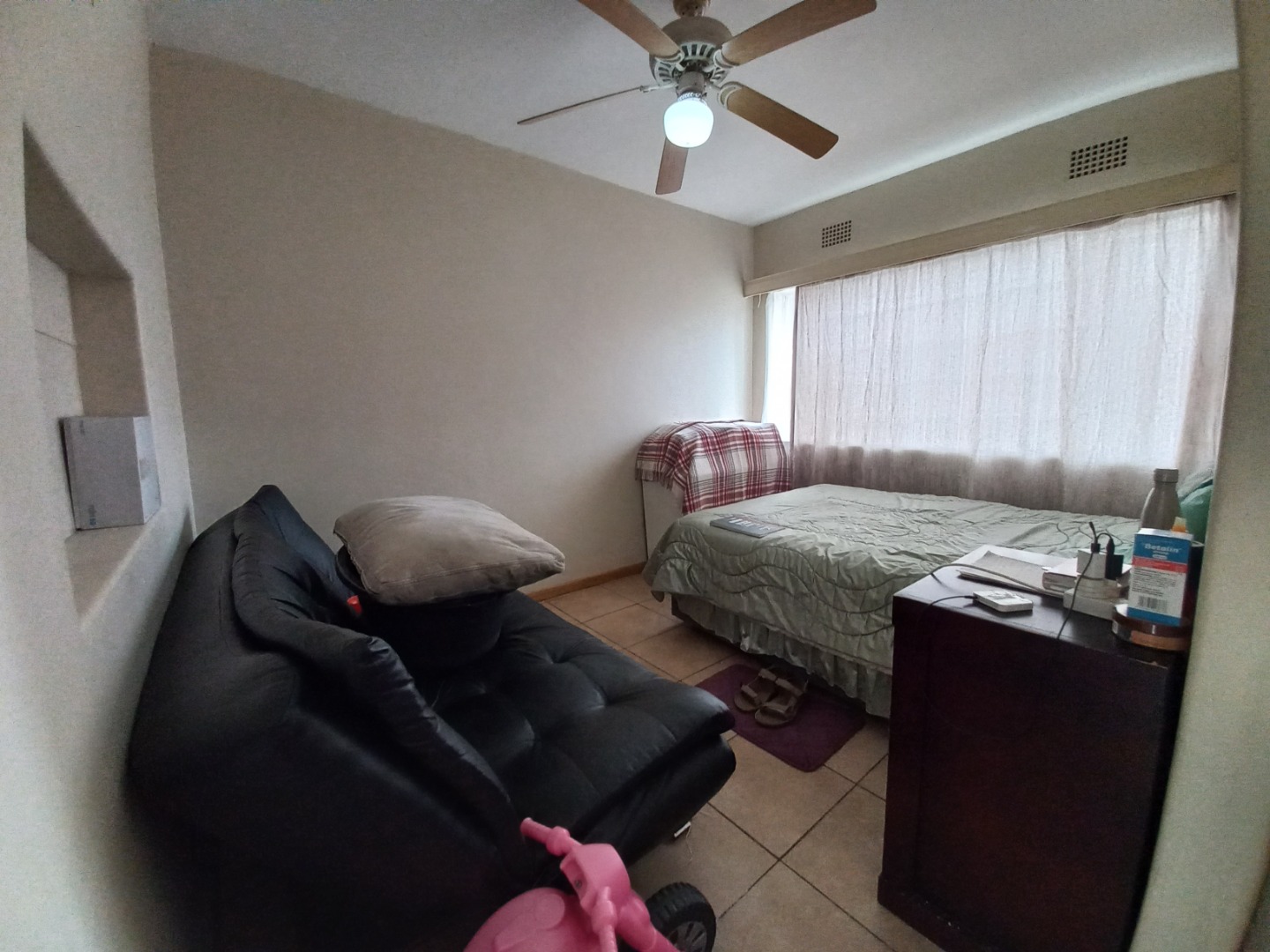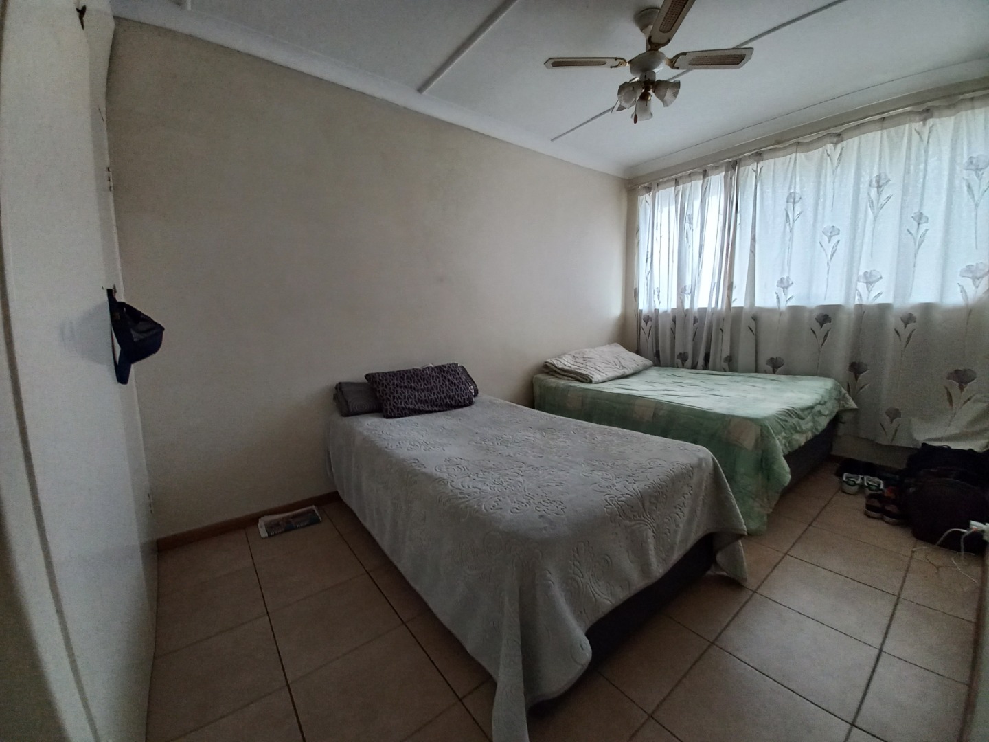 Two spacious bedrooms feature neat tiling and ample built in cupboards for all storage needs.