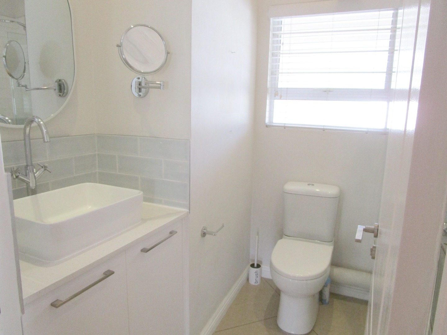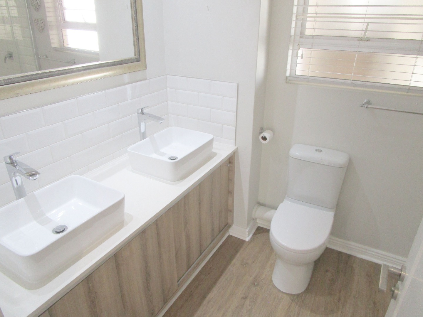 You'll find two comfy bedrooms, both with modern wood-look laminated flooring and plenty of built-in storage. The main bedroom even has its own ensuite bathroom, and there's another full bathroom, plus a super stylish guest toilet with botanical wallpaper. Step outside to your private patio, complete with a built-in braai – ideal for those South African get-togethers!