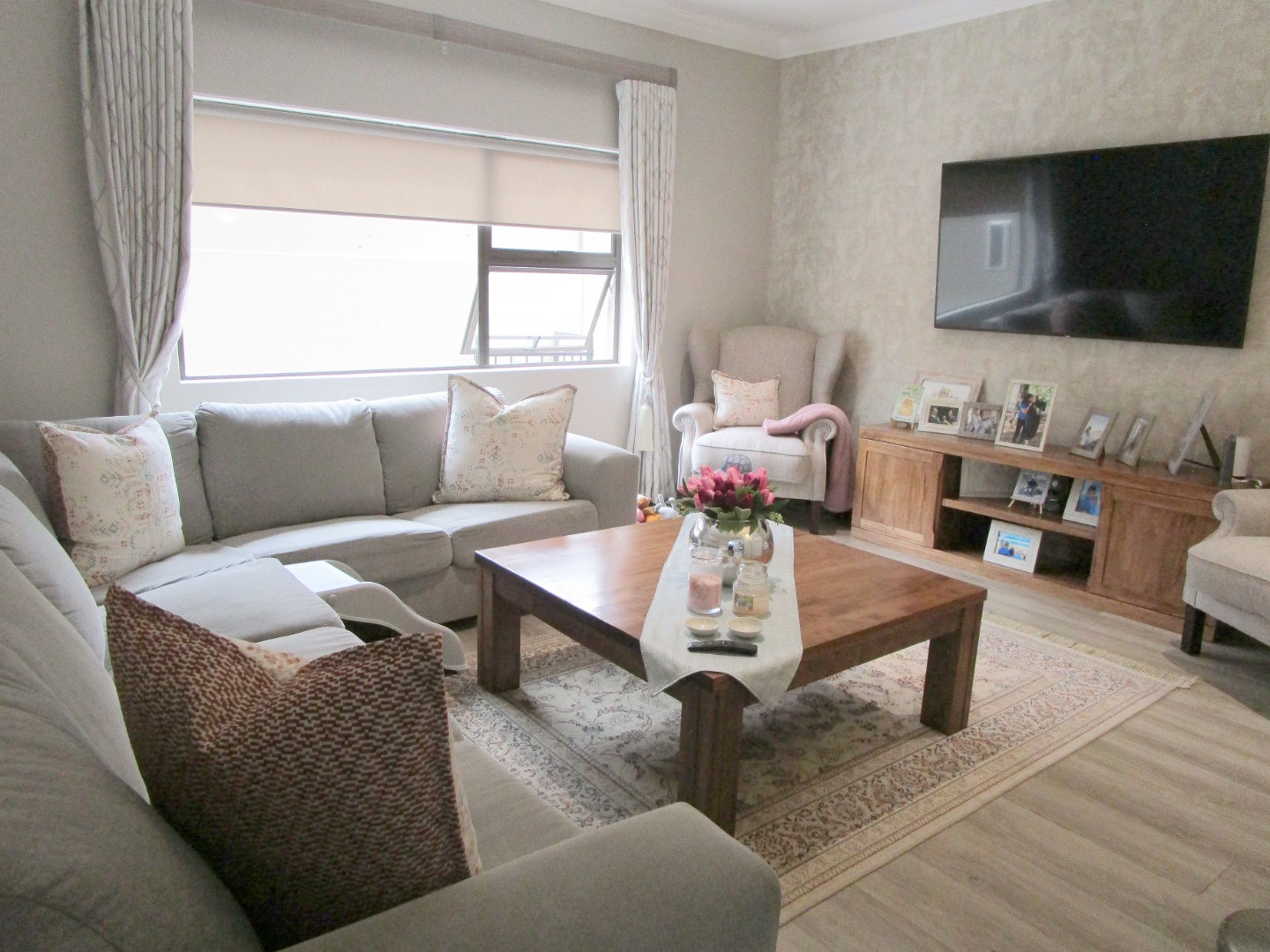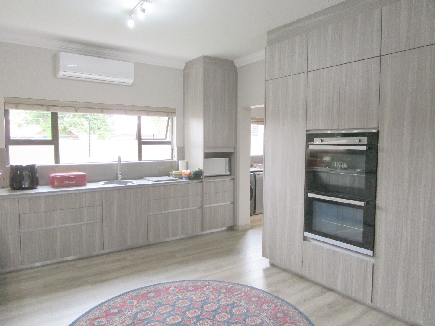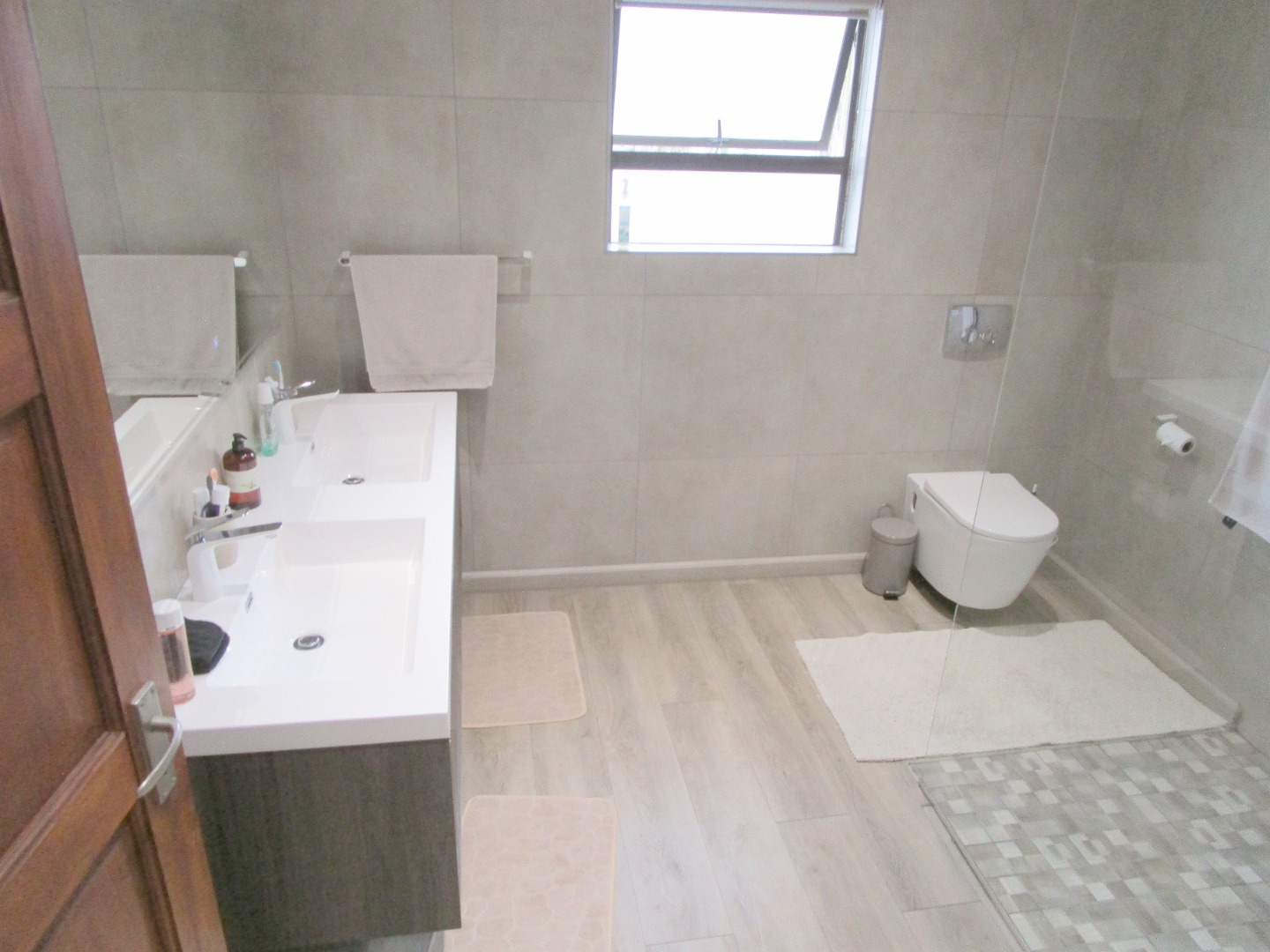 Upstairs, three generously proportioned bedrooms include a luxurious en-suite master, complemented by 2.5 contemporary bathrooms. This secure haven benefits from 24-hour estate security, an intercom system, fibre connectivity, and water tanks. Two garages, three additional parking bays, staff quarters, laundry, and ample storage complete this exceptional offering.