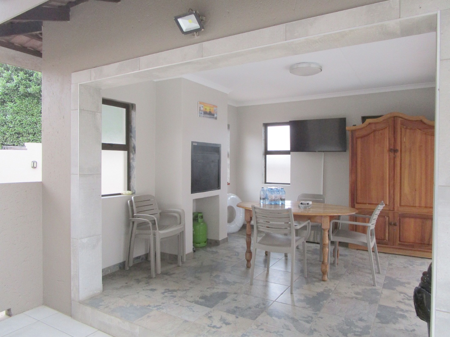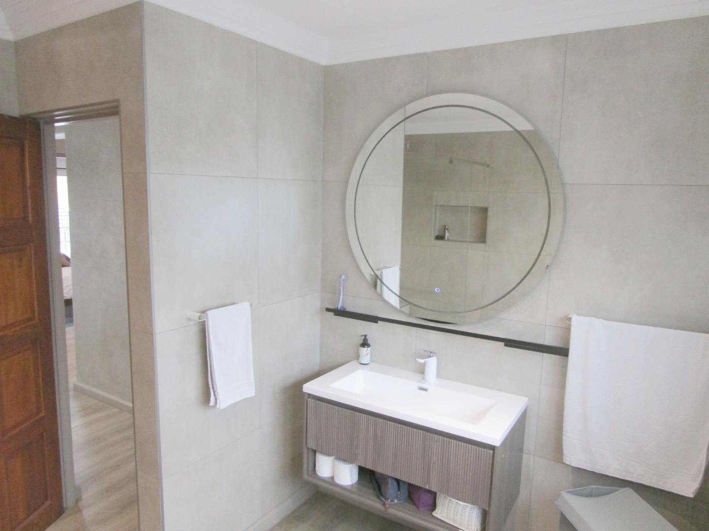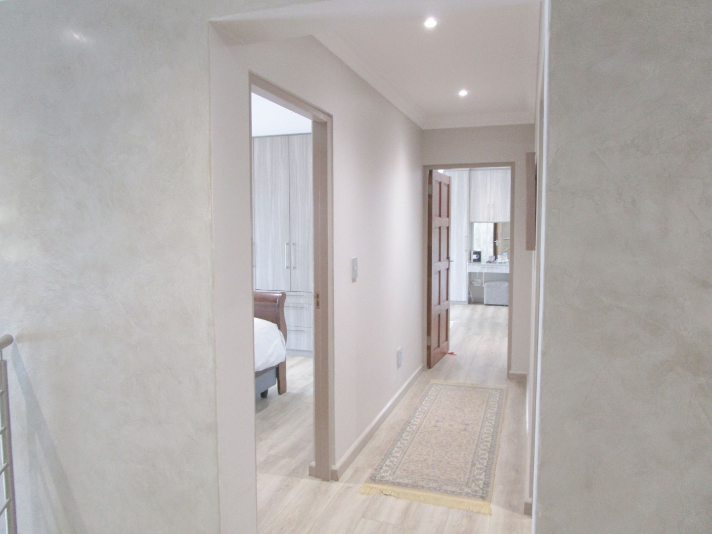 Upstairs, three generously proportioned bedrooms include a luxurious en-suite master, complemented by 2.5 contemporary bathrooms. This secure haven benefits from 24-hour estate security, an intercom system, fibre connectivity, and water tanks. Two garages, three additional parking bays, staff quarters, laundry, and ample storage complete this exceptional offering.