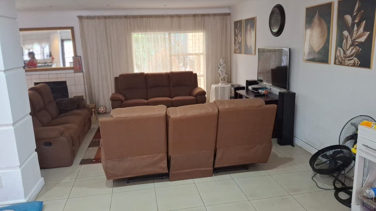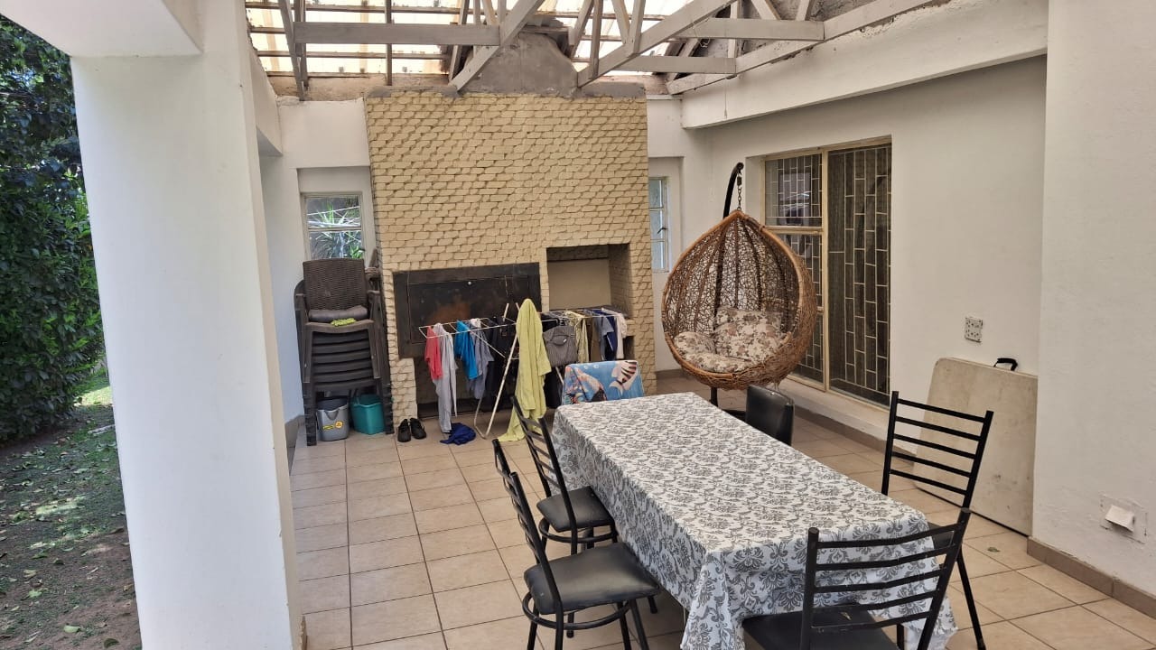 Outdoor living is a delight with a spacious, pet-friendly garden featuring mature trees that provide ample shade and a covered patio, ideal for al fresco dining and a built-in braai. The property is totally walled and secured with an access gate and 24-hour security post, enhancing safety. With its blend of comfort, space, and security, this home is perfectly suited for family life.
