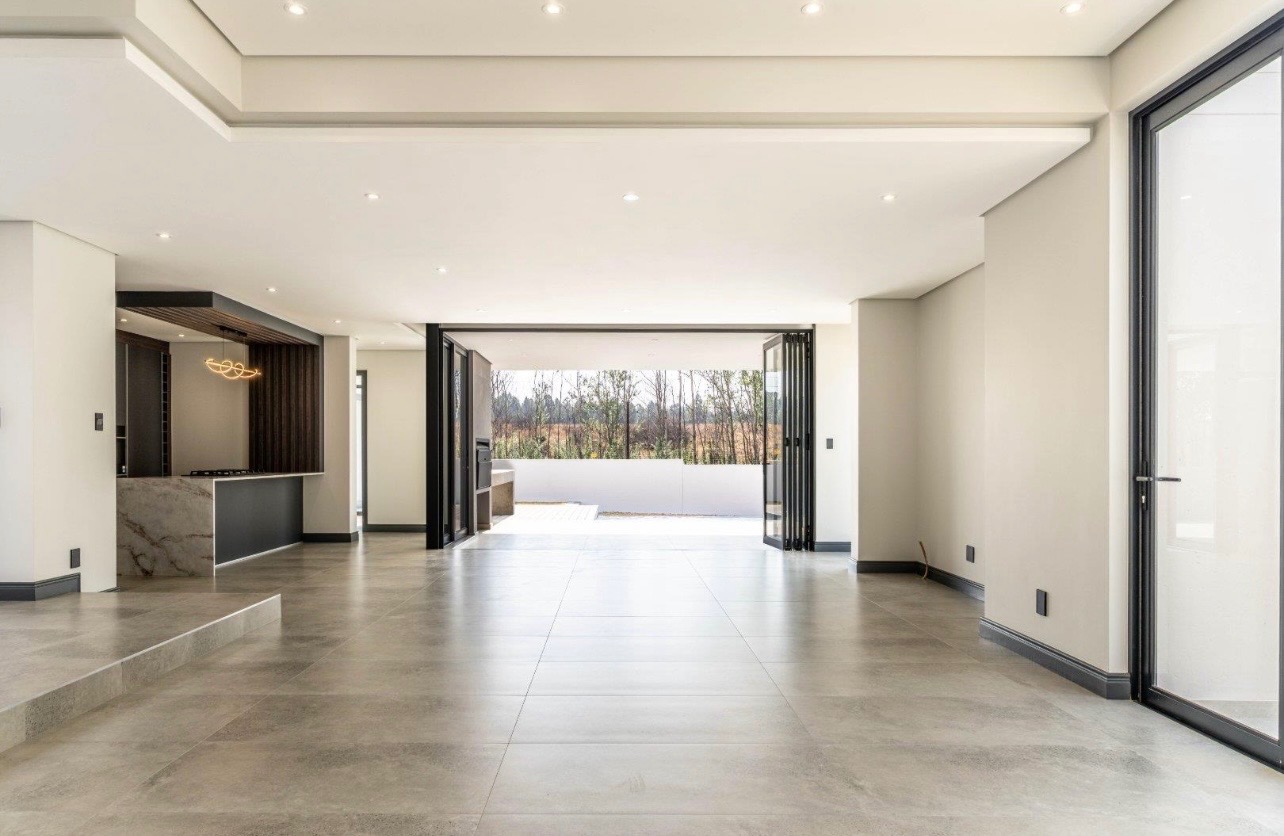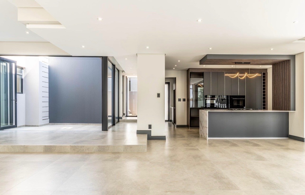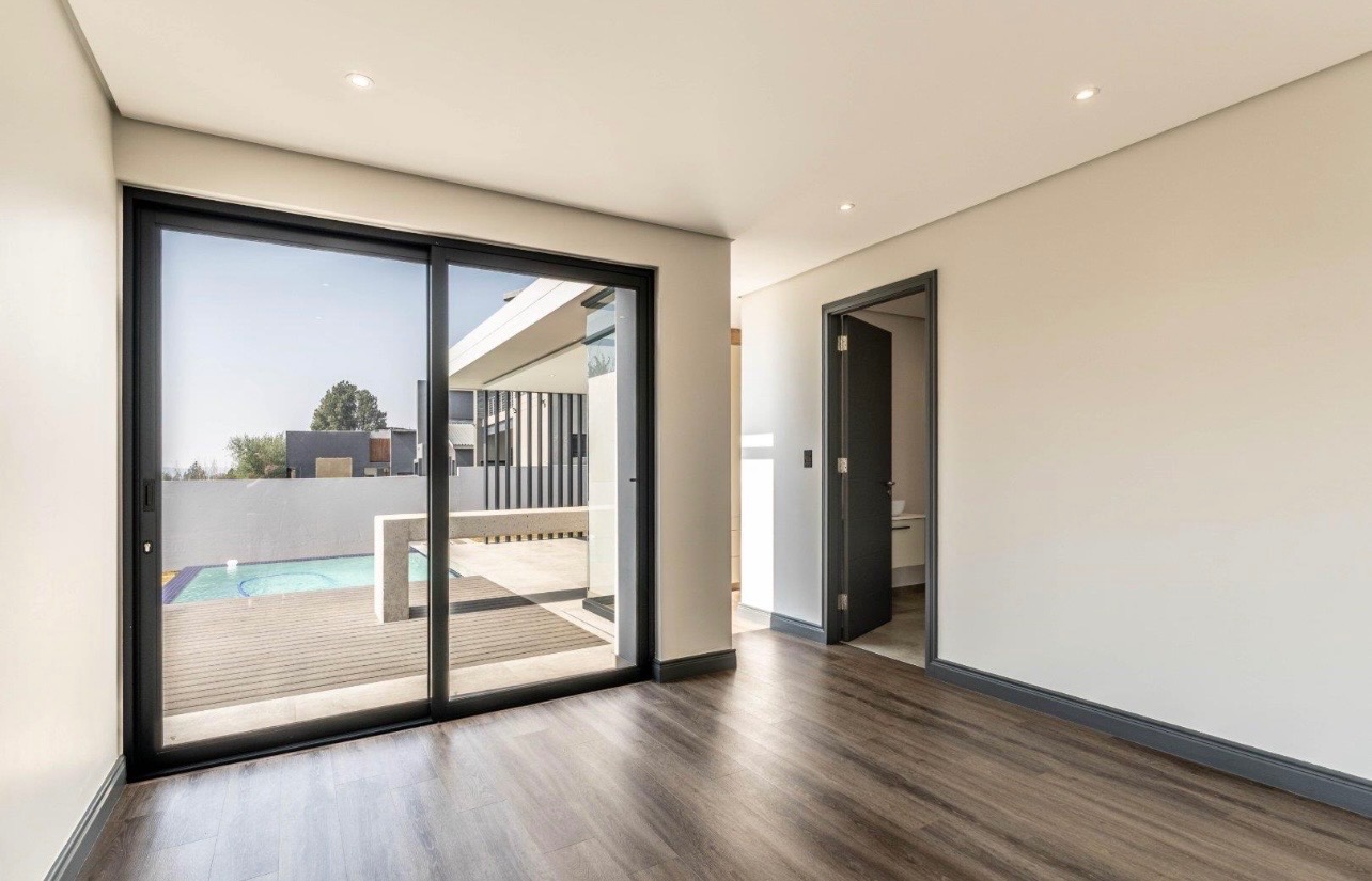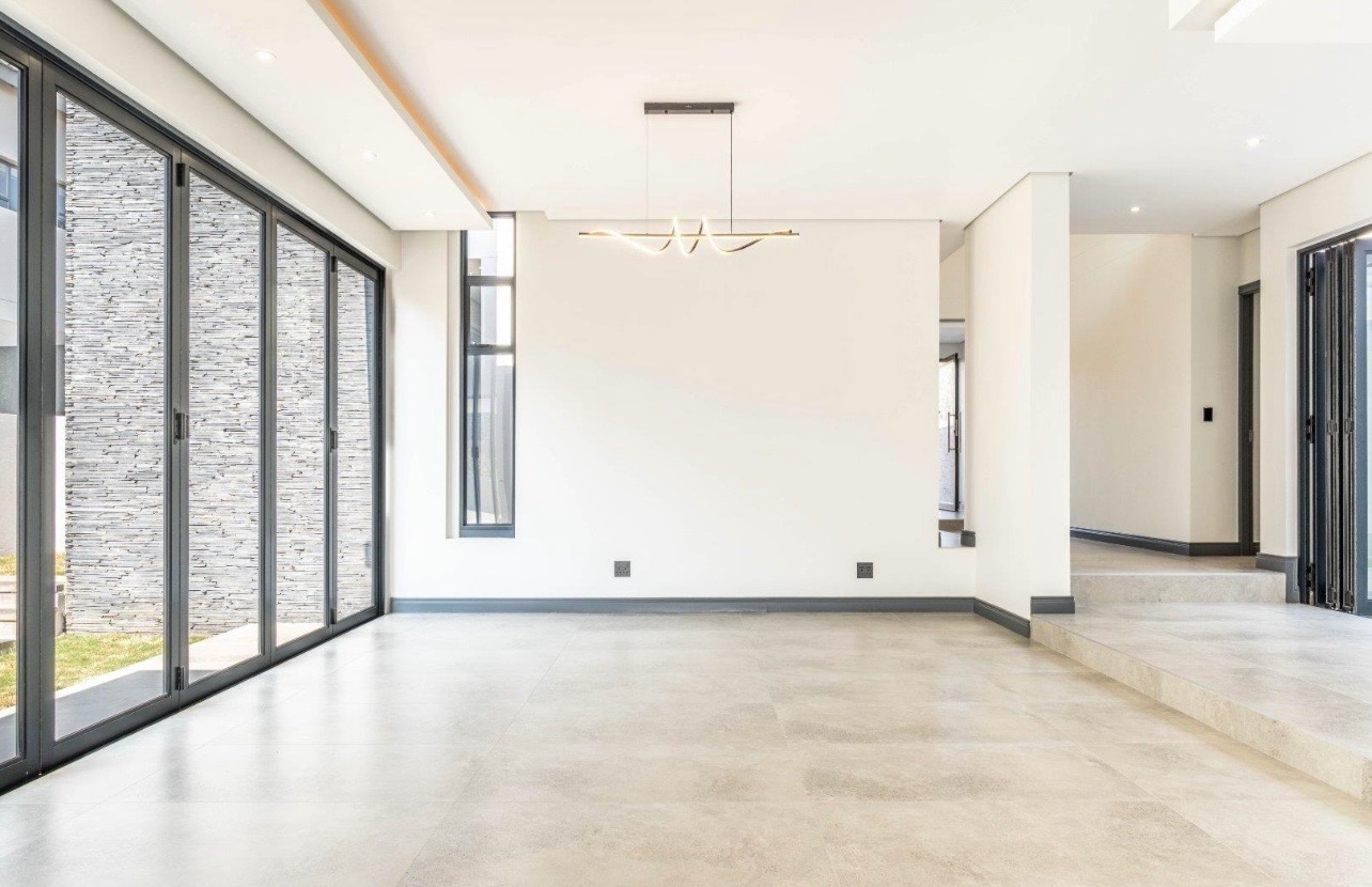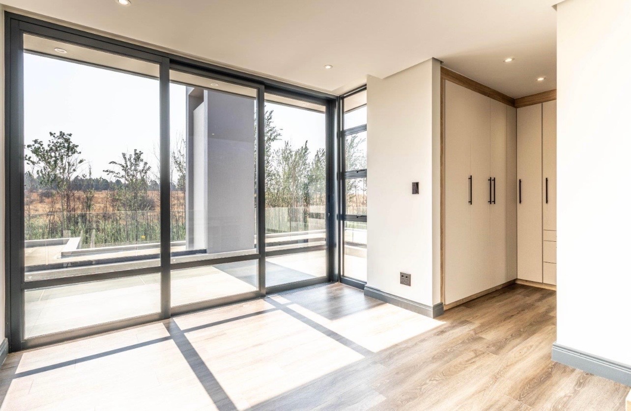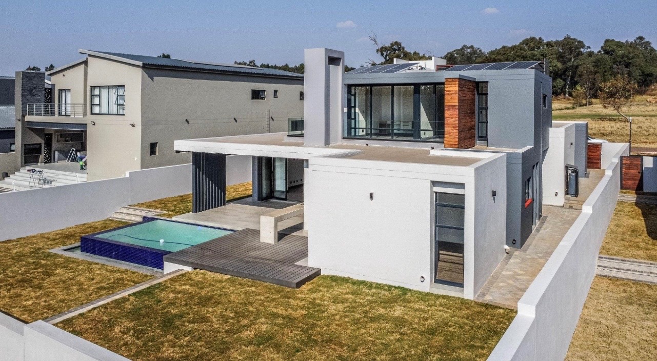 Discover contemporary luxury within the prestigious Eye Of Africa Estate, a premier golf estate in Eikenhof. This striking modern residence immediately impresses with its clean lines, stylish grey and white exterior, and elegant wood accents. Situated in a secure environment, the property benefits from 24-hour security and controlled access, offering peace of mind. Step inside to an expansive open-plan layout, bathed in natural light from large windows and sliding glass doors. High ceilings and recessed lighting enhance the spacious feel across two generous lounges and a dedicated dining area. The heart of the home is a sophisticated kitchen, boasting high-end integrated appliances, a luxurious marble island with a gas hob, and ample storage including a pantry. A striking floating staircase with glass railings serves as a modern architectural focal point. The home features four well-appointed bedrooms and four modern bathrooms, ensuring comfort and privacy. Embrace an exceptional outdoor lifestyle with a private pool, a spacious patio perfect for entertaining, and a built-in braai. The property includes a well-maintained garden, enjoys scenic views, and complements the estate's golf course amenities. A triple integrated garage provides secure parking. Committed to modern living, this home is equipped with solar panels and a solar geyser, promoting energy efficiency. Fibre connectivity ensures high-speed internet access, catering to contemporary demands. Key Features: * 4 Bedrooms, 4 Bathrooms * 3 Garages * Luxurious Kitchen with Integrated Appliances & Marble Island * Private Pool & Patio with Built-in Braai * Open-Plan Living with 2 Lounges & Dining Area * Modern Architecture & High-End Finishes * Solar Panels & Solar Geyser * Fibre Ready * Located in Eye Of Africa Golf Estate with 24-Hour Security