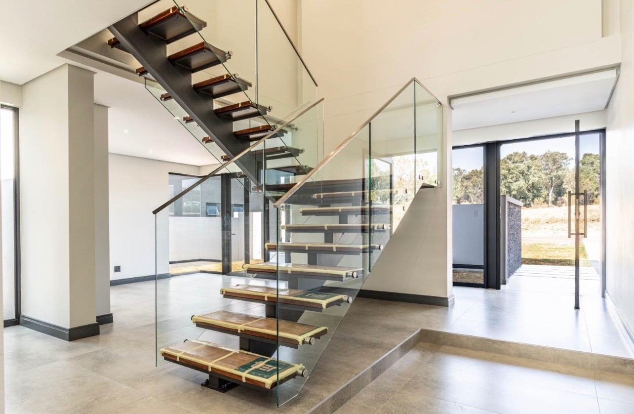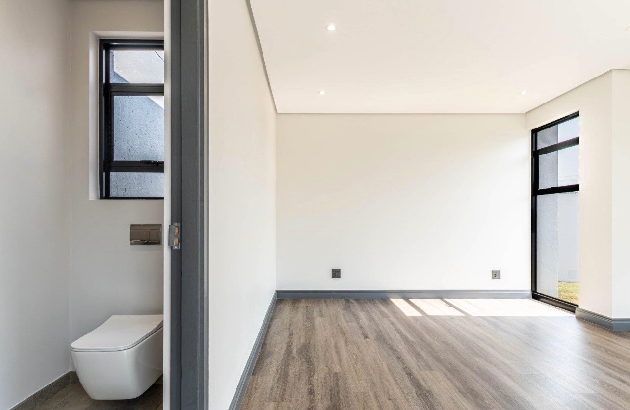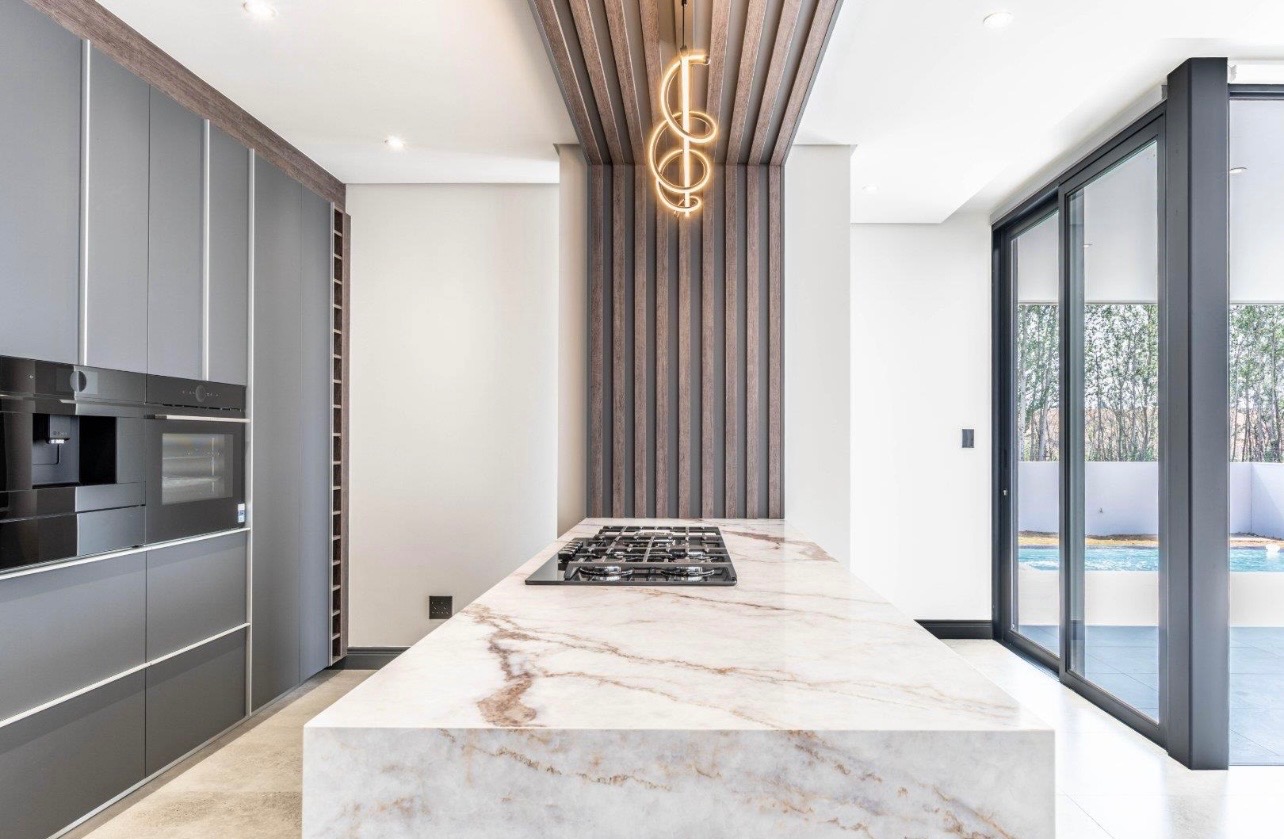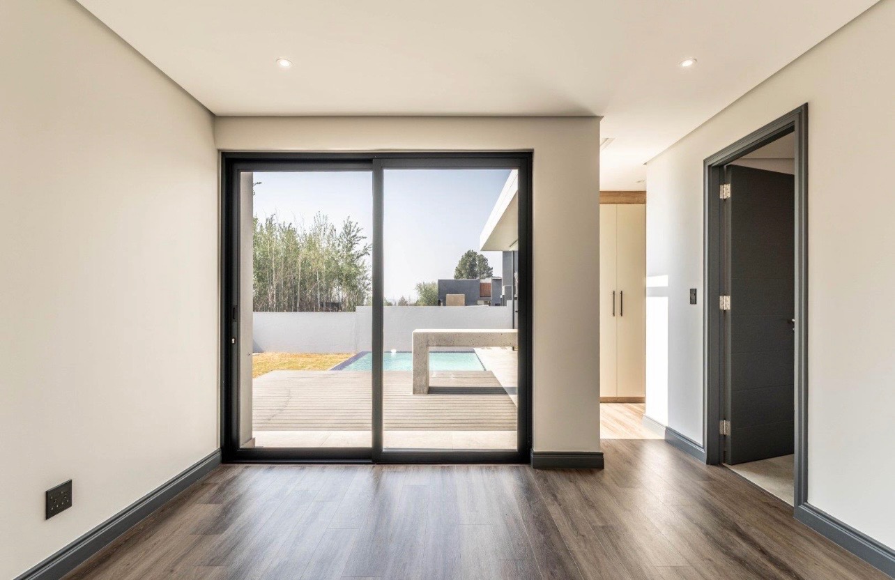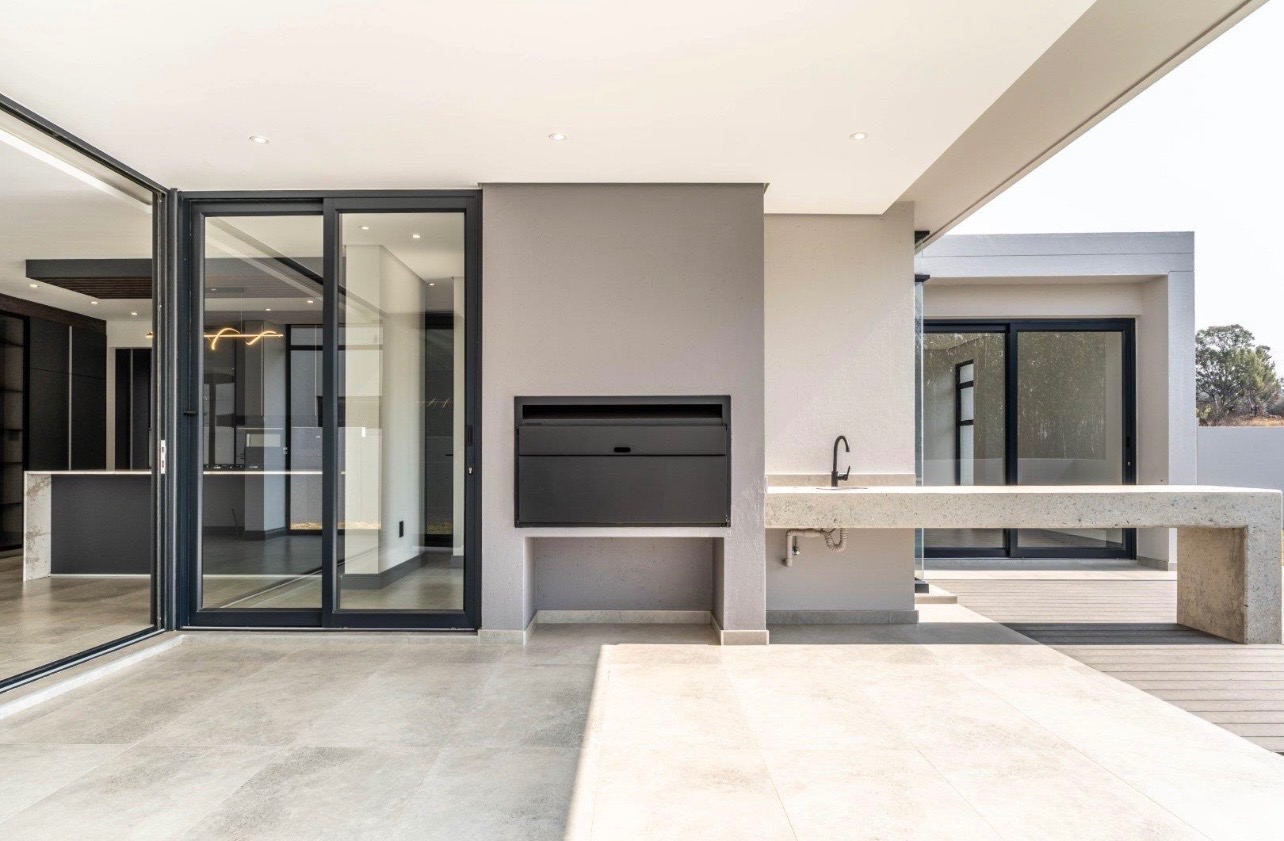 Discover contemporary luxury within the prestigious Eye Of Africa Estate, a premier golf estate in Eikenhof. This striking modern residence immediately impresses with its clean lines, stylish grey and white exterior, and elegant wood accents. Situated in a secure environment, the property benefits from 24-hour security and controlled access, offering peace of mind. Step inside to an expansive open-plan layout, bathed in natural light from large windows and sliding glass doors. High ceilings and recessed lighting enhance the spacious feel across two generous lounges and a dedicated dining area. The heart of the home is a sophisticated kitchen, boasting high-end integrated appliances, a luxurious marble island with a gas hob, and ample storage including a pantry. A striking floating staircase with glass railings serves as a modern architectural focal point. The home features four well-appointed bedrooms and four modern bathrooms, ensuring comfort and privacy. Embrace an exceptional outdoor lifestyle with a private pool, a spacious patio perfect for entertaining, and a built-in braai. The property includes a well-maintained garden, enjoys scenic views, and complements the estate's golf course amenities. A triple integrated garage provides secure parking. Committed to modern living, this home is equipped with solar panels and a solar geyser, promoting energy efficiency. Fibre connectivity ensures high-speed internet access, catering to contemporary demands. Key Features: * 4 Bedrooms, 4 Bathrooms * 3 Garages * Luxurious Kitchen with Integrated Appliances & Marble Island * Private Pool & Patio with Built-in Braai * Open-Plan Living with 2 Lounges & Dining Area * Modern Architecture & High-End Finishes * Solar Panels & Solar Geyser * Fibre Ready * Located in Eye Of Africa Golf Estate with 24-Hour Security