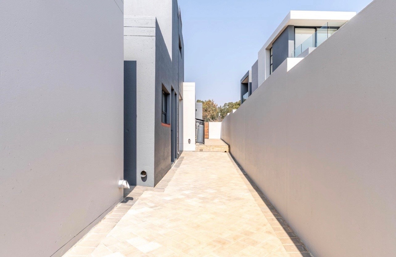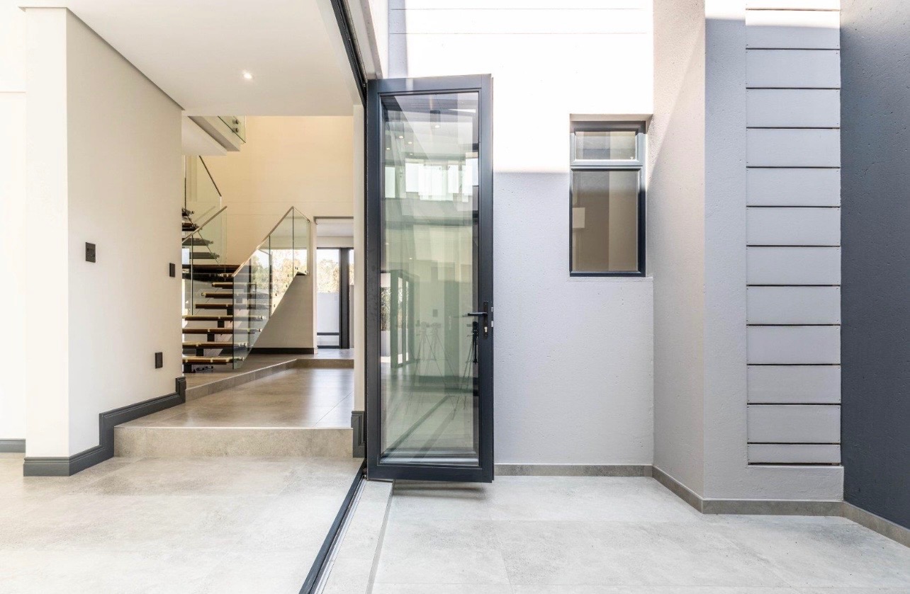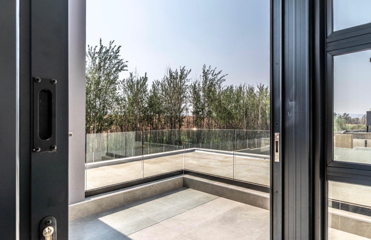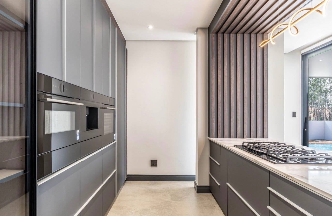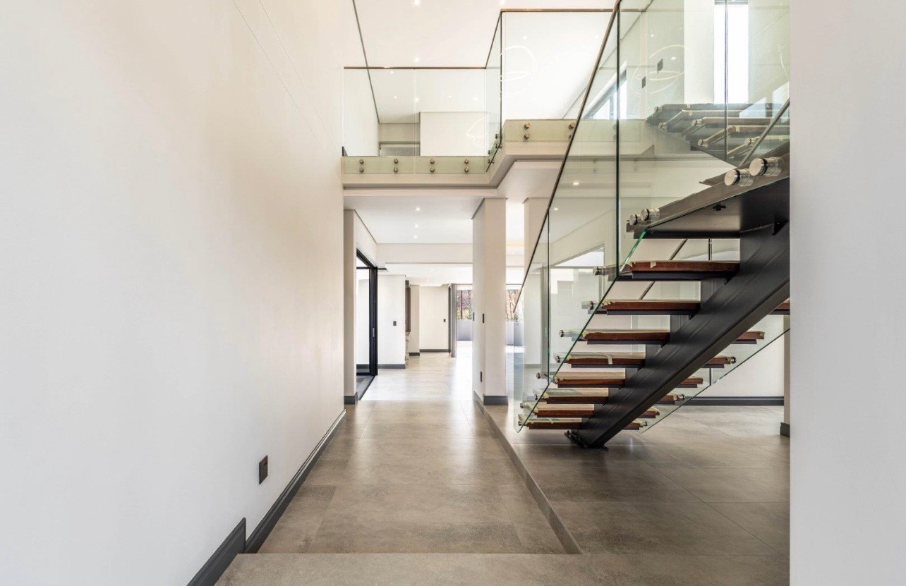 Discover contemporary luxury within the prestigious Eye Of Africa Estate, a premier golf estate in Eikenhof. This striking modern residence immediately impresses with its clean lines, stylish grey and white exterior, and elegant wood accents. Situated in a secure environment, the property benefits from 24-hour security and controlled access, offering peace of mind. Step inside to an expansive open-plan layout, bathed in natural light from large windows and sliding glass doors. High ceilings and recessed lighting enhance the spacious feel across two generous lounges and a dedicated dining area. The heart of the home is a sophisticated kitchen, boasting high-end integrated appliances, a luxurious marble island with a gas hob, and ample storage including a pantry. A striking floating staircase with glass railings serves as a modern architectural focal point. The home features four well-appointed bedrooms and four modern bathrooms, ensuring comfort and privacy. Embrace an exceptional outdoor lifestyle with a private pool, a spacious patio perfect for entertaining, and a built-in braai. The property includes a well-maintained garden, enjoys scenic views, and complements the estate's golf course amenities. A triple integrated garage provides secure parking. Committed to modern living, this home is equipped with solar panels and a solar geyser, promoting energy efficiency. Fibre connectivity ensures high-speed internet access, catering to contemporary demands. Key Features: * 4 Bedrooms, 4 Bathrooms * 3 Garages * Luxurious Kitchen with Integrated Appliances & Marble Island * Private Pool & Patio with Built-in Braai * Open-Plan Living with 2 Lounges & Dining Area * Modern Architecture & High-End Finishes * Solar Panels & Solar Geyser * Fibre Ready * Located in Eye Of Africa Golf Estate with 24-Hour Security