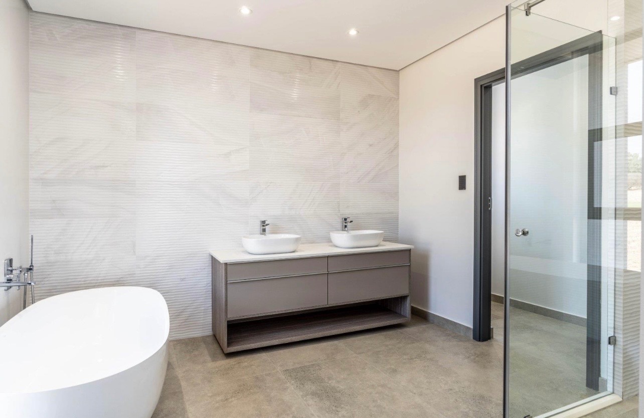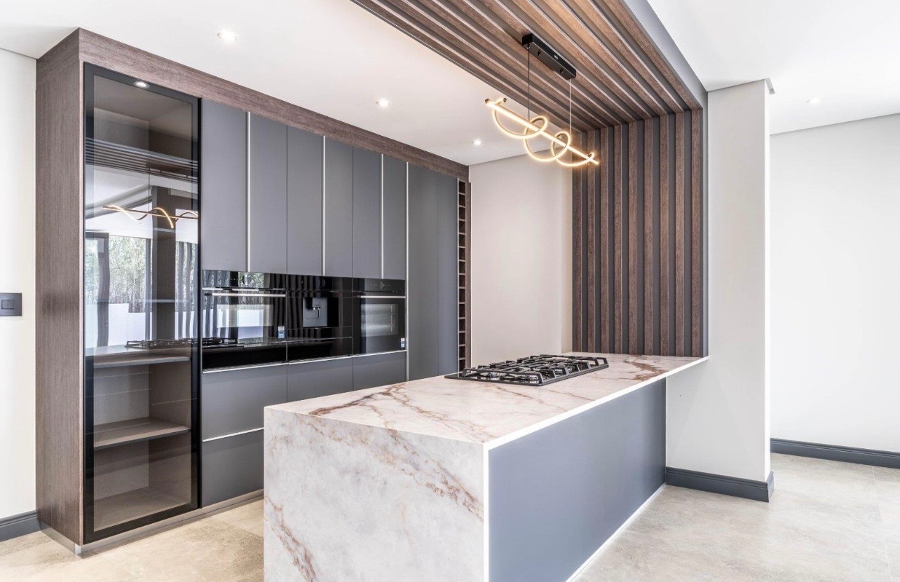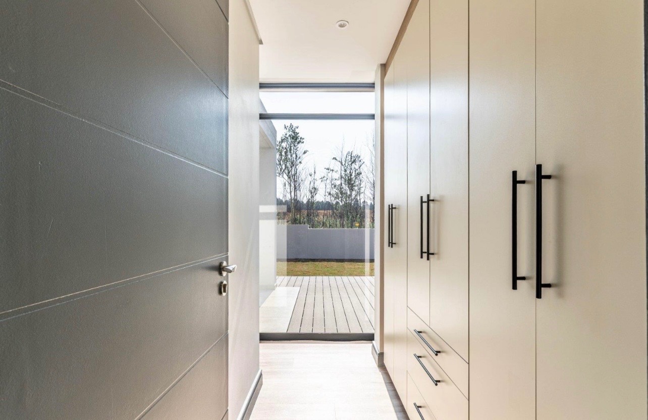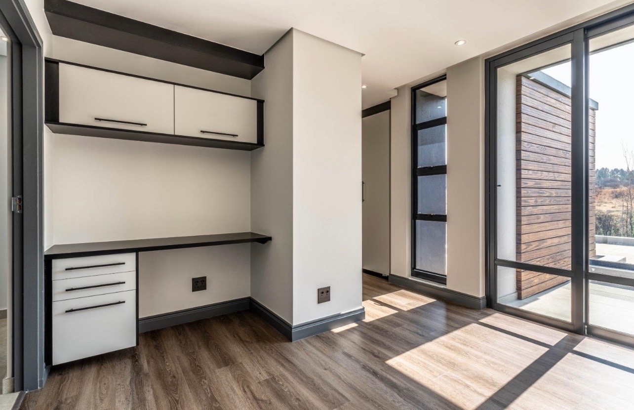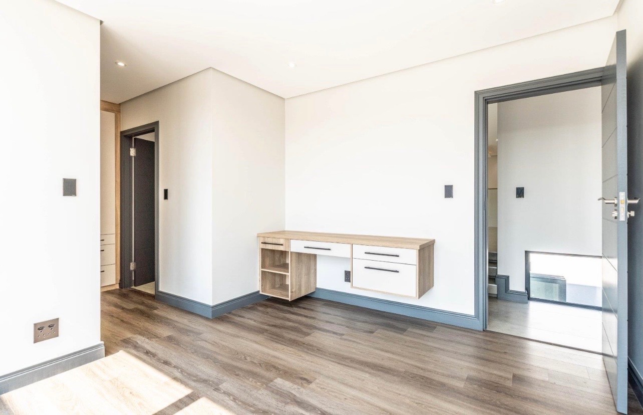 Discover contemporary luxury within the prestigious Eye Of Africa Estate, a premier golf estate in Eikenhof. This striking modern residence immediately impresses with its clean lines, stylish grey and white exterior, and elegant wood accents. Situated in a secure environment, the property benefits from 24-hour security and controlled access, offering peace of mind. Step inside to an expansive open-plan layout, bathed in natural light from large windows and sliding glass doors. High ceilings and recessed lighting enhance the spacious feel across two generous lounges and a dedicated dining area. The heart of the home is a sophisticated kitchen, boasting high-end integrated appliances, a luxurious marble island with a gas hob, and ample storage including a pantry. A striking floating staircase with glass railings serves as a modern architectural focal point. The home features four well-appointed bedrooms and four modern bathrooms, ensuring comfort and privacy. Embrace an exceptional outdoor lifestyle with a private pool, a spacious patio perfect for entertaining, and a built-in braai. The property includes a well-maintained garden, enjoys scenic views, and complements the estate's golf course amenities. A triple integrated garage provides secure parking. Committed to modern living, this home is equipped with solar panels and a solar geyser, promoting energy efficiency. Fibre connectivity ensures high-speed internet access, catering to contemporary demands. Key Features: * 4 Bedrooms, 4 Bathrooms * 3 Garages * Luxurious Kitchen with Integrated Appliances & Marble Island * Private Pool & Patio with Built-in Braai * Open-Plan Living with 2 Lounges & Dining Area * Modern Architecture & High-End Finishes * Solar Panels & Solar Geyser * Fibre Ready * Located in Eye Of Africa Golf Estate with 24-Hour Security