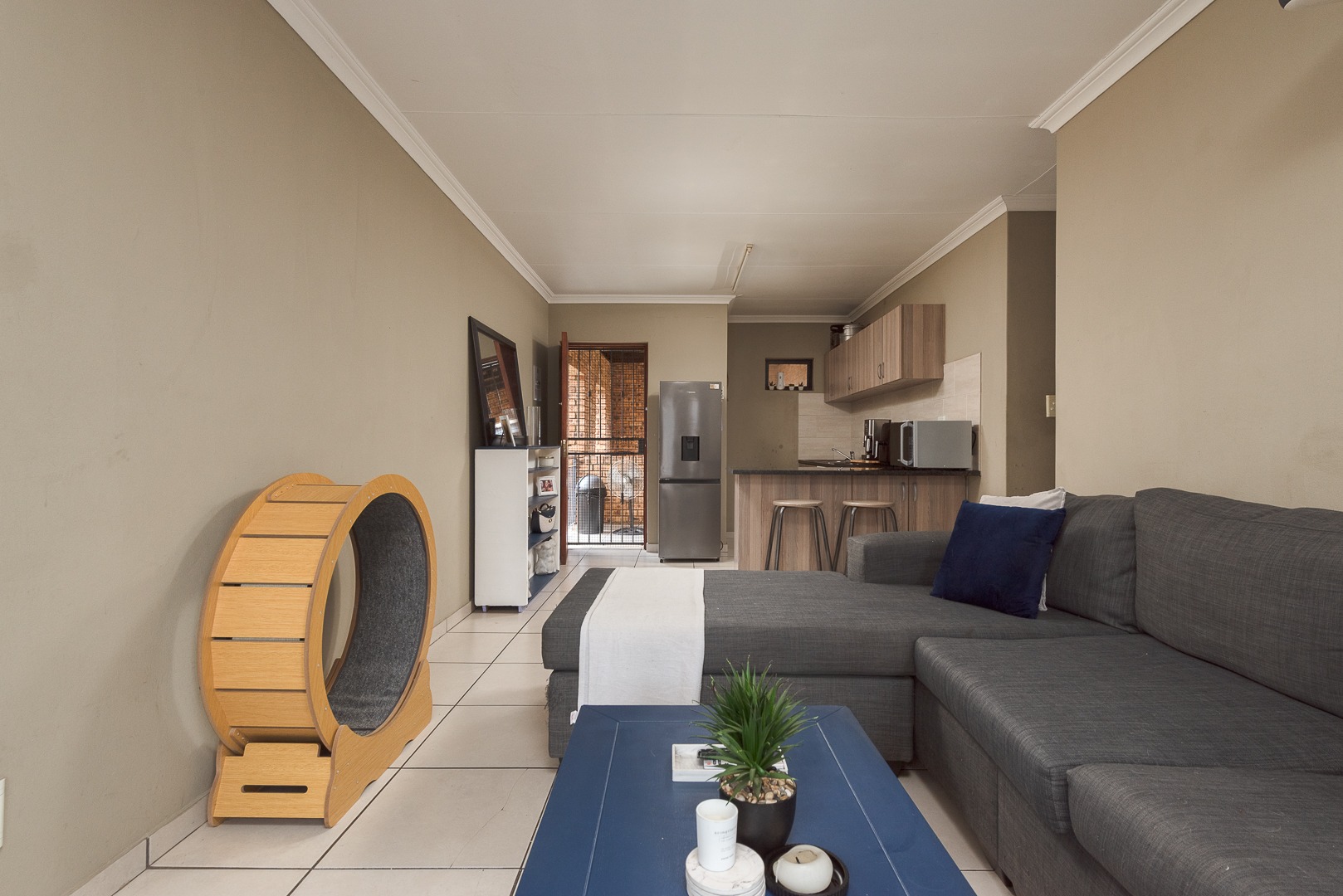 For enhanced sustainability and modern convenience, the unit benefits from a solar geyser and fiber internet connectivity, catering to contemporary living demands.