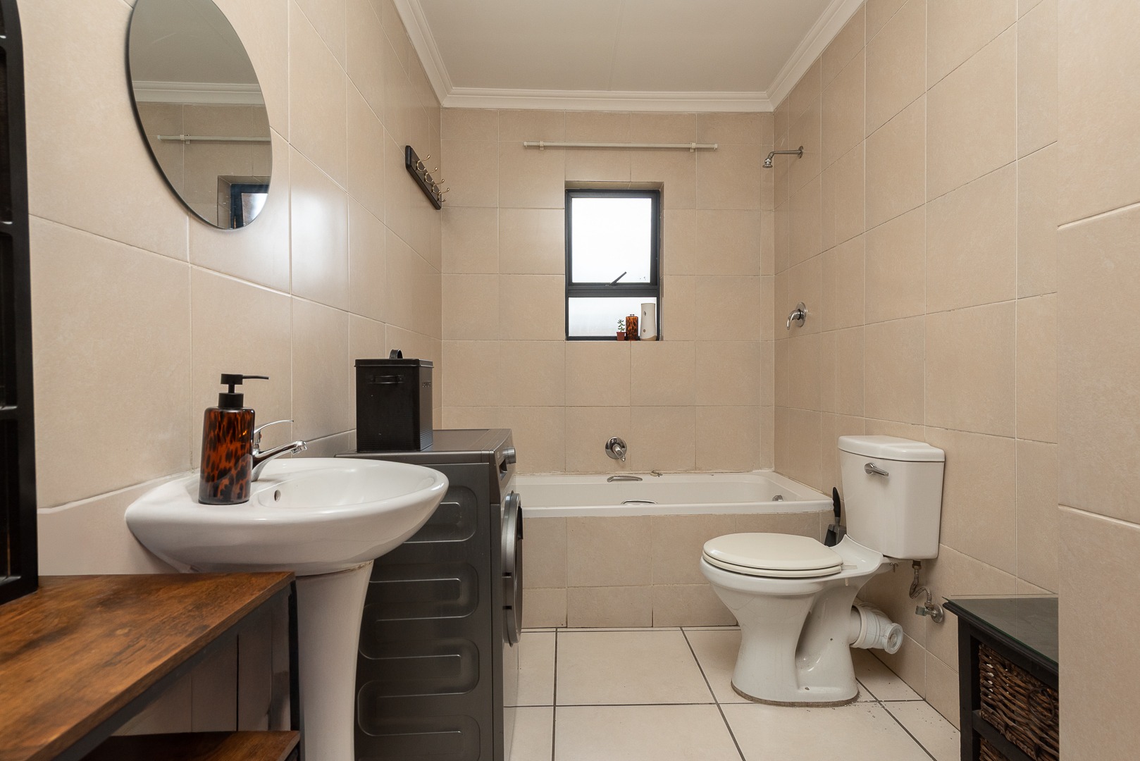 There are two bathrooms, including a private en-suite with a shower, basin and toilet. The second bathroom consists of a bath, toilet and basin and has ample space for your washing machine. This ensures convenience and comfort.