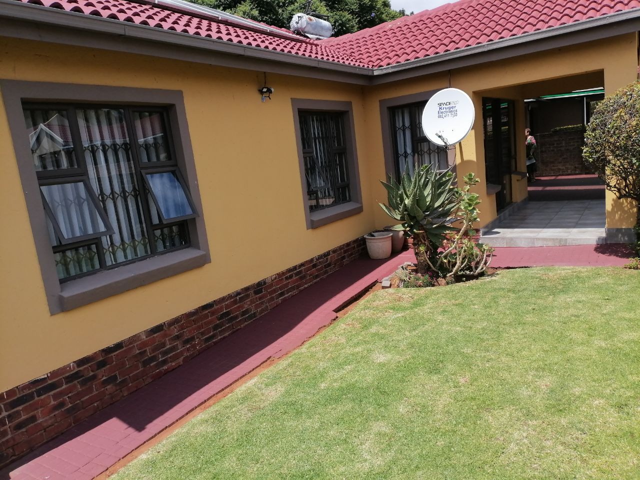 Nestled within a desirable complex in Albemarle, Germiston, this charming residential property offers a blend of comfort and modern living. The exterior presents welcoming kerb appeal with its well-maintained yellow facade, classic red tiled roof, and an established green lawn and garden. A paved driveway leads to a substantial garage, providing ample secure parking for residents and guests. Security is enhanced with visible bars on all windows, ensuring peace of mind.