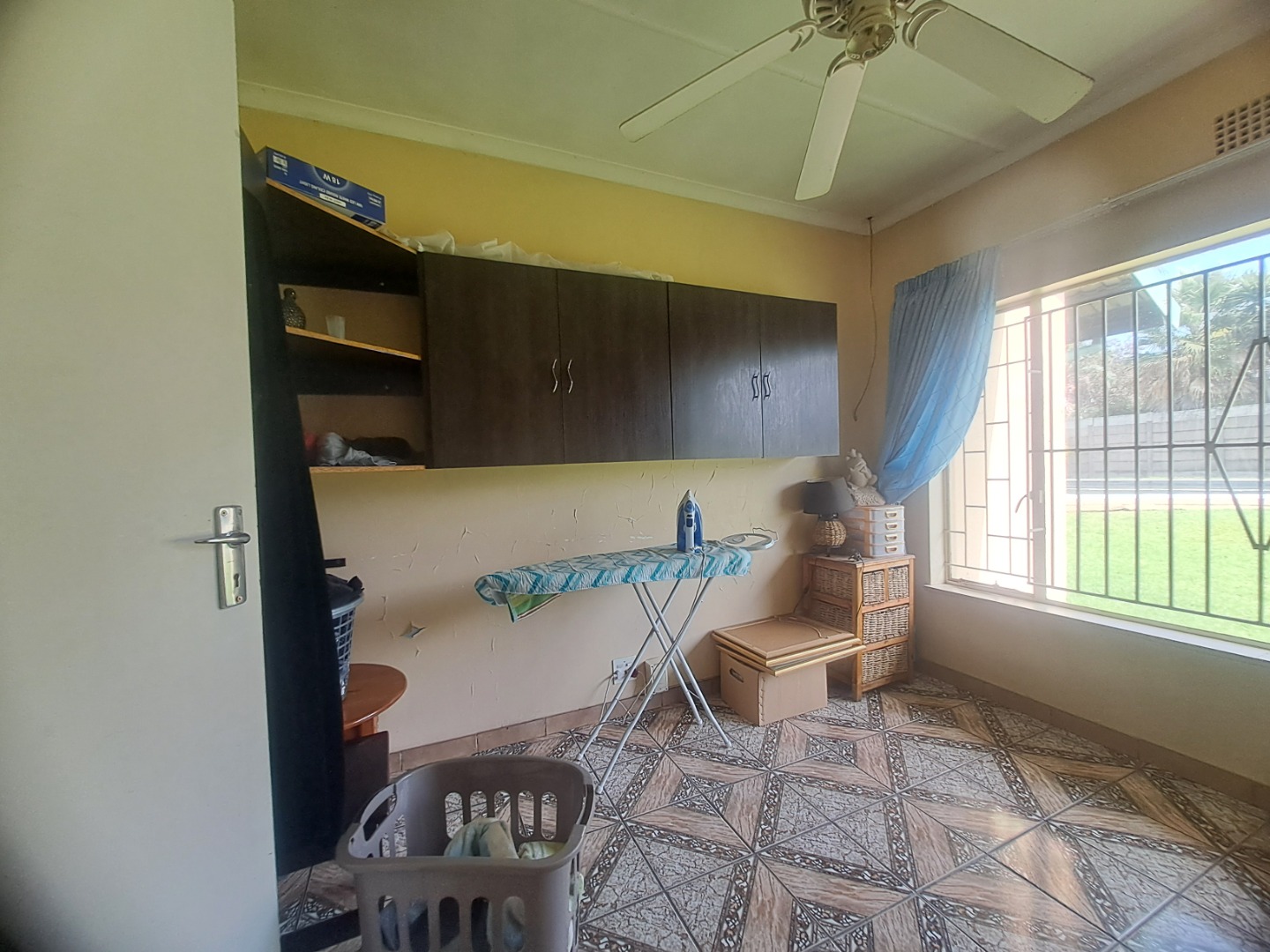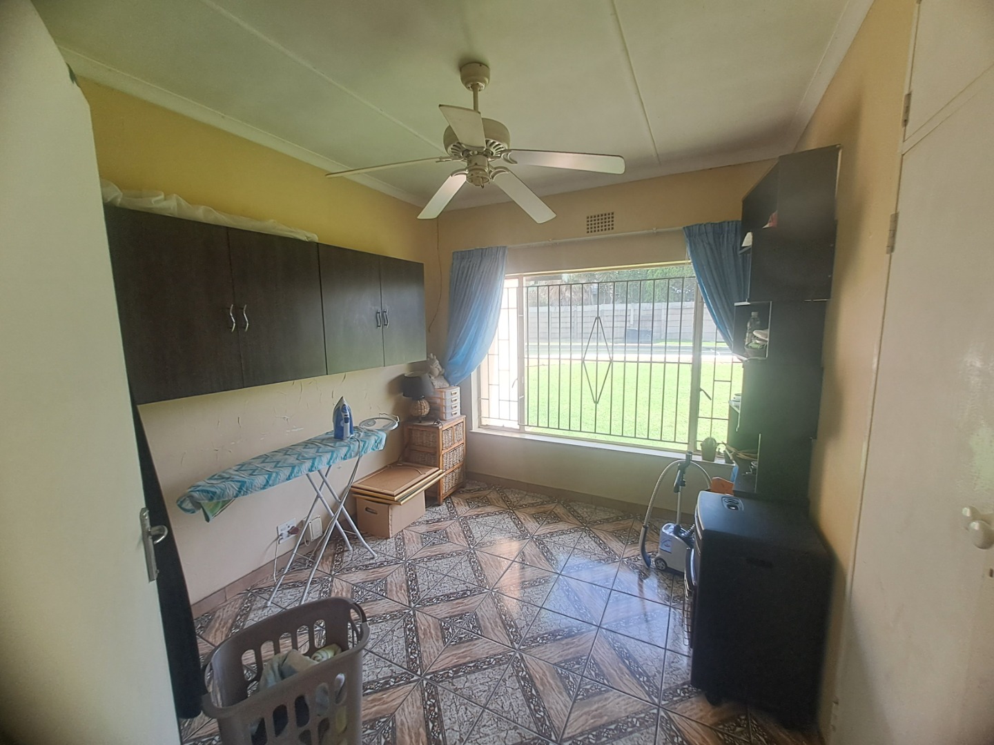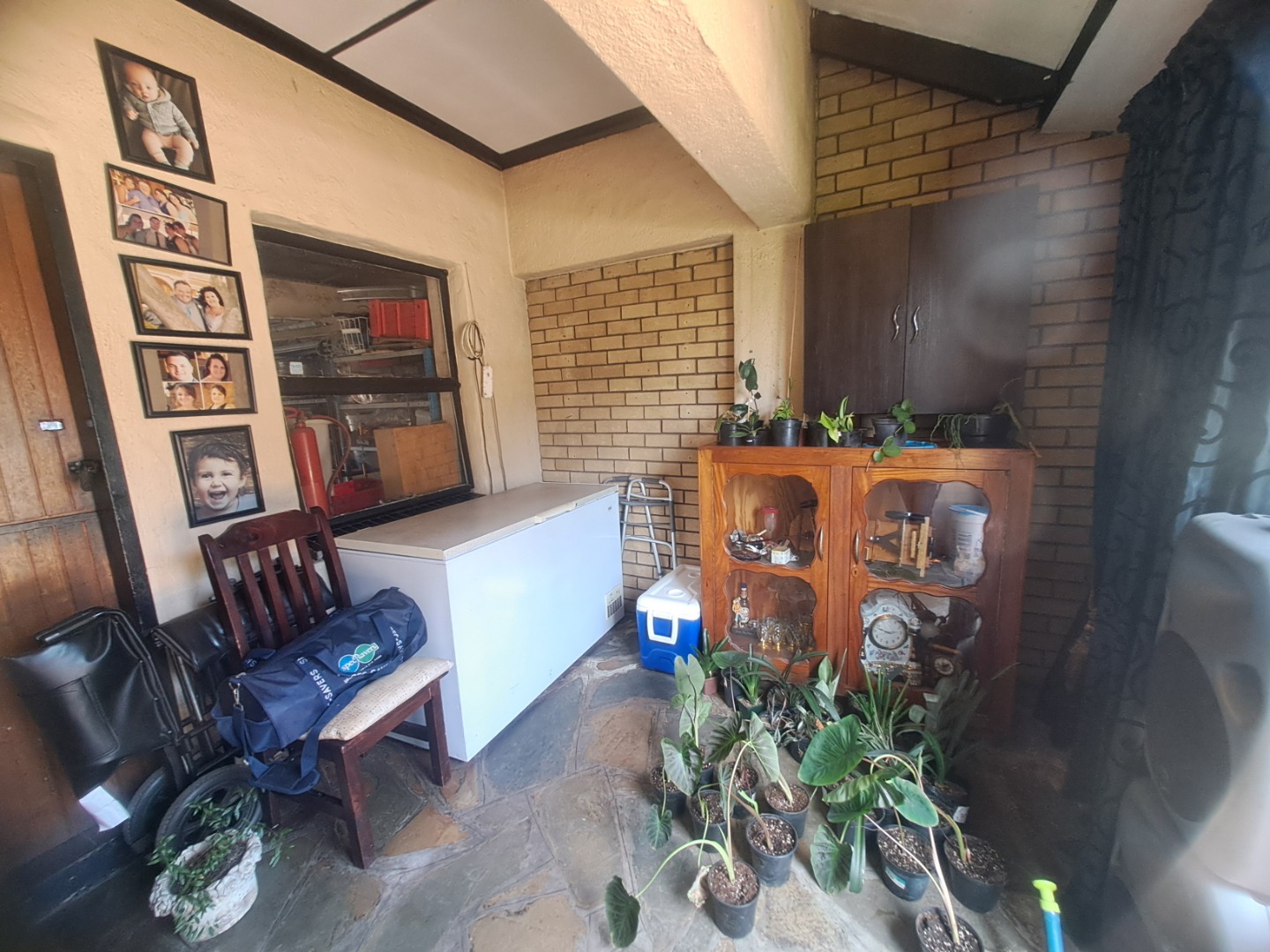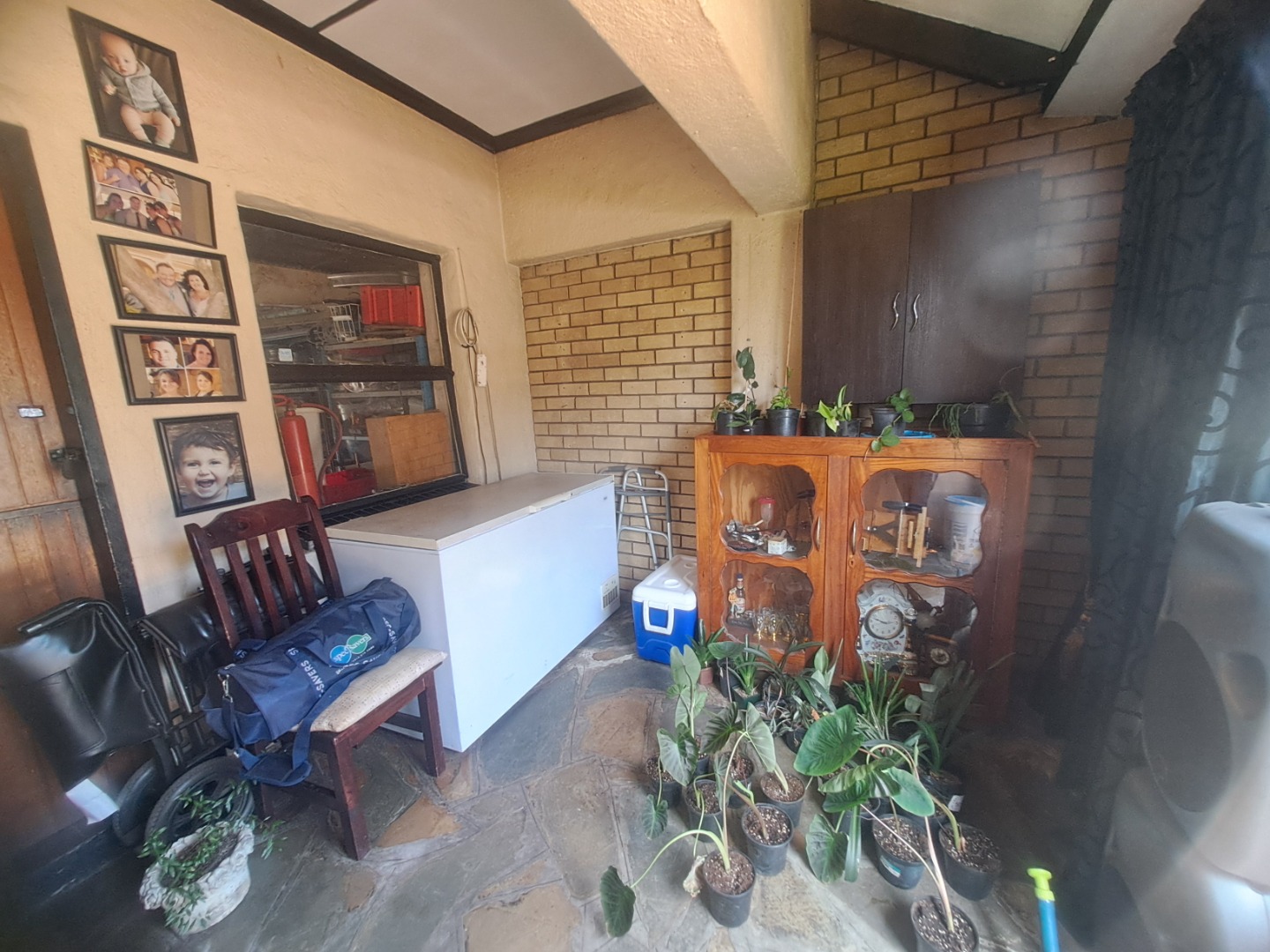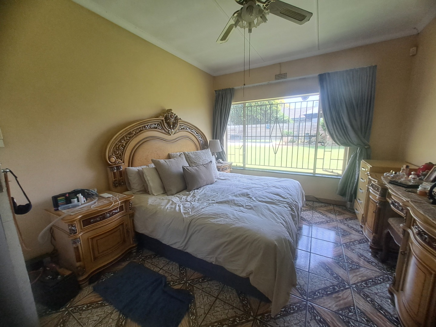 The home features three well-proportioned bedrooms and two bathrooms, catering to family needs. While the interior spaces, including the living areas seen in the photos, present a lived-in charm with textured walls and tiled flooring, they offer a fantastic canvas for new owners to infuse their personal style and undertake modern updates. Natural light streams through large windows, many fitted with security bars, enhancing the bright atmosphere.